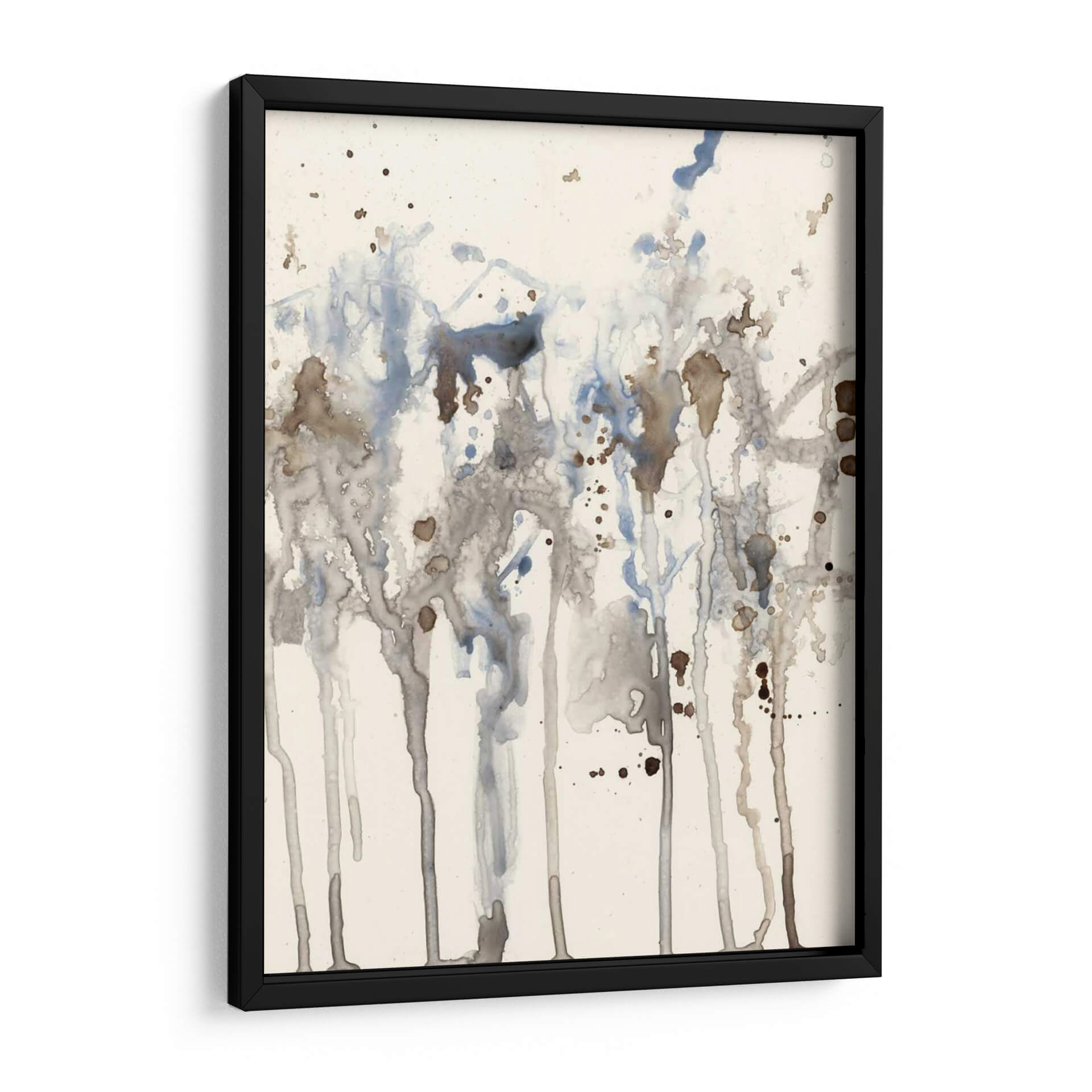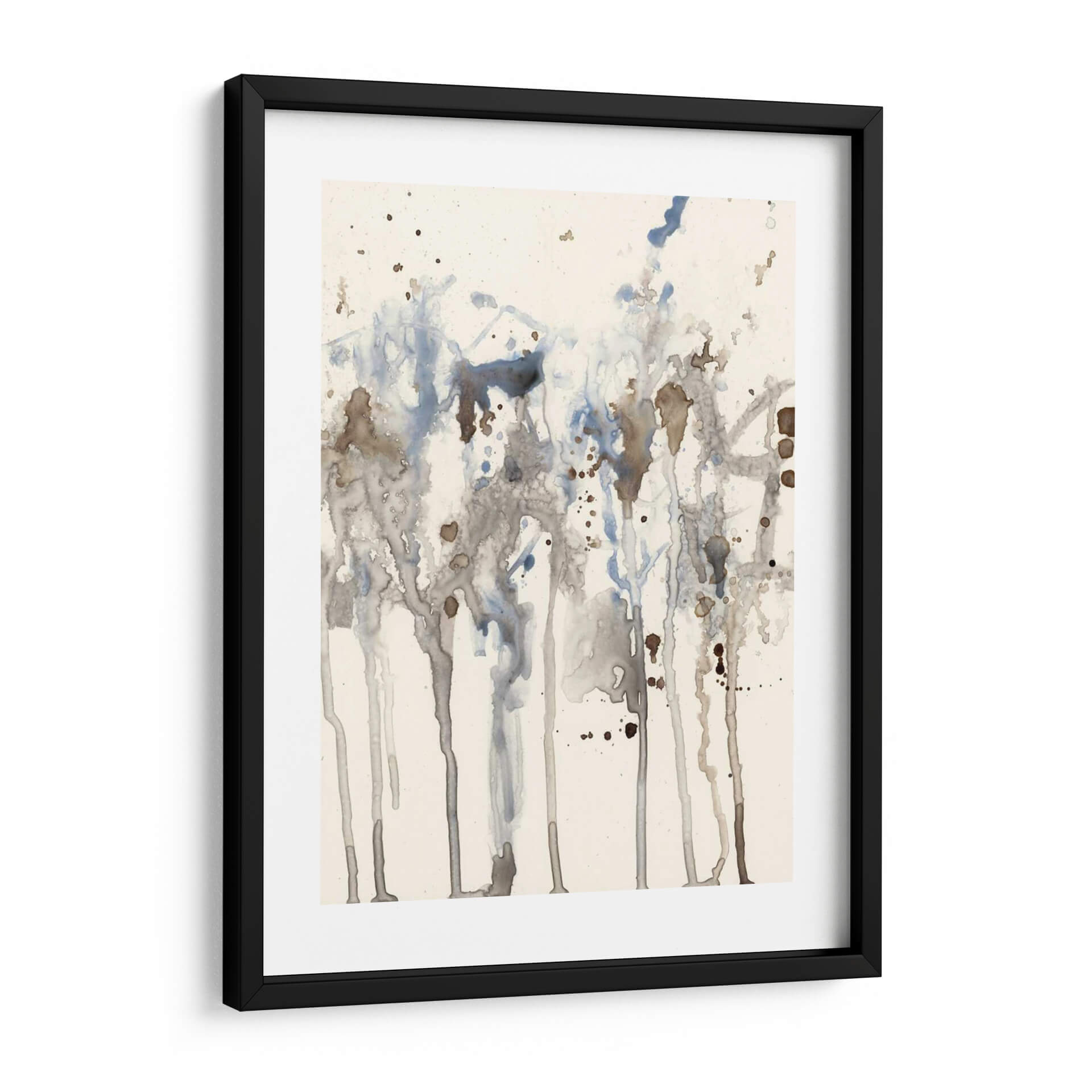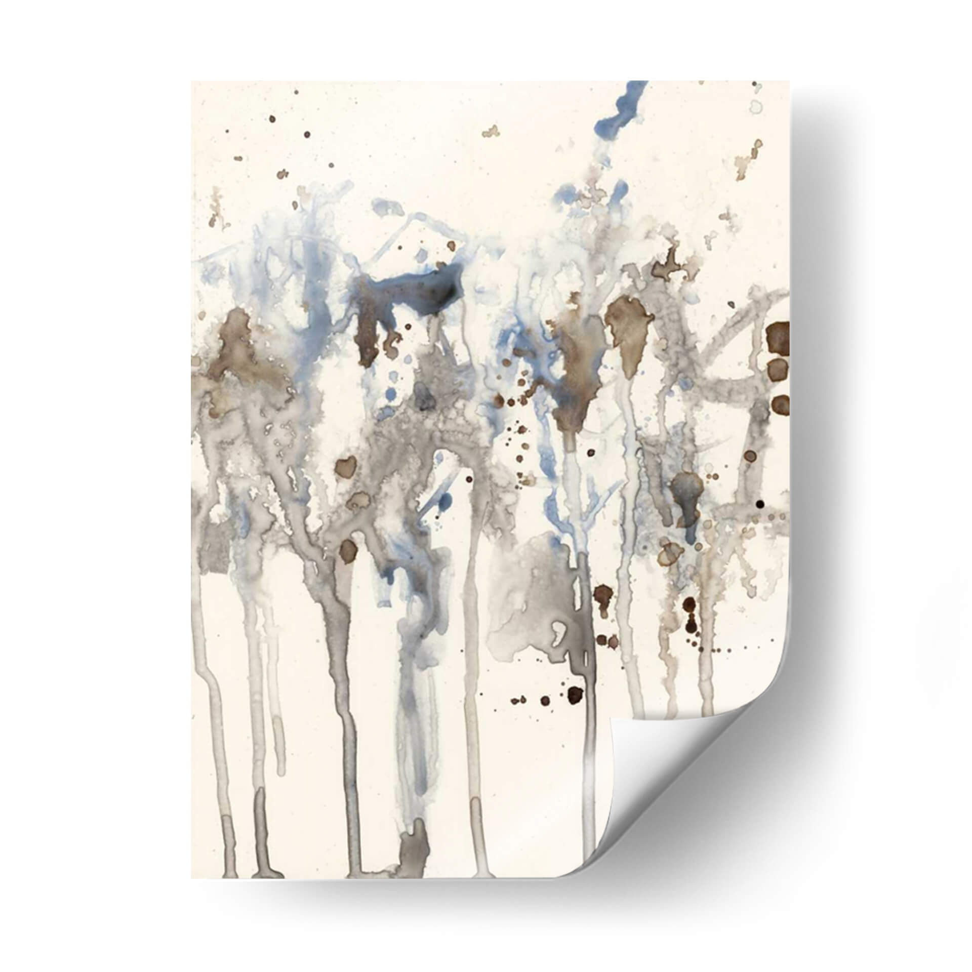 Sumérgete en la serenidad etérea de 'Splash Neutro I', una obra abstracta de Jennifer Goldberger que evoca la delicadeza de la acuarela y la imprevisibilidad de la naturaleza. Este cuadro decorativo se caracteriza por un juego de líneas verticales y salpicaduras que sugieren un paisaje orgánico, quizás un bosque bañado por la lluvia o la textura de la corteza de un árbol. La paleta de colores, dominada por tonos neutros, grises suaves y toques de azul pálido y marrón terroso, crea una atmósfera de calma y contemplación. La composición, aunque abstracta, presenta una sensación de profundidad y movimiento gracias al goteo y la superposición de las manchas de color. Es una pieza ideal para espacios que buscan un toque de sofisticación sutil y una conexión con elementos naturales. Perfecta para añadir un punto de interés visual sin abrumar, este arte de pared es una excelente elección para salones modernos, dormitorios tranquilos u oficinas que desean transmitir serenidad y profesionalismo. La técnica de acuarela, o su simulación digital, aporta una ligereza y transparencia que invita a la reflexión y al disfrute visual.