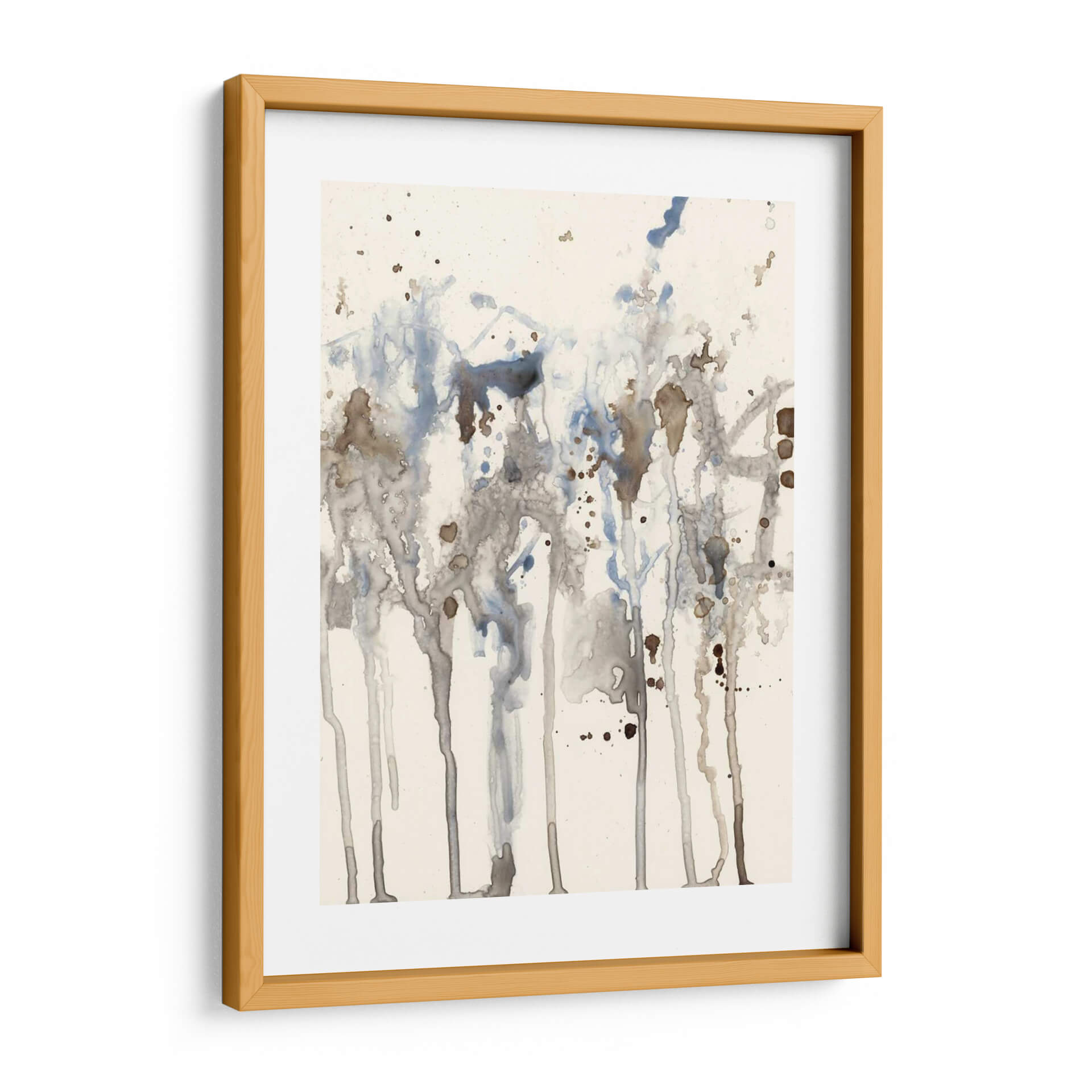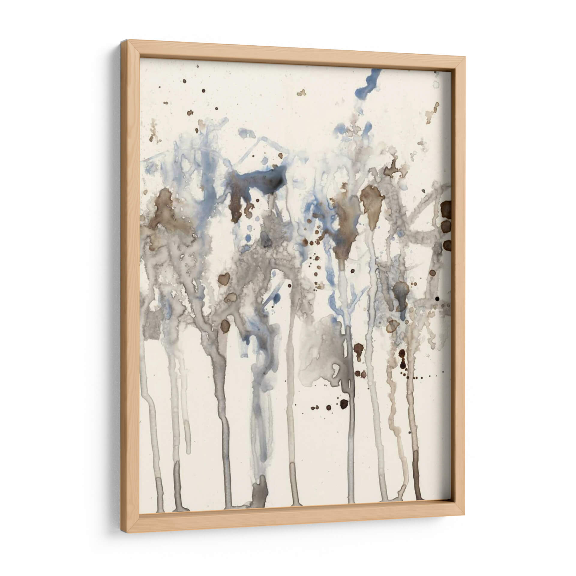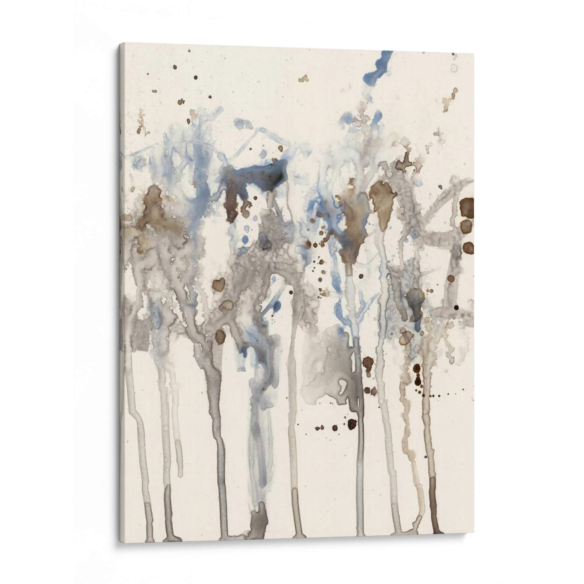 Sumérgete en la serenidad etérea de 'Splash Neutro I', una obra abstracta de Jennifer Goldberger que evoca la delicadeza de la acuarela y la imprevisibilidad de la naturaleza. Este cuadro decorativo se caracteriza por un juego de líneas verticales y salpicaduras que sugieren un paisaje orgánico, quizás un bosque bañado por la lluvia o la textura de la corteza de un árbol. La paleta de colores, dominada por tonos neutros, grises suaves y toques de azul pálido y marrón terroso, crea una atmósfera de calma y contemplación. La composición, aunque abstracta, presenta una sensación de profundidad y movimiento gracias al goteo y la superposición de las manchas de color. Es una pieza ideal para espacios que buscan un toque de sofisticación sutil y una conexión con elementos naturales. Perfecta para añadir un punto de interés visual sin abrumar, este arte de pared es una excelente elección para salones modernos, dormitorios tranquilos u oficinas que desean transmitir serenidad y profesionalismo. La técnica de acuarela, o su simulación digital, aporta una ligereza y transparencia que invita a la reflexión y al disfrute visual.