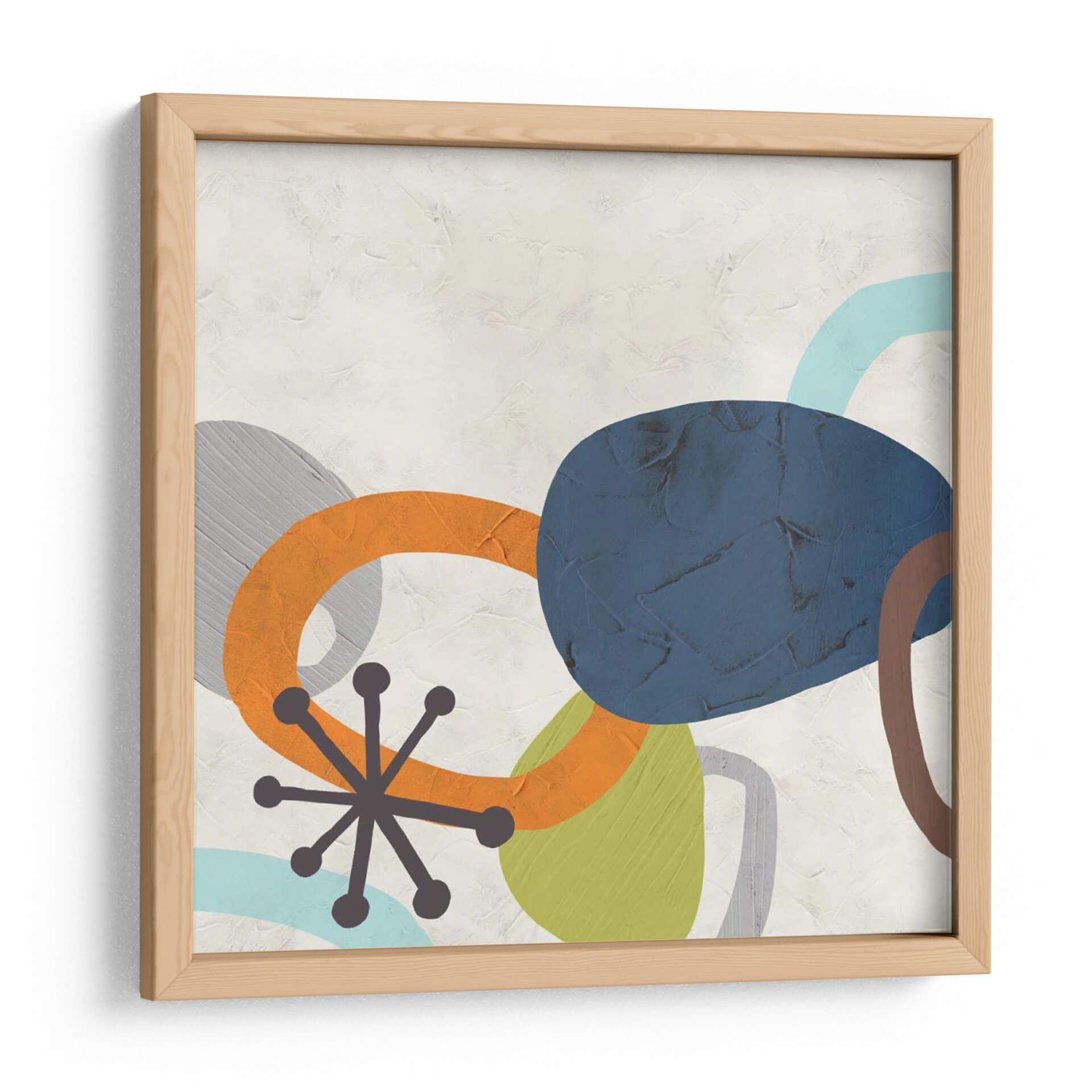 Inyecta vitalidad y un toque de diseño contemporáneo en tu hogar con "Sunshine Jumble II", una obra de arte abstracta de June Erica Vess. Este cuadro decorativo cautiva con su vibrante composición de formas orgánicas y geométricas entrelazadas, evocando una sensación de juego y energía creativa. La paleta de colores, dominada por un profundo azul índigo, naranjas audaces, verdes eléctricos y sutiles tonos tierra y grises, crea un equilibrio visual dinámico y atractivo. El fondo texturizado, de un suave tono crudo, aporta profundidad y un matiz de sofisticación a la pieza. El estilo abstracto y juguetón de Vess se manifiesta en la interacción lúdica de las formas, que recuerdan a elementos naturales estilizados o a un collage moderno. "Sunshine Jumble II" es ideal para infundir personalidad en salas de estar, estudios o cualquier espacio que busque un acento de color y diseño único. Este cuadro decorativo es perfecto para quienes aprecian el arte moderno y buscan piezas que inspiren conversación y alegría. Transforma tu pared en una declaración de estilo con esta pieza de arte abstracto que irradia optimismo y originalidad.