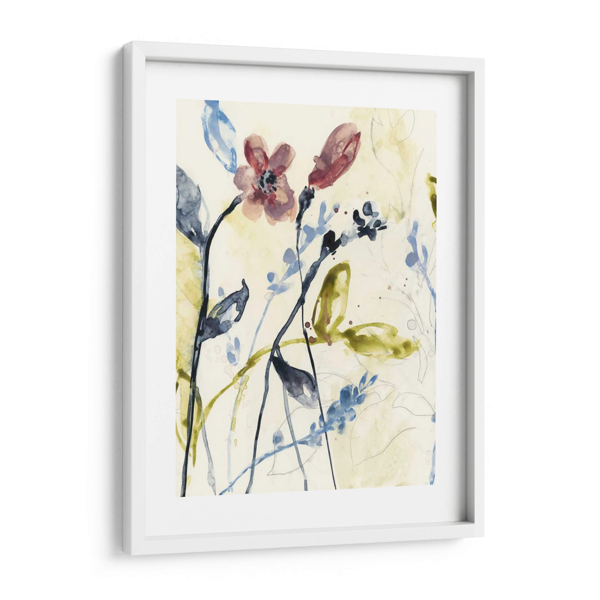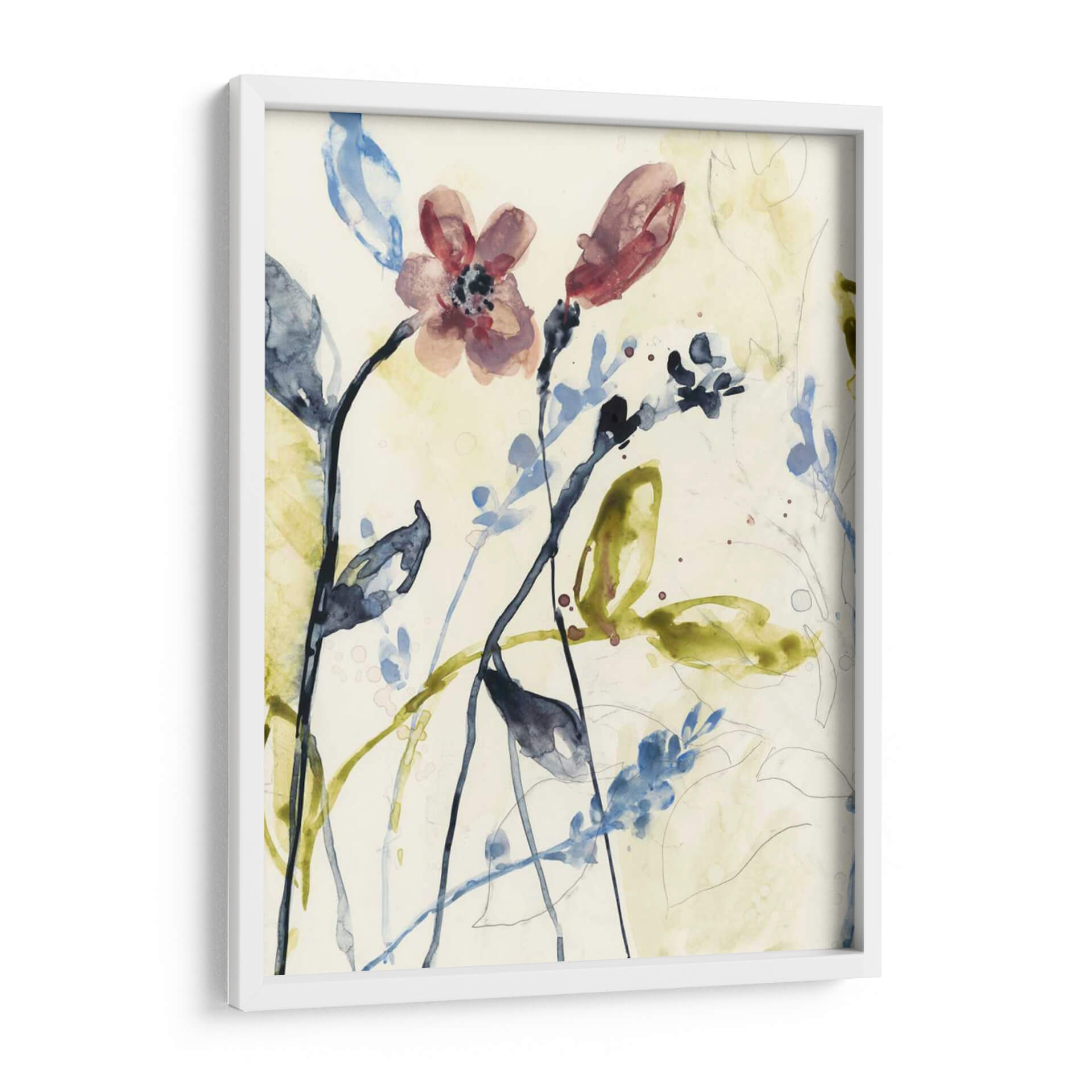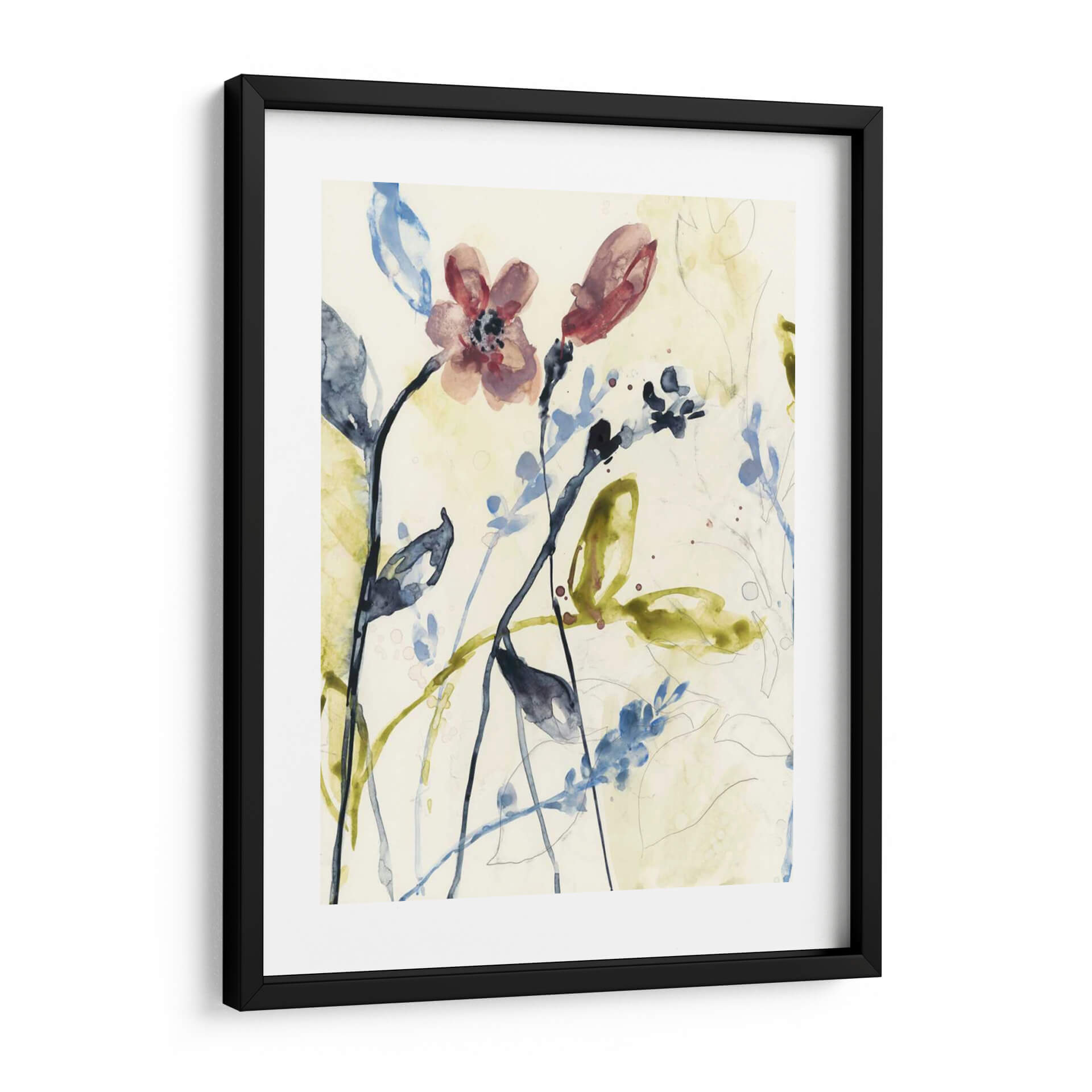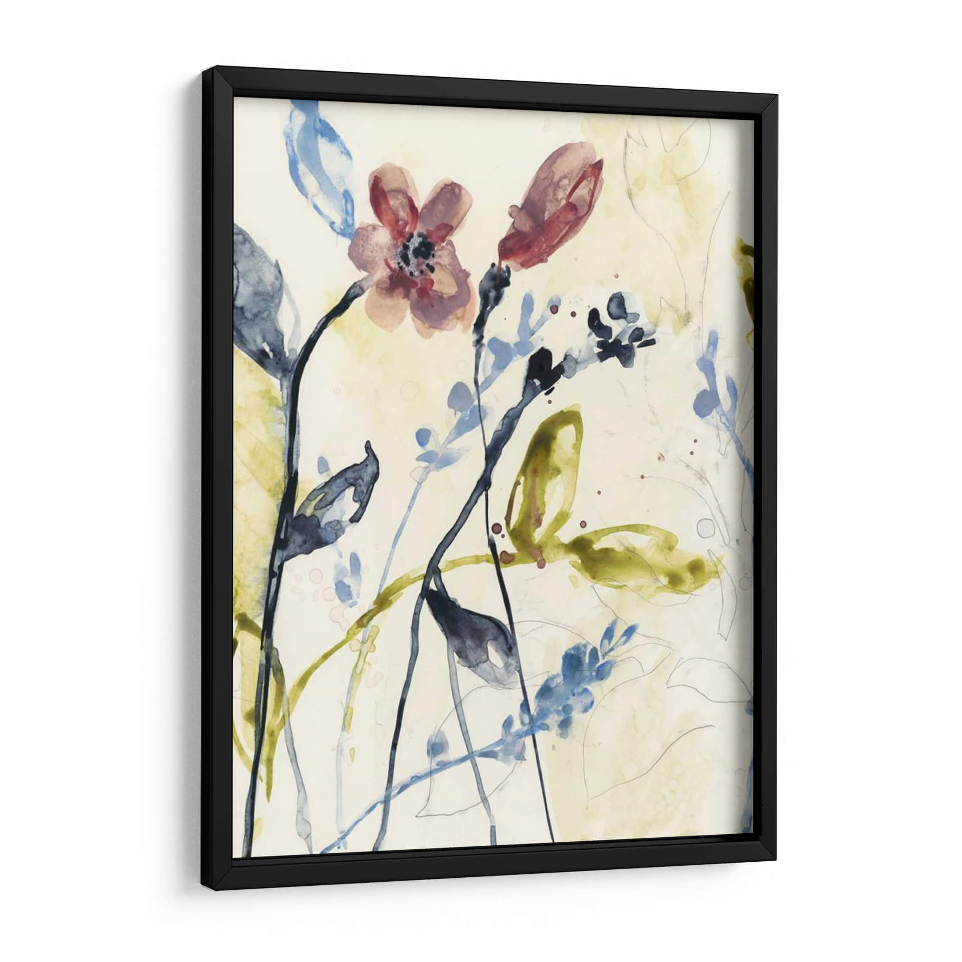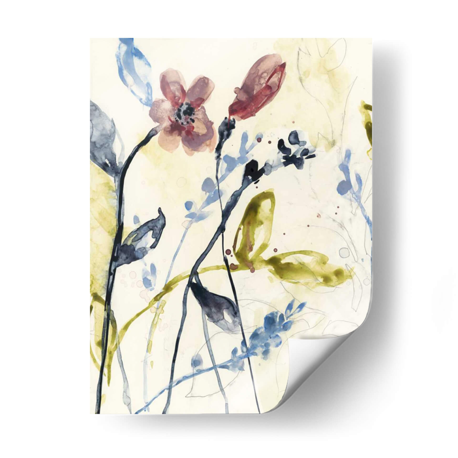 Sumérgete en la delicadeza y el movimiento de "Tallos Que Fluyen I", una obra de arte que captura la esencia de la naturaleza con una técnica de acuarela etérea. La pieza presenta un delicado despliegue de tallos y flores en tonos suaves de rosa, azul y verde, sobre un fondo neutro que permite que los elementos botánicos resalten con gracia. Las pinceladas sueltas y las manchas de color evocan la sensación de un jardín caprichoso o un sueño botánico, invitando a la contemplación y la calma. La composición, con sus líneas fluidas y formas orgánicas, crea una sensación de profundidad y ligereza, perfecta para añadir un toque de sofisticación natural a cualquier espacio. Ideal para salones, dormitorios o estudios que buscan un aire de serenidad y belleza artística. Este cuadro decorativo es una pieza versátil que combina con una amplia gama de estilos decorativos, desde el moderno hasta el bohemio, aportando una atmósfera de tranquilidad y conexión con el arte contemporáneo.