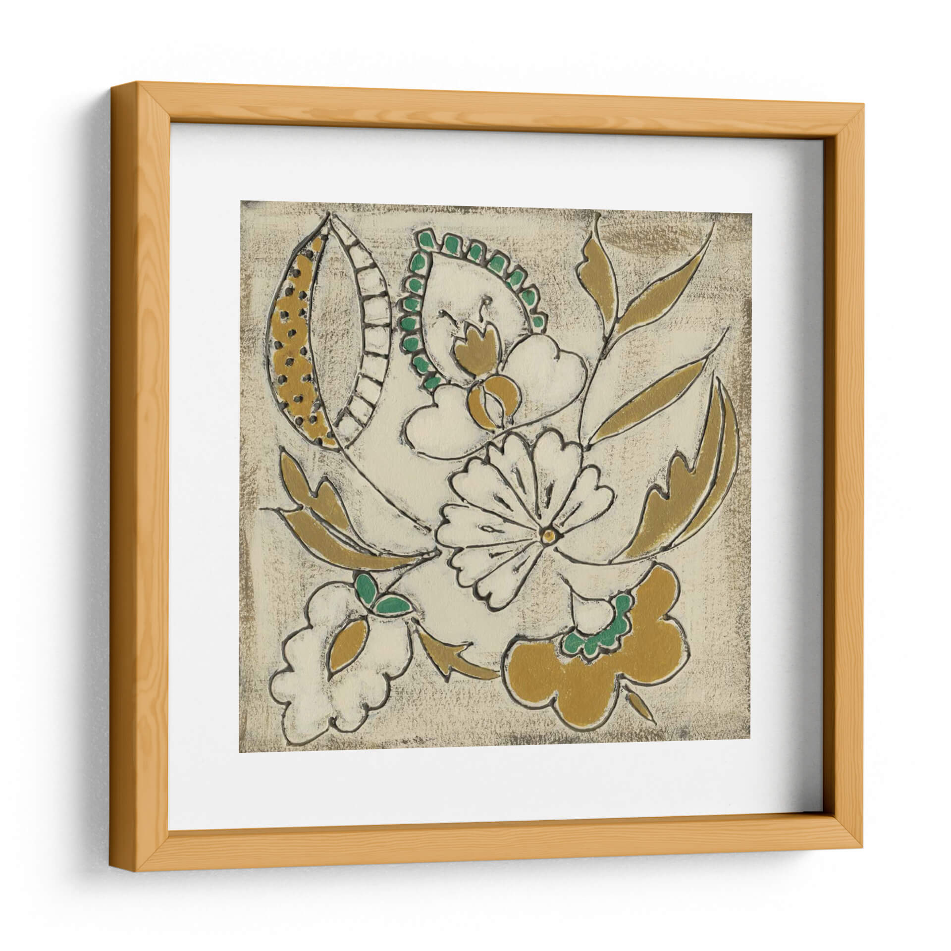 Embellece tu hogar con la obra de arte "Terrenware Floral V" de Chariklia Zarris, una pieza que fusiona la delicadeza de la naturaleza con un estilo contemporáneo único. Este cuadro decorativo presenta una composición floral estilizada, donde los contornos negros definen formas orgánicas que evocan la tranquilidad de un jardín atemporal. La paleta de colores, dominada por tonos tierra, beige y acentos de verde esmeralda y dorado, aporta una calidez y elegancia sutil a cualquier ambiente. La textura sutil del fondo sugiere un acabado artesanal, invitando a la contemplación. "Terrenware Floral V" es ideal para espacios que buscan un toque de sofisticación natural, desde salones modernos hasta rincones de lectura acogedores, pasando por oficinas que desean una atmósfera de calma y inspiración. Añade profundidad y carácter a tus paredes con esta expresión artística que celebra la belleza de lo floral a través de una interpretación moderna y serena, perfecta para quienes aprecian el arte contemporáneo y la decoración con significado.