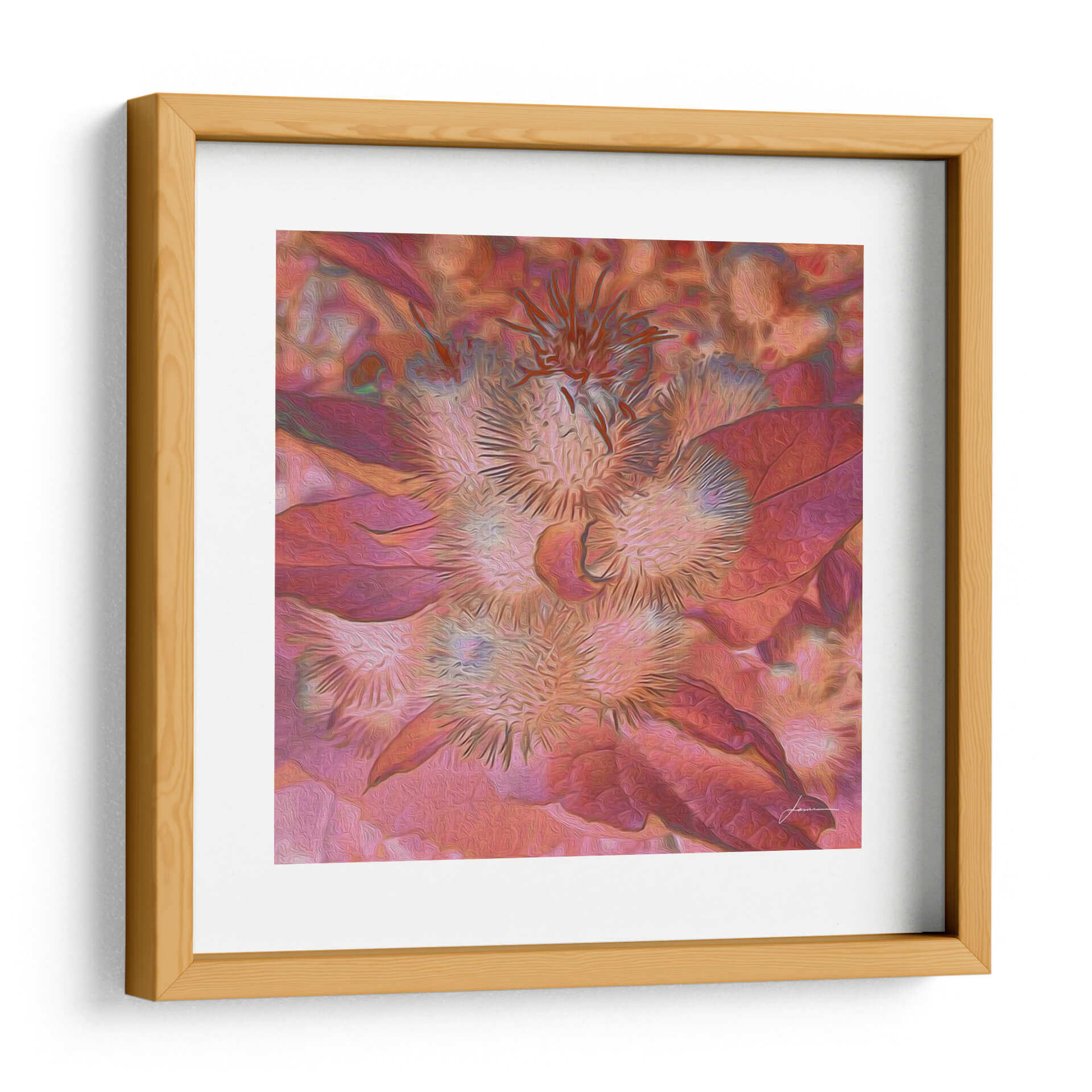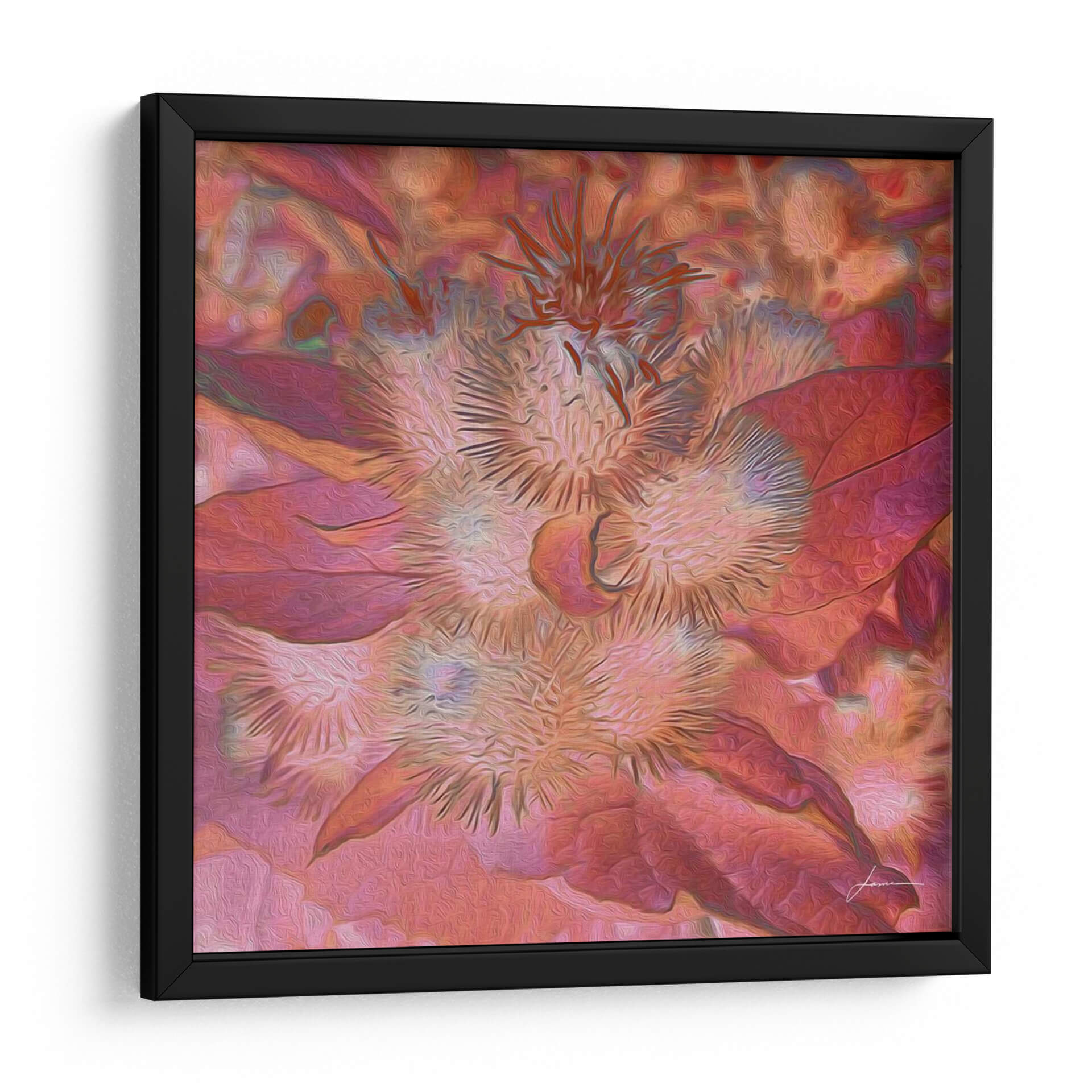 Sumérgete en la vibrante belleza de "Tiles De Pichley Iii", una obra de arte contemporáneo del aclamado artista James Burghardt. Esta pieza cautivadora presenta una exploración fascinante de formas orgánicas y texturas ricas, evocando la delicadeza de un motivo floral o una maravilla natural microscópica. Los colores cálidos y terrosos, que van desde rosas profundos y rojos intensos hasta toques de naranja y melocotón, crean una atmósfera apasionada y acogedora. La pincelada audaz y expresiva, reminiscente de técnicas postimpresionistas o neoexpresionistas, añade profundidad y dinamismo, invitando al espectador a perderse en los detalles intrincados. "Tiles De Pichley Iii" es más que un simple cuadro decorativo; es una invitación a sentir la energía de la naturaleza y la expresión artística en su máxima expresión. Ideal para añadir un punto focal de color y emoción a tu sala de estar, comedor o incluso a un estudio creativo, este cuadro decorativo transformará cualquier espacio en una galería personal llena de vida y carácter. Descubre la magia de James Burghardt y lleva la expresión artística contemporánea a tu hogar.