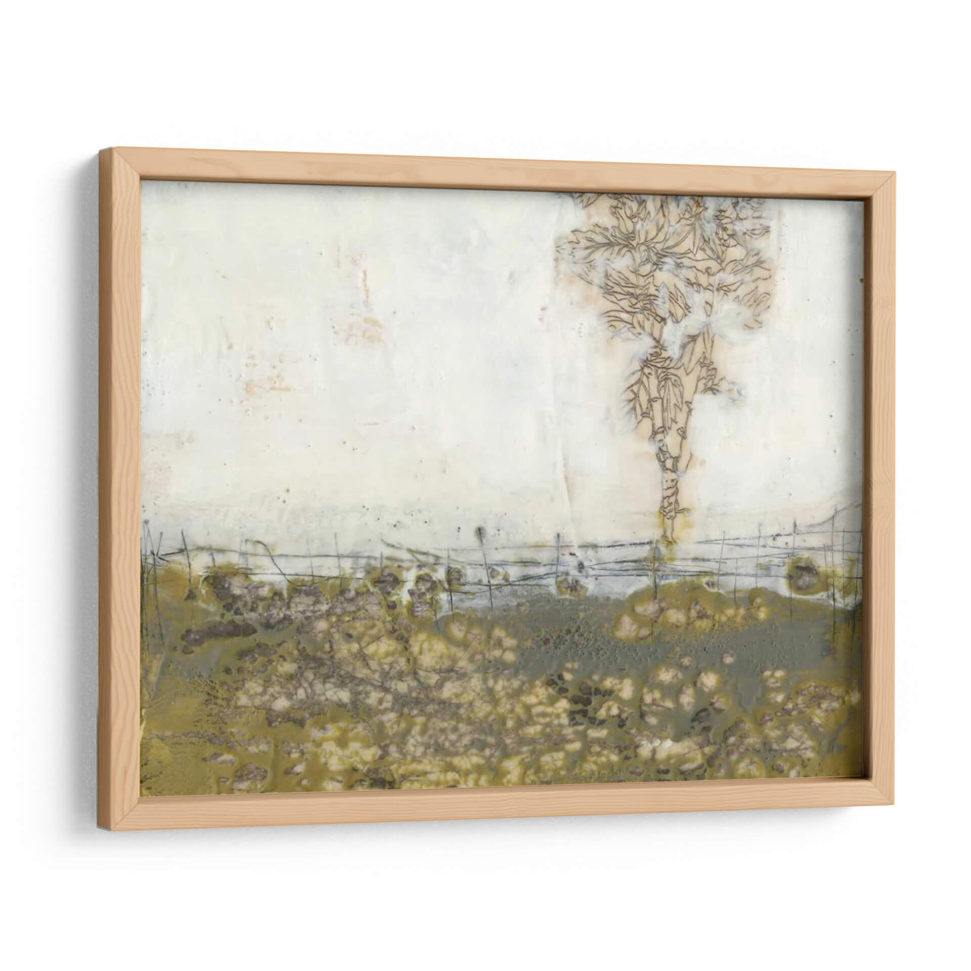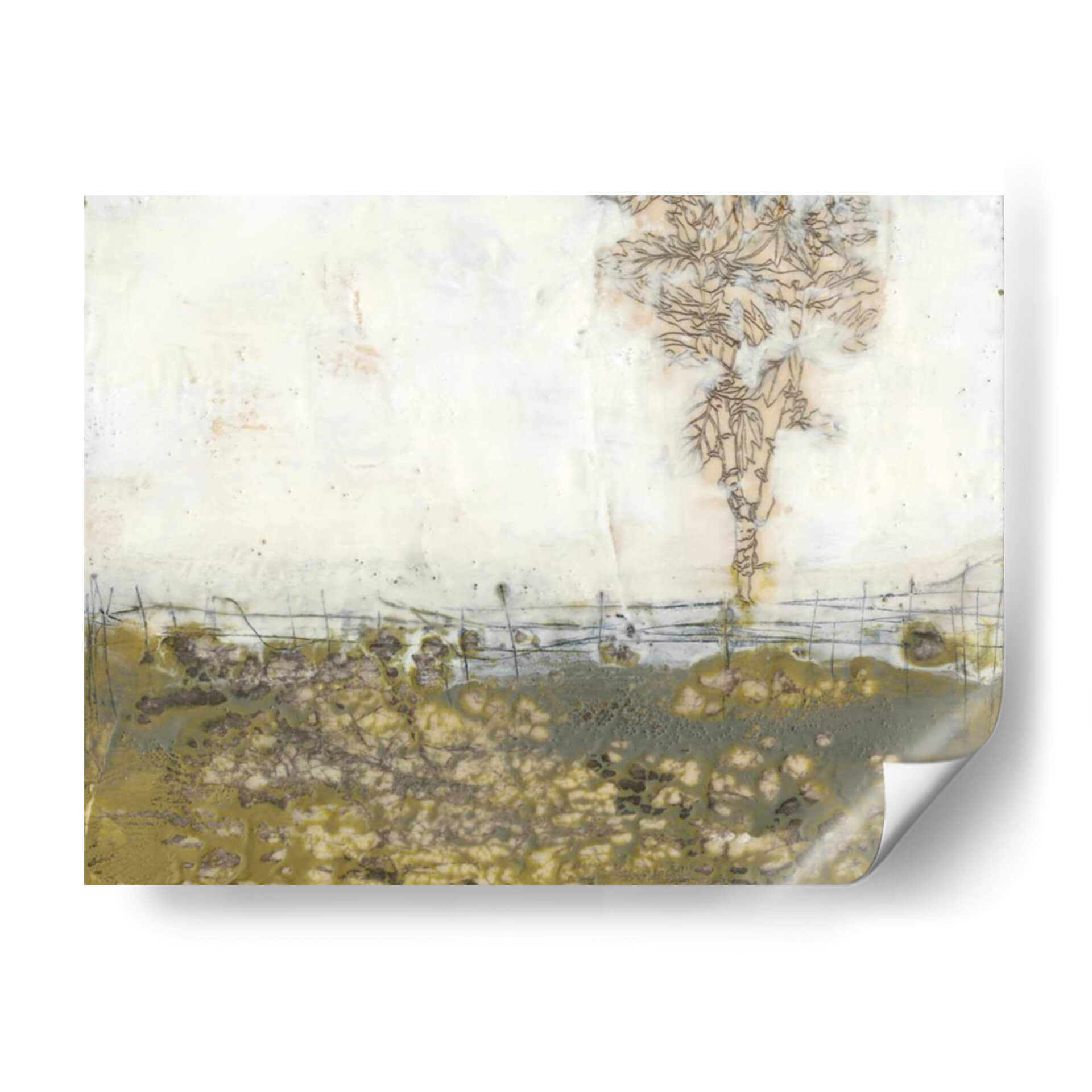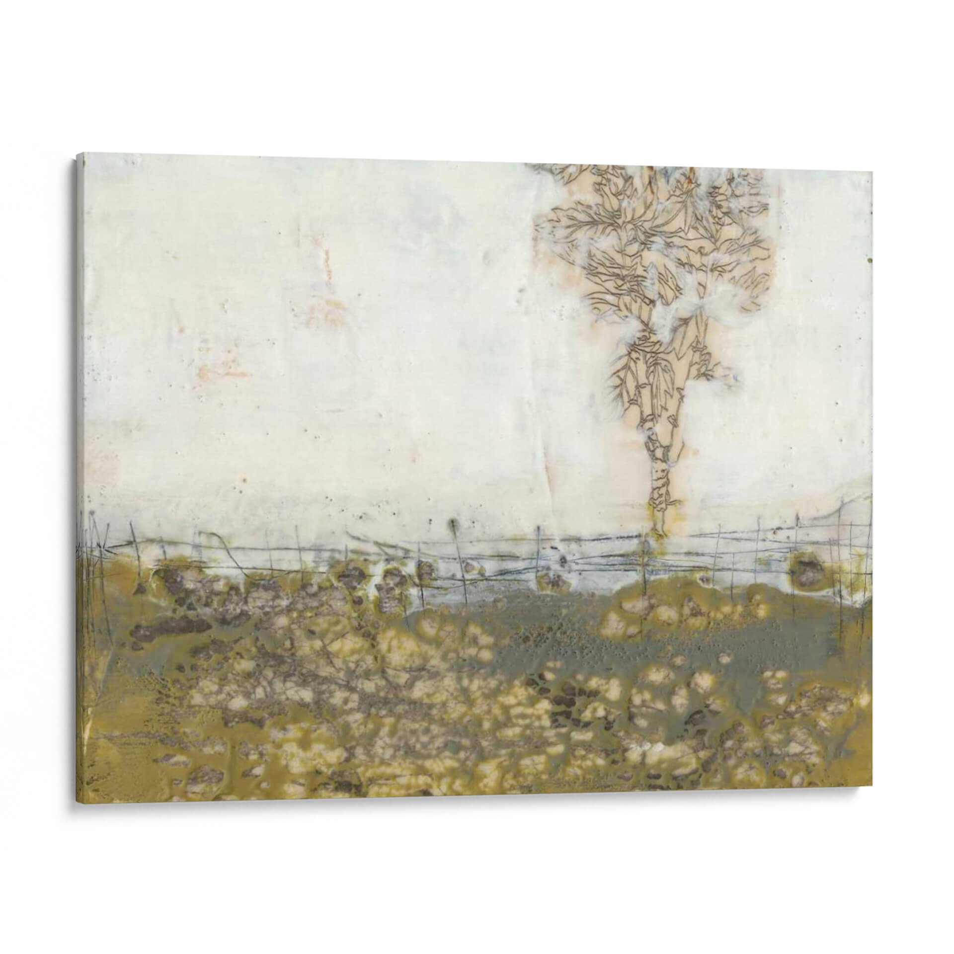 Sumérgete en la serena belleza de "Tundra Rústica I", una cautivadora obra de arte de Jennifer Goldberger que evoca la tranquilidad de un paisaje invernal o otoñal. La pieza presenta un árbol estilizado, delicadamente delineado en tonos tierra, que se alza contra un cielo pálido y texturizado. Debajo, un campo rústico se despliega con una paleta de ocres, verdes musgo y grises, salpicado de elementos orgánicos que sugieren la crudeza de la naturaleza. Una sutil línea de alambre o valla divide el primer plano del horizonte, añadiendo un toque de estructura a la composición orgánica. "Tundra Rústica I" es un cuadro decorativo que destila calma y una conexión profunda con la tierra. Su estilo abstracto-naturalista y su paleta de colores neutros y terrosos la convierten en una adición versátil para cualquier espacio. Ideal para salones, dormitorios o estudios que buscan un aire de sofisticación natural y un punto de contemplación serena. Esta obra invita a la reflexión y a la apreciación de la belleza sutil del mundo natural, aportando un elemento de paz y elegancia atemporal a tu decoración. Descubre la atmósfera única que Jennifer Goldberger ha capturado en este impresionante cuadro decorativo contemporáneo.