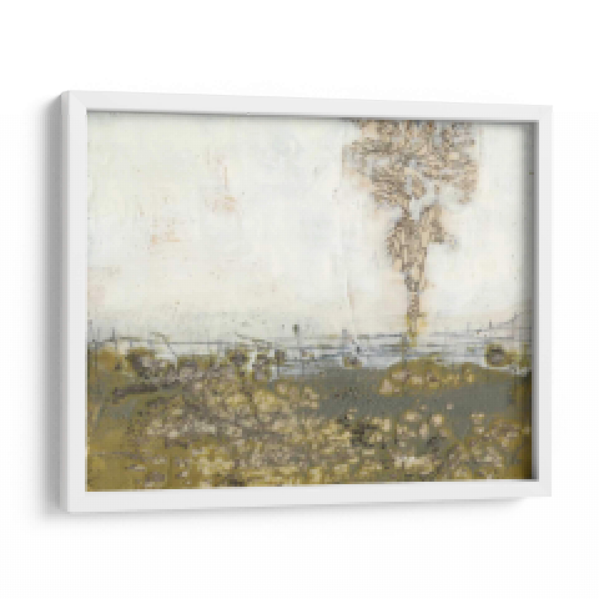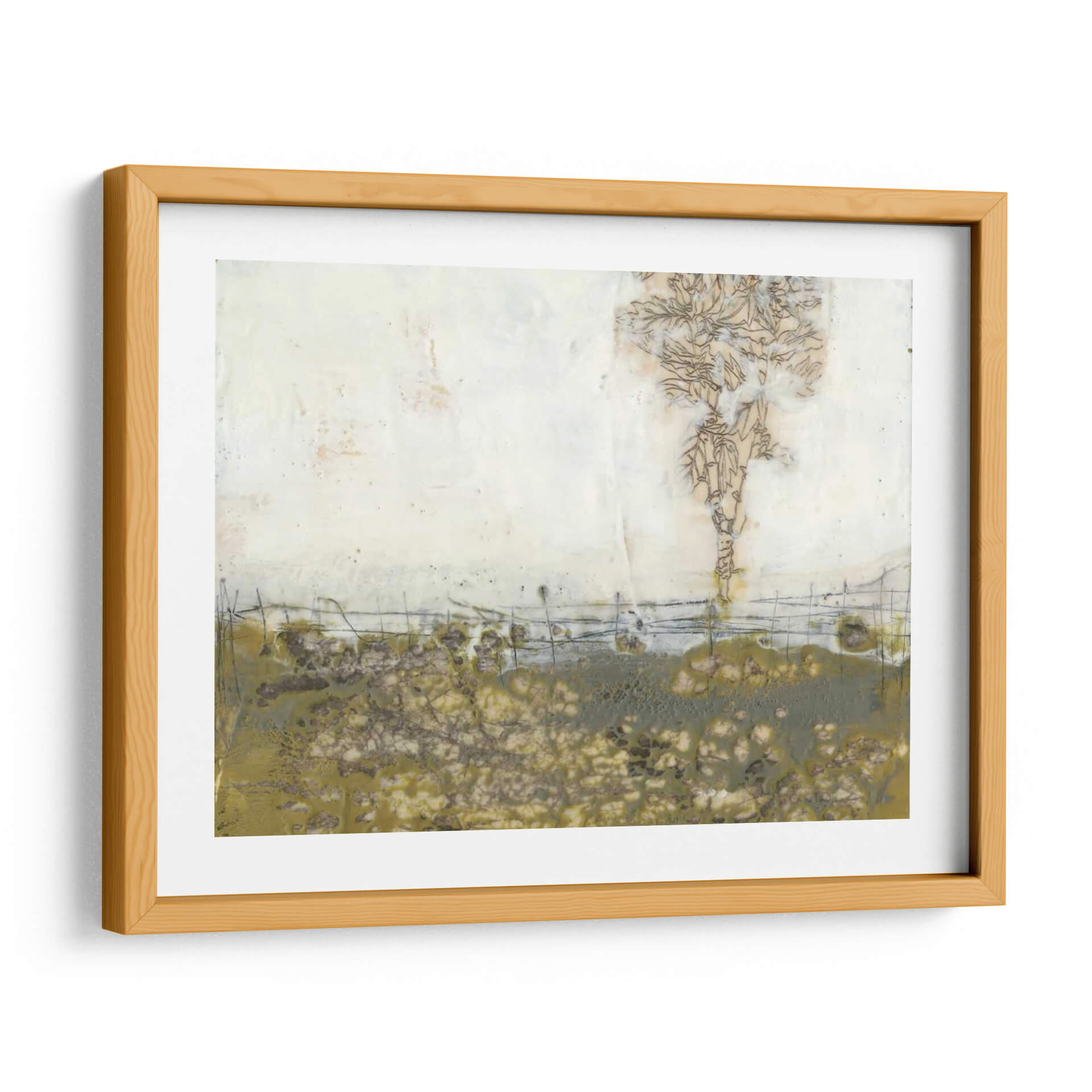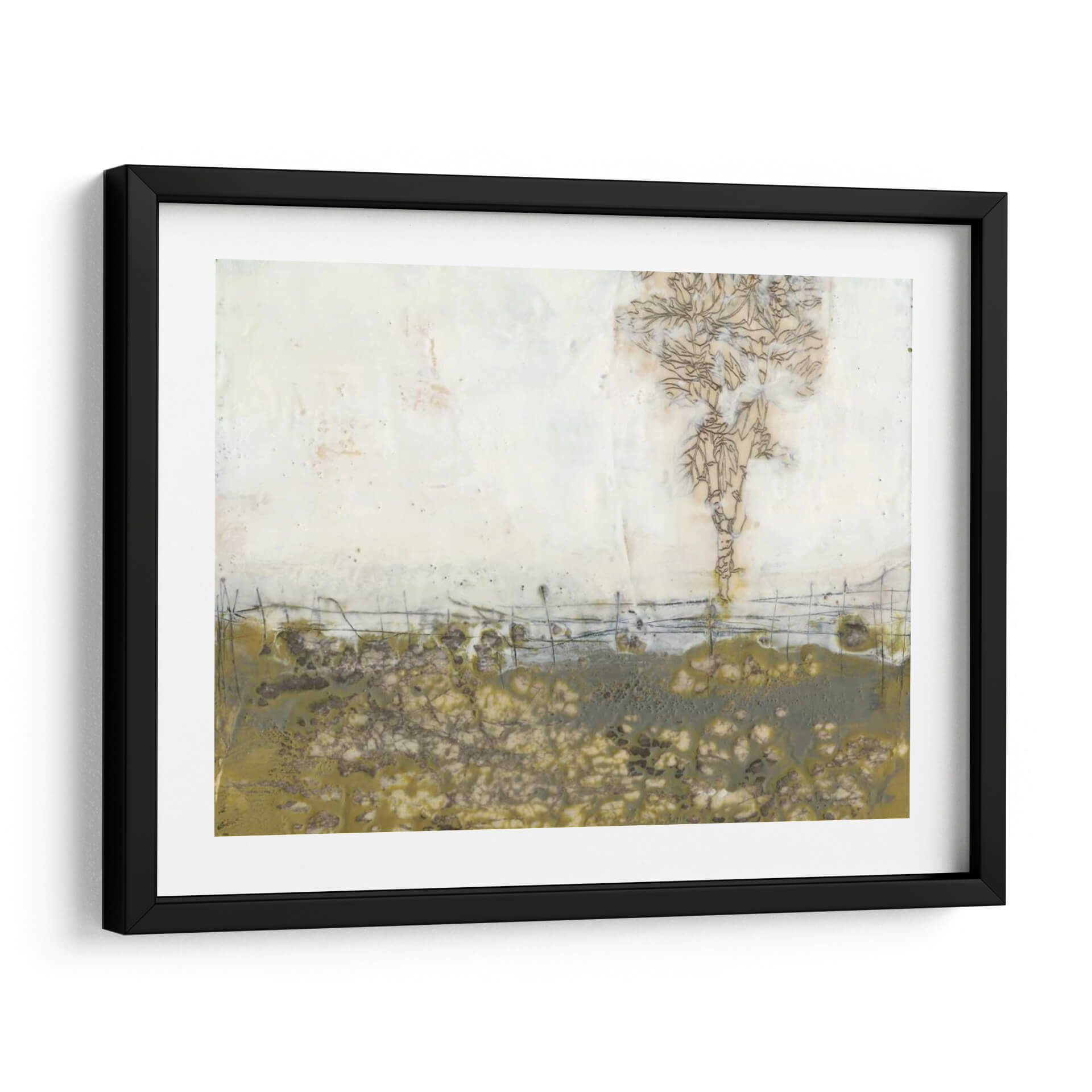 Sumérgete en la serena belleza de "Tundra Rústica I", una cautivadora obra de arte de Jennifer Goldberger que evoca la tranquilidad de un paisaje invernal o otoñal. La pieza presenta un árbol estilizado, delicadamente delineado en tonos tierra, que se alza contra un cielo pálido y texturizado. Debajo, un campo rústico se despliega con una paleta de ocres, verdes musgo y grises, salpicado de elementos orgánicos que sugieren la crudeza de la naturaleza. Una sutil línea de alambre o valla divide el primer plano del horizonte, añadiendo un toque de estructura a la composición orgánica. "Tundra Rústica I" es un cuadro decorativo que destila calma y una conexión profunda con la tierra. Su estilo abstracto-naturalista y su paleta de colores neutros y terrosos la convierten en una adición versátil para cualquier espacio. Ideal para salones, dormitorios o estudios que buscan un aire de sofisticación natural y un punto de contemplación serena. Esta obra invita a la reflexión y a la apreciación de la belleza sutil del mundo natural, aportando un elemento de paz y elegancia atemporal a tu decoración. Descubre la atmósfera única que Jennifer Goldberger ha capturado en este impresionante cuadro decorativo contemporáneo.