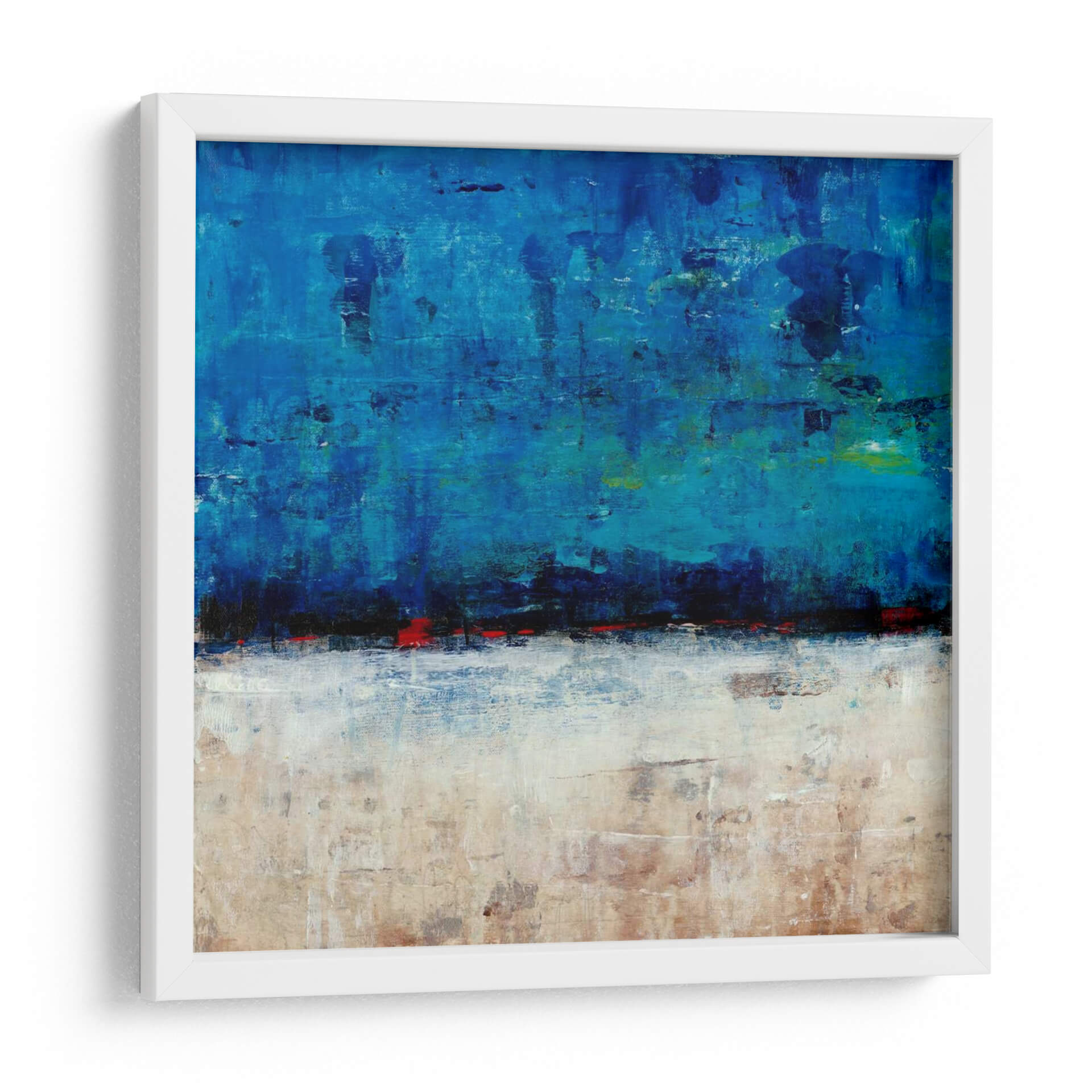 Sumérgete en la profundidad y el misterio de "Un Toque De Rojo II", una obra abstracta contemporánea del artista Tim O'Toole. Este cuadro decorativo es una explosión de tonos azules intensos, que evocan la inmensidad del océano o la serenidad de un cielo crepuscular. La textura rica y las pinceladas expresivas crean un paisaje emocional que invita a la contemplación. Un sutil horizonte, marcado por una línea de rojo vibrante y negro intenso, añade un contraste dramático y un punto focal cautivador, rompiendo la uniformidad de los azules y aportando una energía contenida. La parte inferior de la obra se abre a una zona de colores tierra y blancos, texturizada y rústica, que ancla la composición y ofrece una sensación de calma terrenal. Este lienzo abstracto es perfecto para añadir un toque de sofisticación y profundidad a cualquier sala de estar moderna, estudio o dormitorio. Su versatilidad permite que funcione como un punto de interés único en espacios minimalistas o como un complemento vibrante en decoraciones más audaces. Transforma tu hogar con esta pieza que combina la abstracción audaz con una conexión emocional, creando un ambiente de reflexión y estilo.