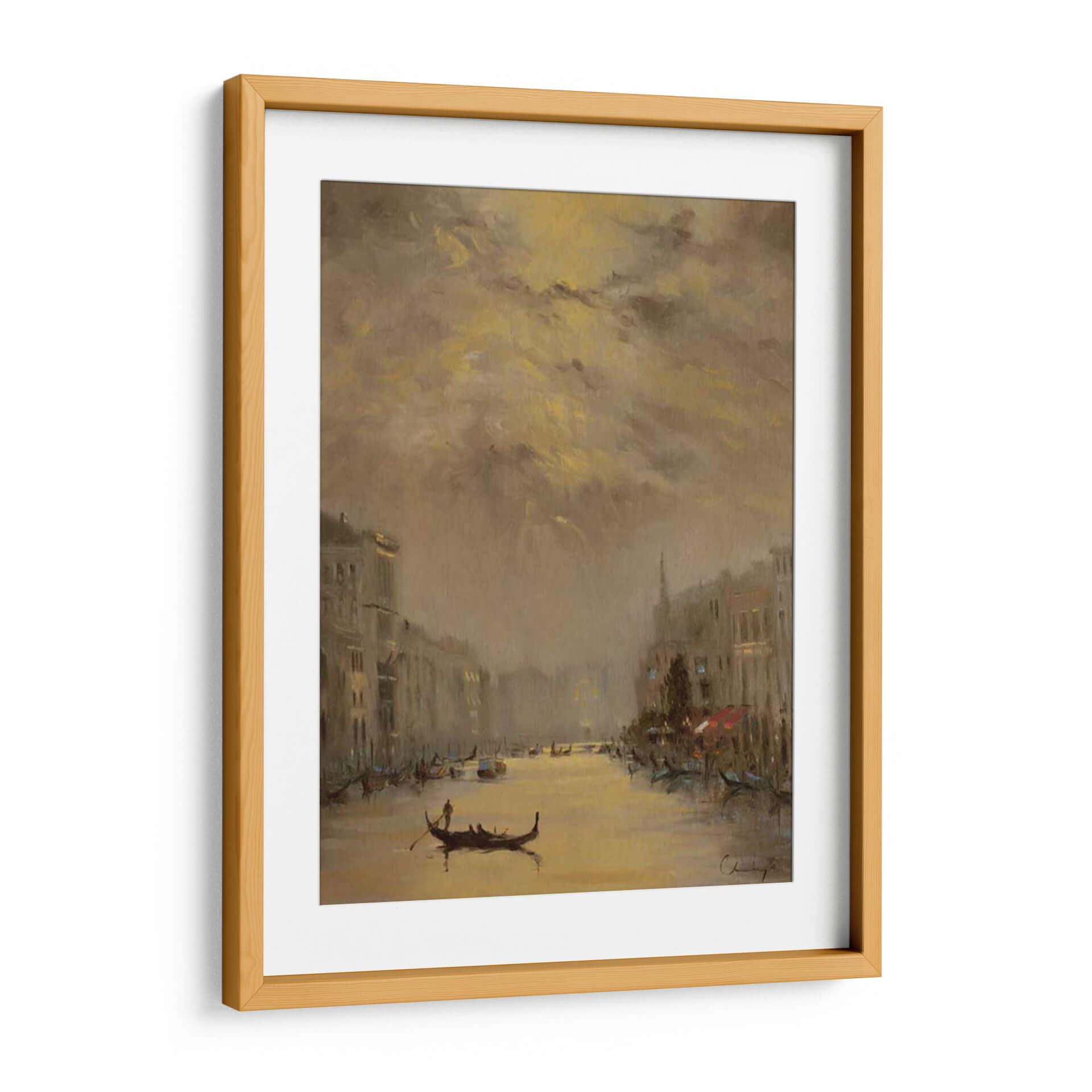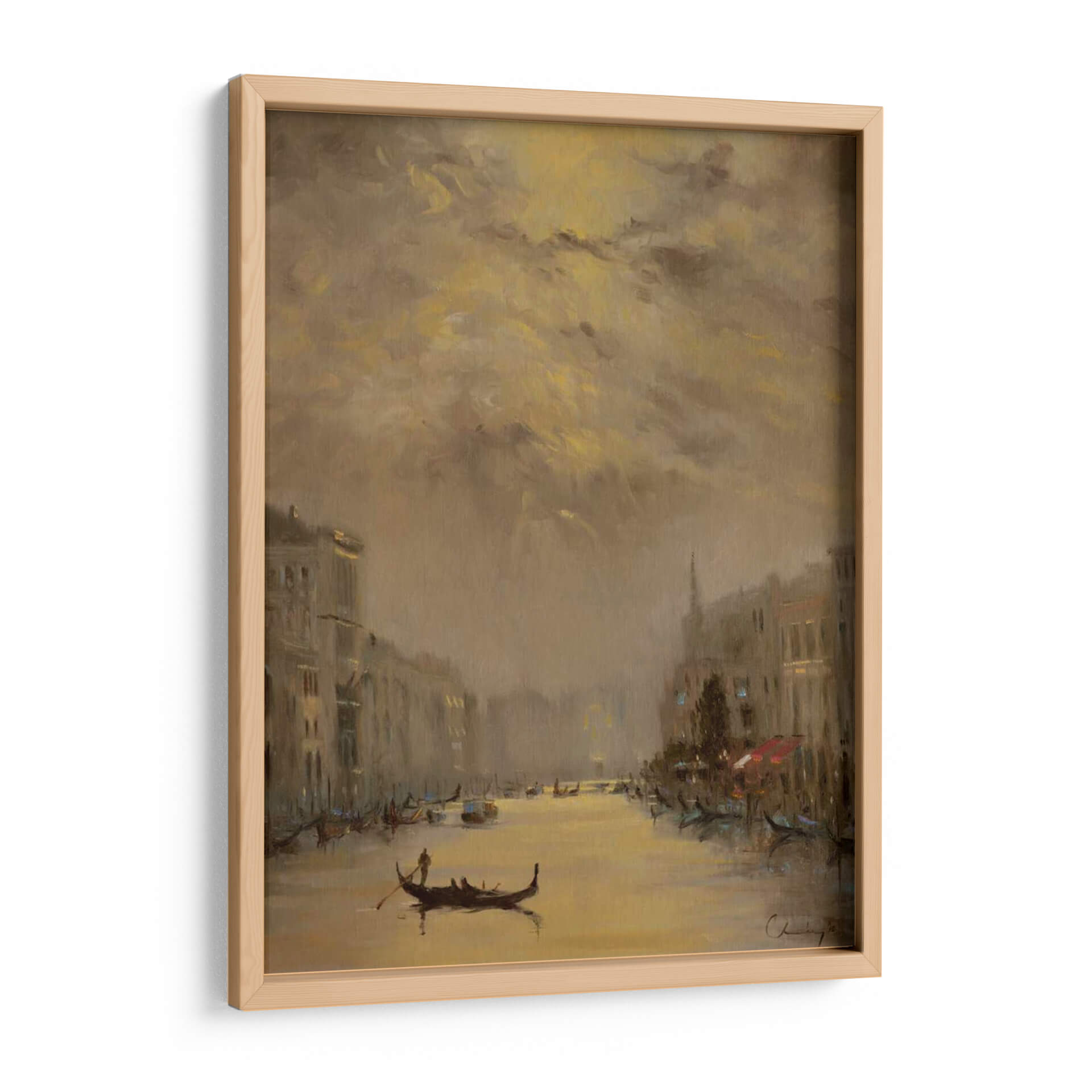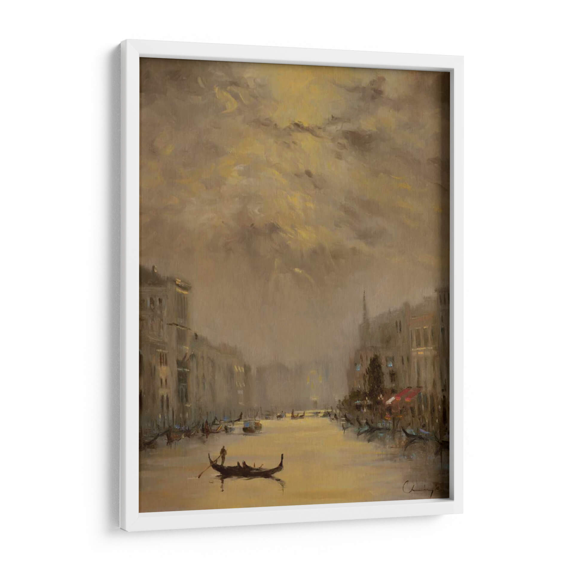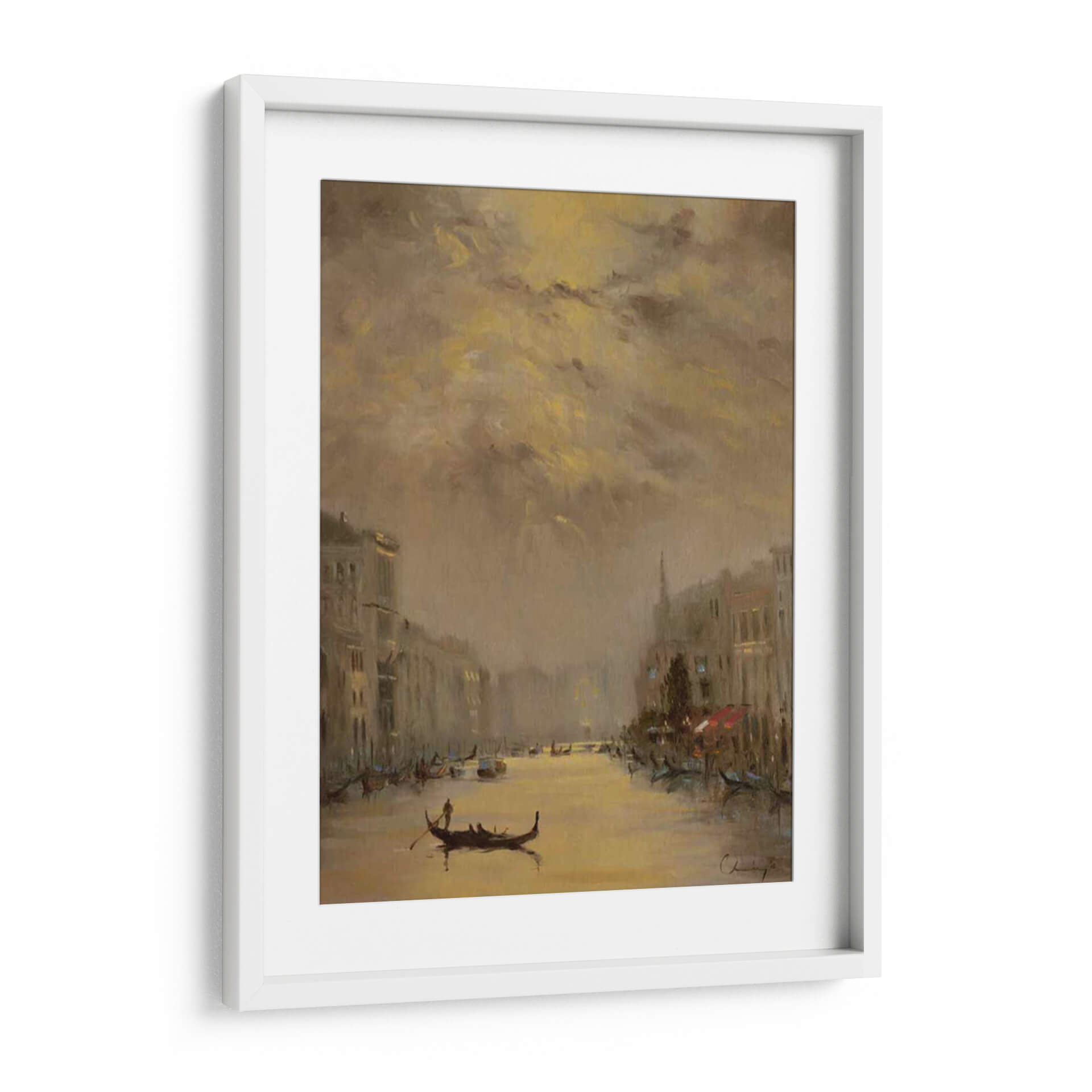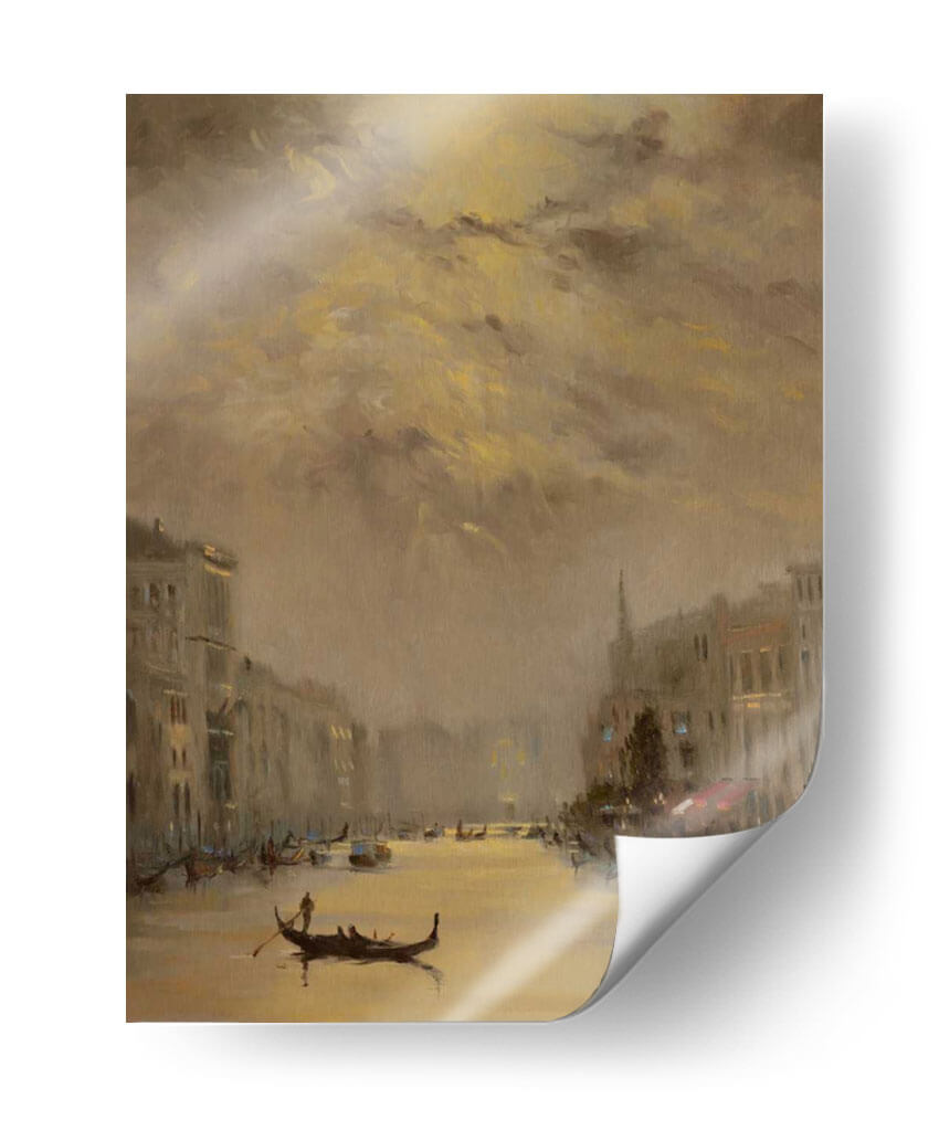 Sumérgete en la mágica atmósfera de "Venecia Noche De Oro", una obra de arte que captura la esencia de la ciudad de los canales con una paleta de colores cálidos y envolventes. Este cuadro decorativo, pintado por Chuck Larivey, evoca la serenidad de una noche veneciana, con el brillo dorado del atardecer reflejándose en las tranquilas aguas. Las siluetas de los edificios históricos flanquean el canal, mientras que las góndolas, elementos icónicos de Venecia, navegan suavemente, añadiendo un toque de romance y tradición. La técnica pictórica y la cuidadosa composición crean una sensación de profundidad y movimiento, invitando al espectador a perderse en la escena. Los tonos ocres, dorados y marrones se entrelazan para generar una atmósfera íntima y acogedora, perfecta para cualquier espacio que busque un toque de elegancia atemporal. Este cuadro decorativo es ideal para dar vida a salones modernos, aportar calidez a dormitorios o crear un ambiente sofisticado en oficinas. "Venecia Noche De Oro" no es solo una imagen, sino una invitación a soñar y a transportarse a uno de los lugares más bellos del mundo, añadiendo un punto focal distintivo y lleno de encanto a tu decoración.