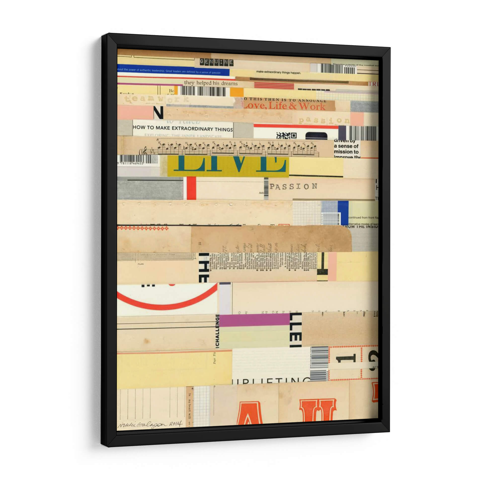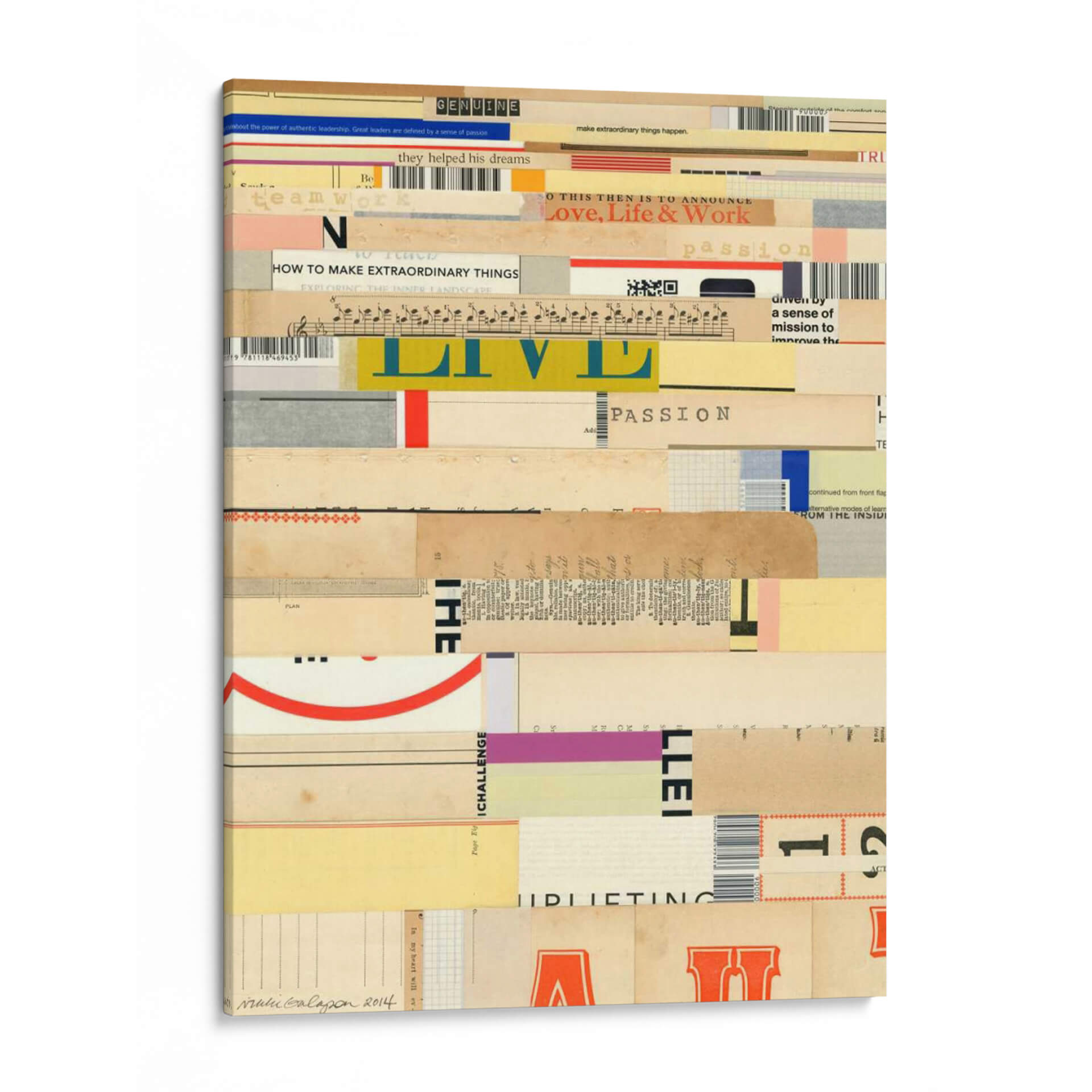 Descubre la obra de arte 'Verdadero II' de Nikki Galapon, un collage vibrante y texturizado que evoca motivación y pasión. Esta pieza combina fragmentos de textos, partituras musicales y elementos gráficos en una composición dinámica que invita a la reflexión. Los colores cálidos y neutros, interrumpidos por toques de azul eléctrico y rojo intenso, crean un equilibrio visual cautivador. El estilo ecléctico, que fusiona lo tipográfico con lo abstracto, la convierte en una adición versátil para cualquier espacio, desde una oficina moderna hasta un salón acogedor. 'Verdadero II' no es solo un cuadro decorativo, es una declaración de intenciones, un recordatorio de los sueños y la energía que impulsan el éxito. Ideal para quienes buscan arte que inspire y genere conversación, esta obra aportará profundidad y carácter a tu decoración, transformando cualquier pared en una fuente de inspiración diaria y un punto focal de admiración.