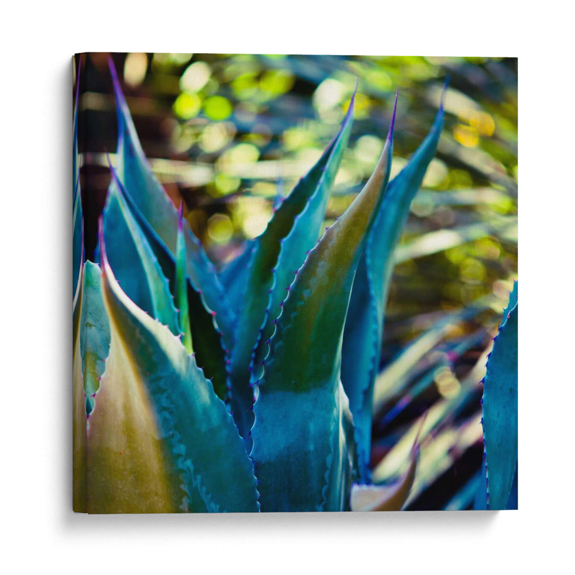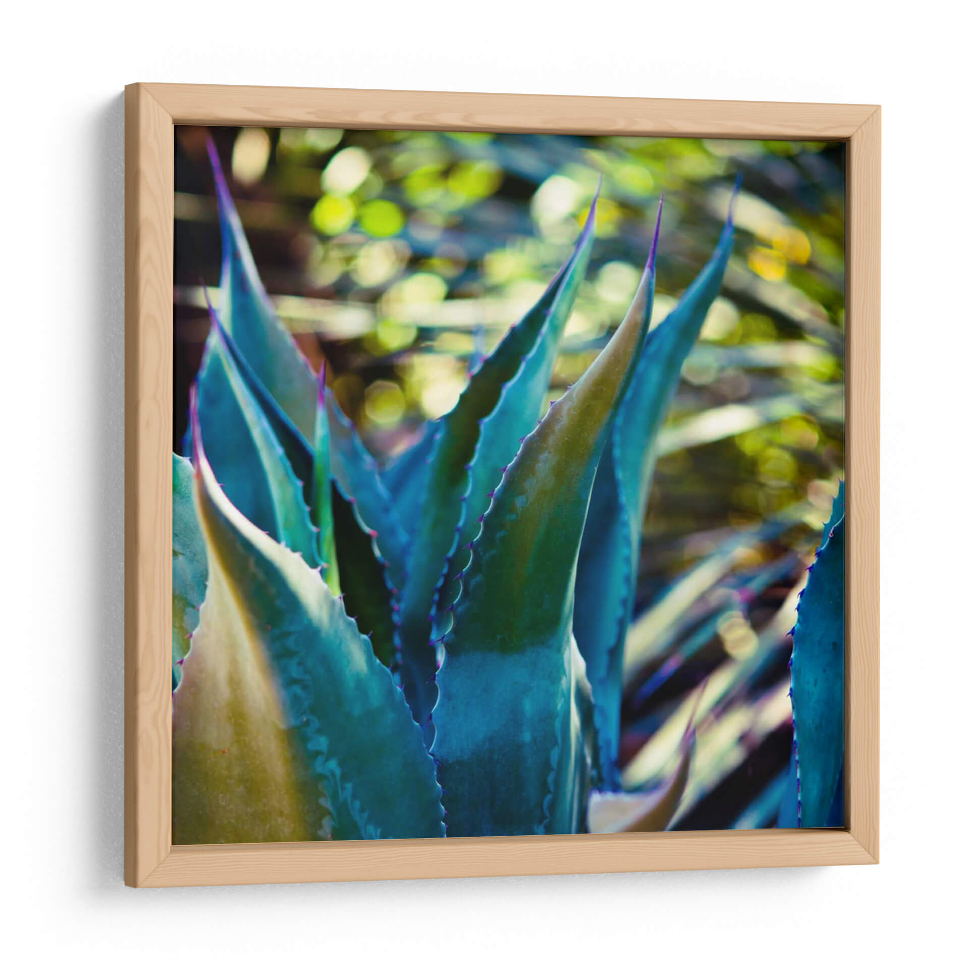 Sumérgete en la vibrante belleza natural con 'Vibes Suculentos I', una obra de arte que captura la esencia de las suculentas en un primer plano cautivador. Los tonos fríos y profundos del azul turquesa dominan la composición, contrastando sutilmente con las espinas de un vibrante morado y los cálidos toques de amarillo y verde en el fondo desenfocado. Esta pieza fotográfica, con su enfoque nítido en las texturas y formas esculturales de las hojas de agave, evoca una sensación de calma y frescura, a la vez que introduce un toque de color audaz en cualquier espacio. La composición, que juega con las líneas verticales de las hojas y el suave bokeh del fondo, crea una profundidad visual que atrae la mirada. 'Vibes Suculentos I' es ideal para añadir un aire de serenidad y un toque botánico moderno a tu sala de estar, dormitorio, oficina o cualquier rincón que busque renovar su energía. Este cuadro decorativo es una invitación a conectar con la naturaleza y a disfrutar de su exuberante detalle en tu hogar u oficina.