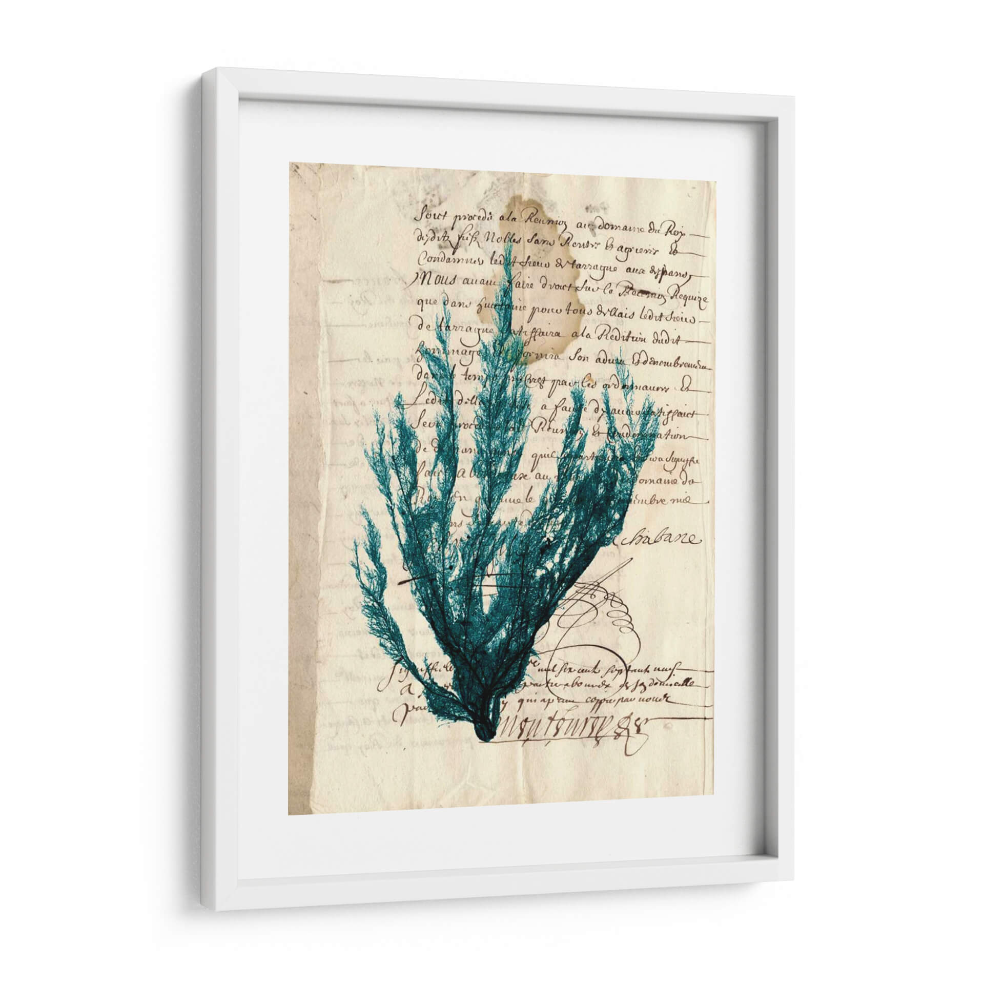 Sumérgete en la elegancia atemporal con "Vintage Teal Seaweed II" de Vision Studio, una obra de arte que evoca la serenidad del océano y la belleza botánica. Este cuadro decorativo presenta una detallada representación de algas marinas en un vibrante tono azul verdoso, posada sobre un fondo que simula un manuscrito antiguo con caligrafía desvanecida y manchas de tiempo. La composición es cautivadora, con la ramificación intrincada de las algas creando un contraste visual fascinante con las líneas suaves y orgánicas de la escritura antigua. Los tonos tierra del papel envejecido, combinados con el profundo azul verdoso de las algas, generan una atmósfera de calma, nostalgia y refinamiento. Ideal para añadir un toque de naturaleza sofisticada y un aire de historia a tu hogar u oficina, este cuadro decorativo es perfecto para espacios que buscan transmitir tranquilidad y un aprecio por la belleza clásica. Su estilo combina elementos botánicos, vintage y un toque de arte epístola, creando una pieza única que invita a la contemplación y embellece cualquier pared.