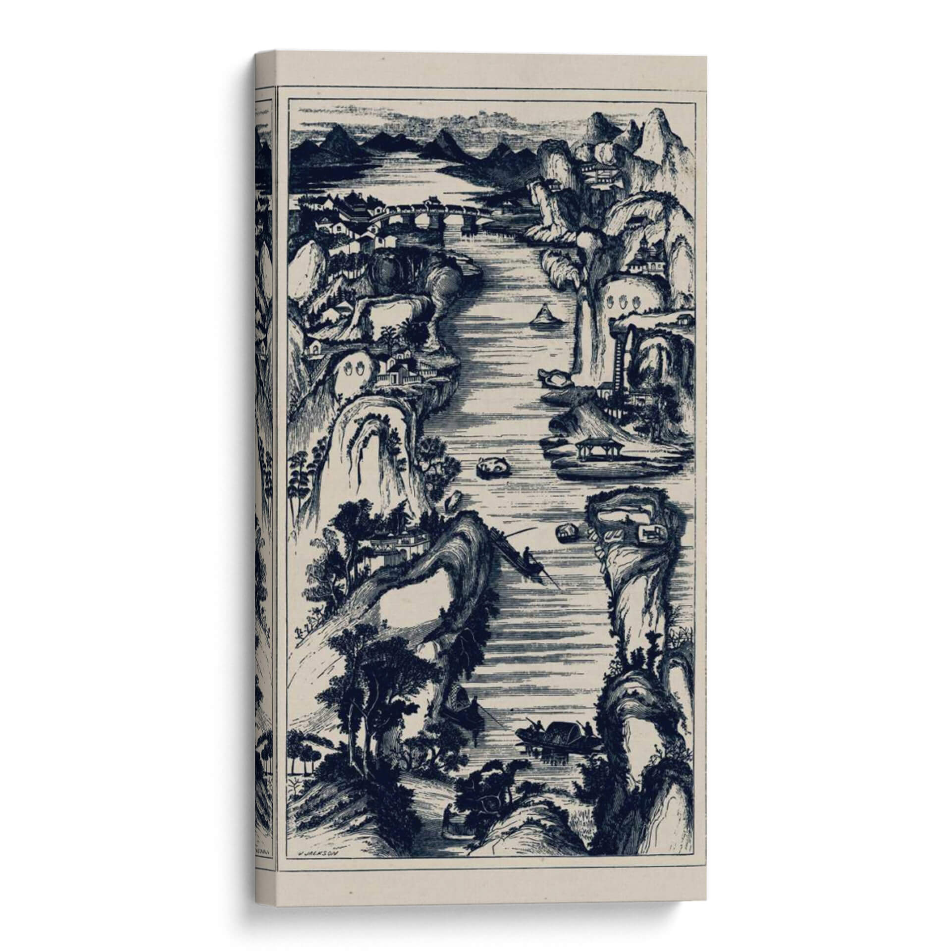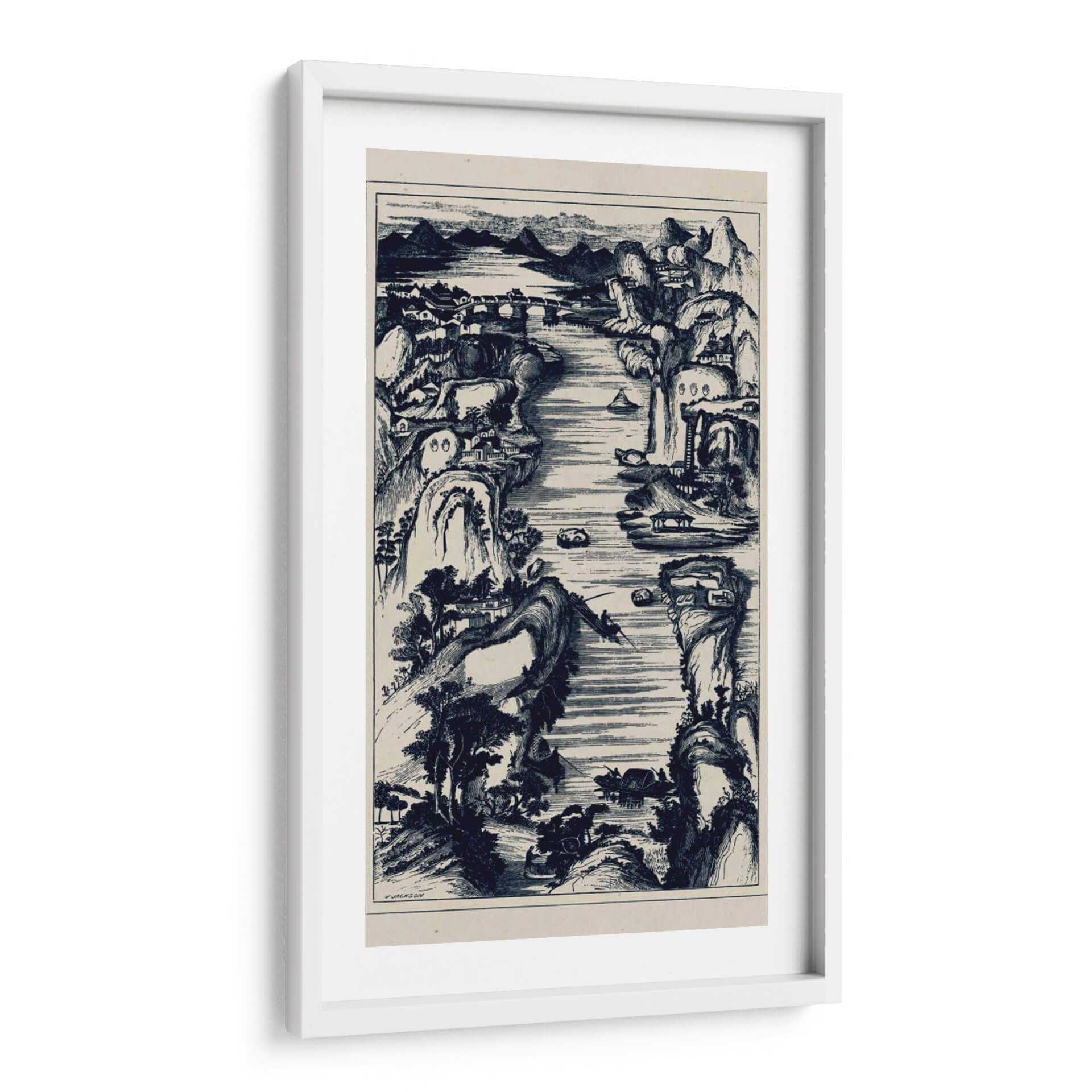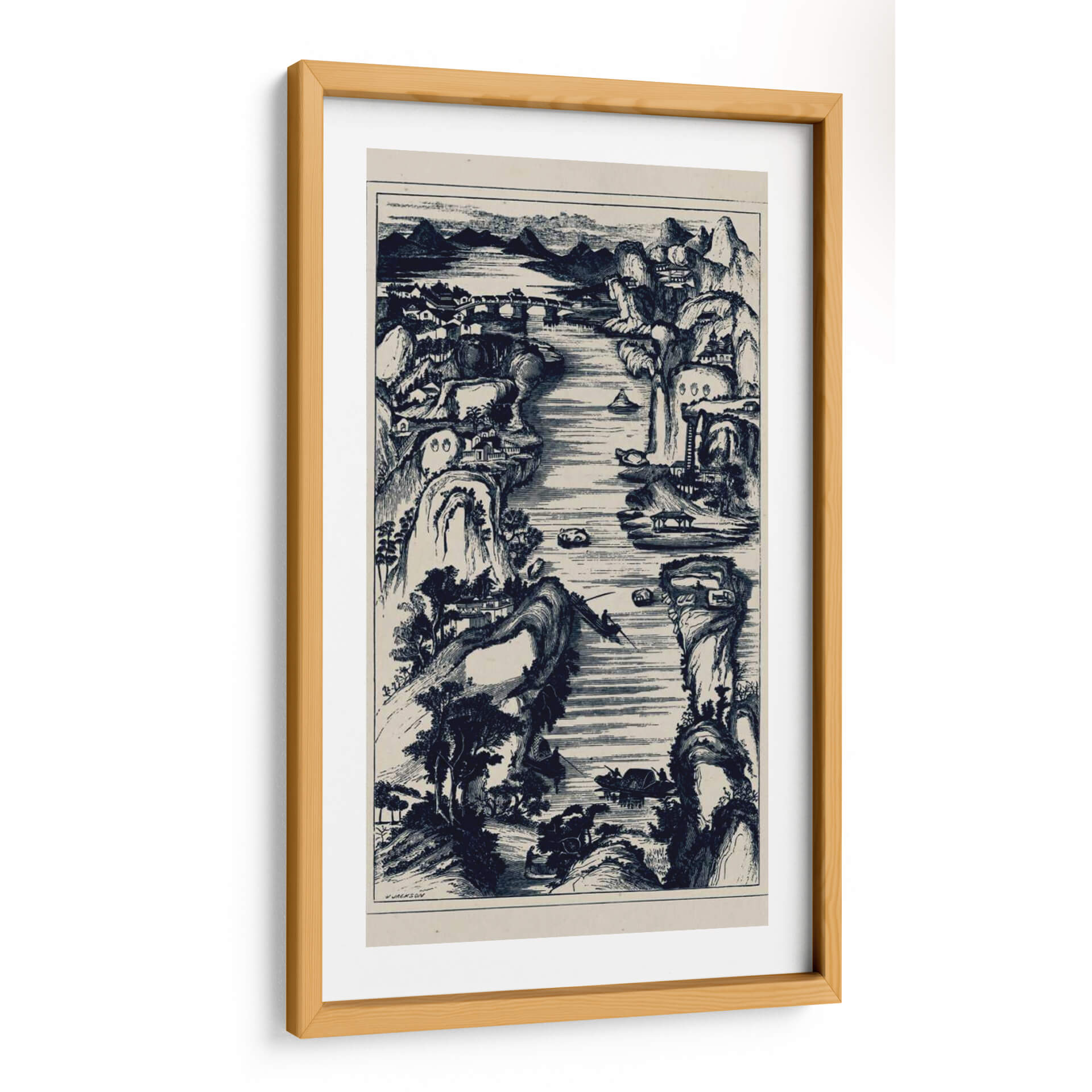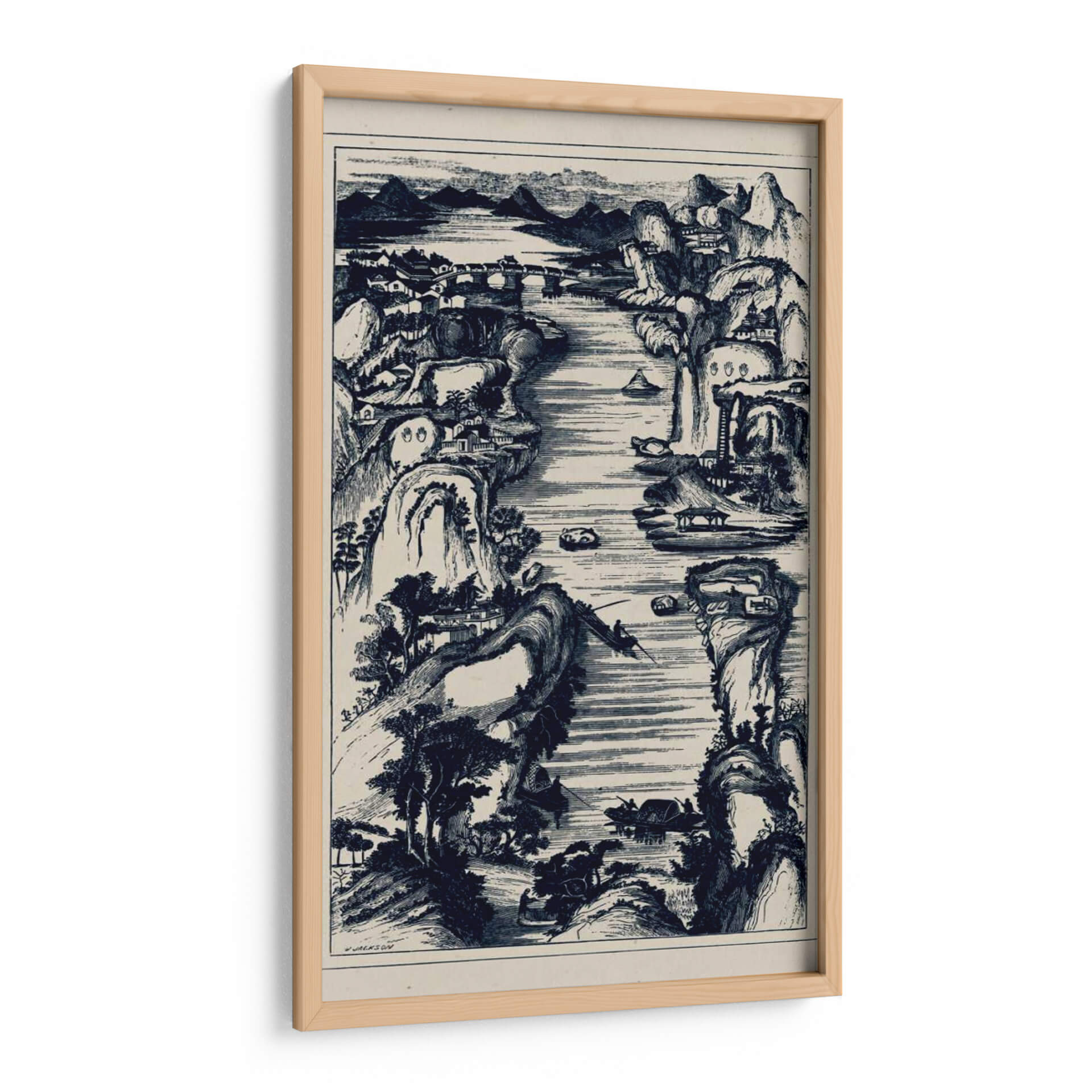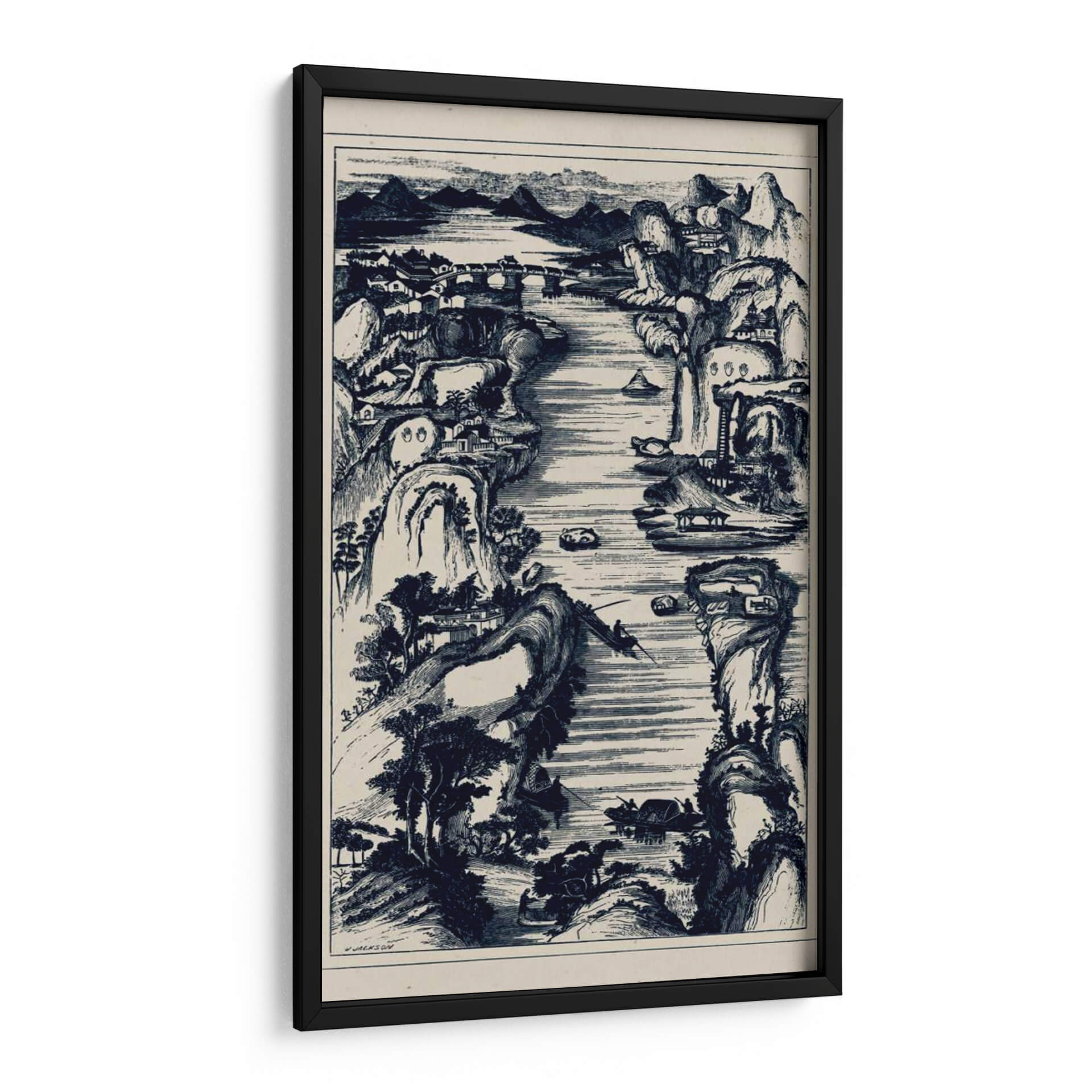 Sumérgete en la serenidad y la majestuosidad de "Vista De Pájaros Chinos En Navy Ii", una obra de arte que evoca la belleza atemporal de los paisajes orientales. Este cuadro decorativo, con su intrincado diseño en tonos azul marino, te transporta a un mundo de montañas escarpadas, ríos sinuosos y serenas embarcaciones. Cada detalle, desde las casas tradicionales que salpican las laderas hasta las delicadas siluetas de los pájaros y la exuberante vegetación, ha sido cuidadosamente representado para crear una atmósfera de calma y contemplación. El estilo evocador de Vision Studio captura la esencia de la pintura tradicional china, fusionando la delicadeza del trazo con la fuerza de la composición. Los intensos contrastes del azul marino sobre un fondo neutro aportan profundidad y elegancia, haciendo de esta pieza un punto focal cautivador para cualquier espacio. Ideal para salones, estudios u oficinas que busquen un toque de sofisticación y tranquilidad, este cuadro decorativo es una invitación a la introspección y al disfrute de la belleza natural. Añade un aire de refinamiento y armonía a tu hogar con esta exquisita representación de un idílico paisaje chino, perfecta para quienes aprecian el arte clásico y la decoración con carácter.