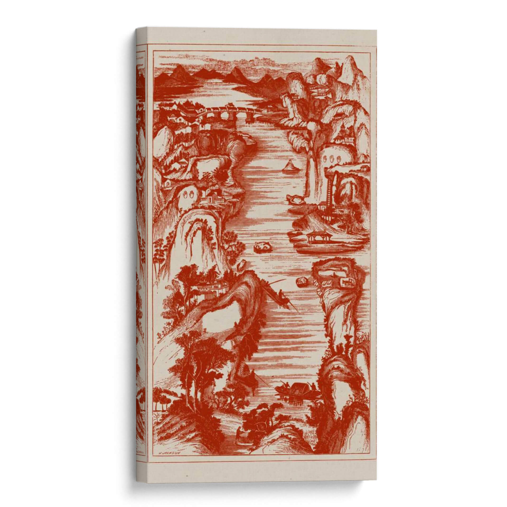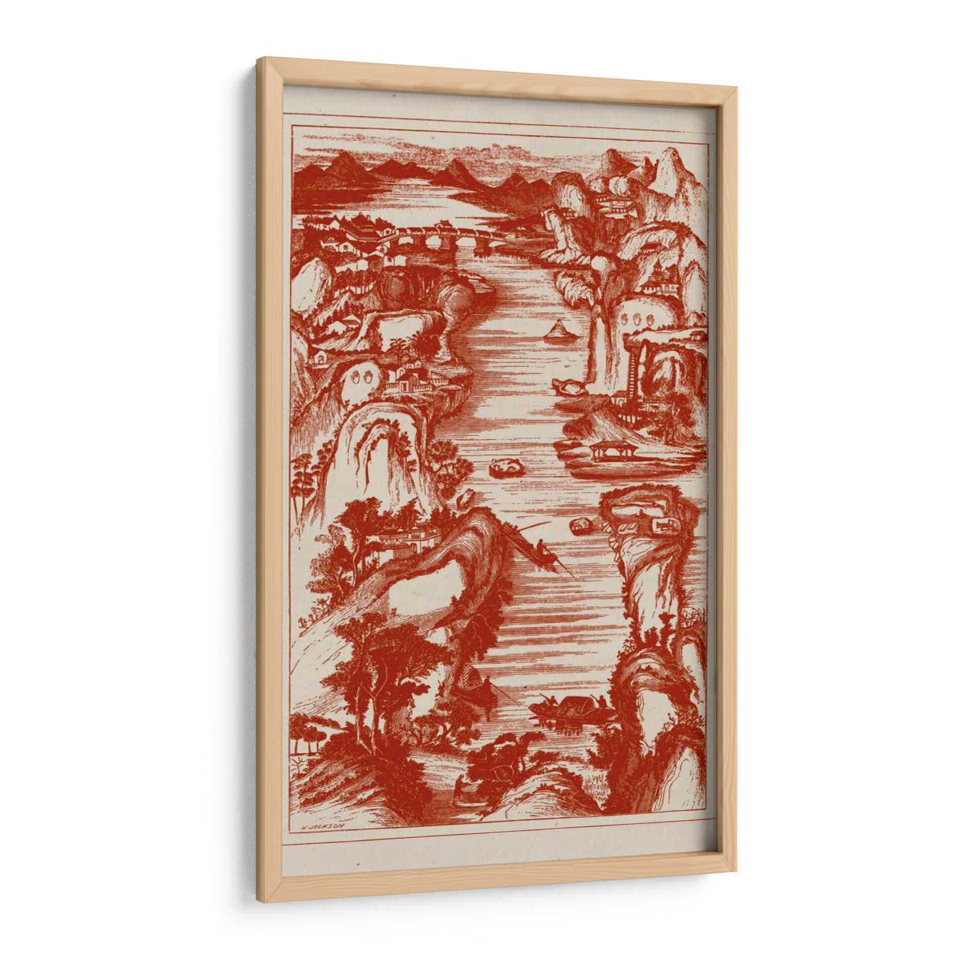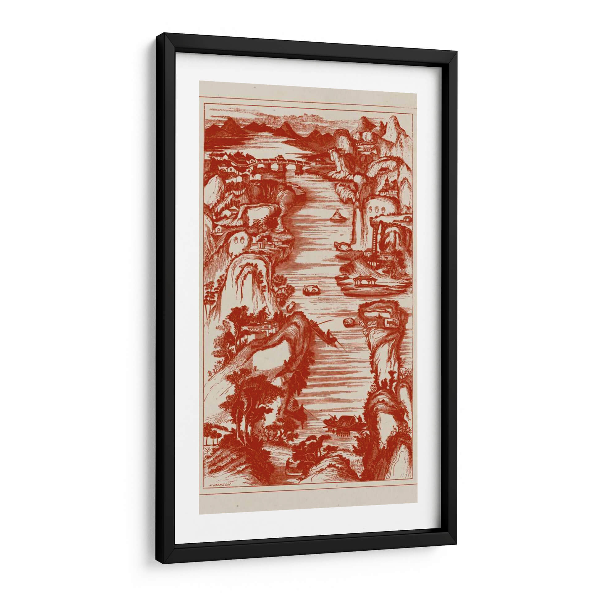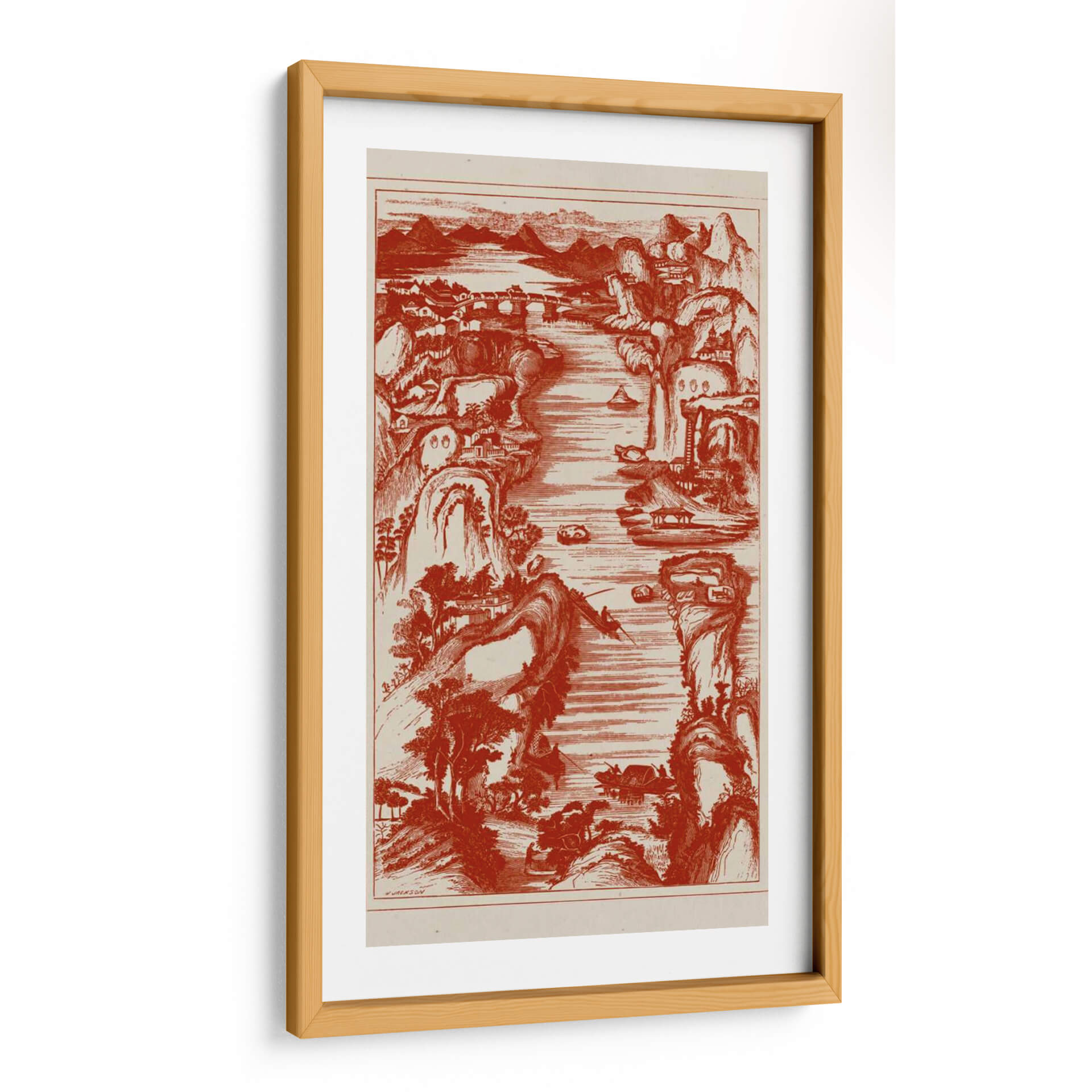 Sumérgete en la serena belleza de "Vista De Pájaros Chinos En Rojo II", una obra de arte que captura la esencia de un paisaje tradicional oriental con un toque moderno. Este cuadro decorativo, creado por Vision Studio, presenta una detallada ilustración en tonos rojos vibrantes sobre un fondo claro, evocando la atmósfera de las antiguas pinturas chinas. La composición despliega un río serpenteante que atraviesa montañas escarpadas, salpicadas de pagodas y vegetación exuberante, mientras pequeñas embarcaciones navegan tranquilamente. Cada trazo está lleno de delicadeza, invitando a la contemplación y transportando al espectador a un mundo de paz y armonía. Ideal para añadir un punto de interés cultural y un toque de color sofisticado a tu sala de estar, estudio u oficina. Este cuadro decorativo es perfecto para quienes aprecian el arte asiático, la ilustración detallada y buscan una pieza que infunda calma y elegancia en su hogar u espacio de trabajo, convirtiéndose en un foco de conversación y admiración.