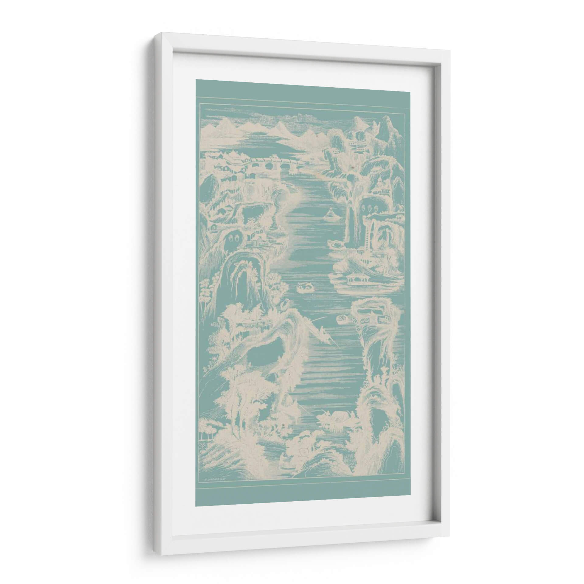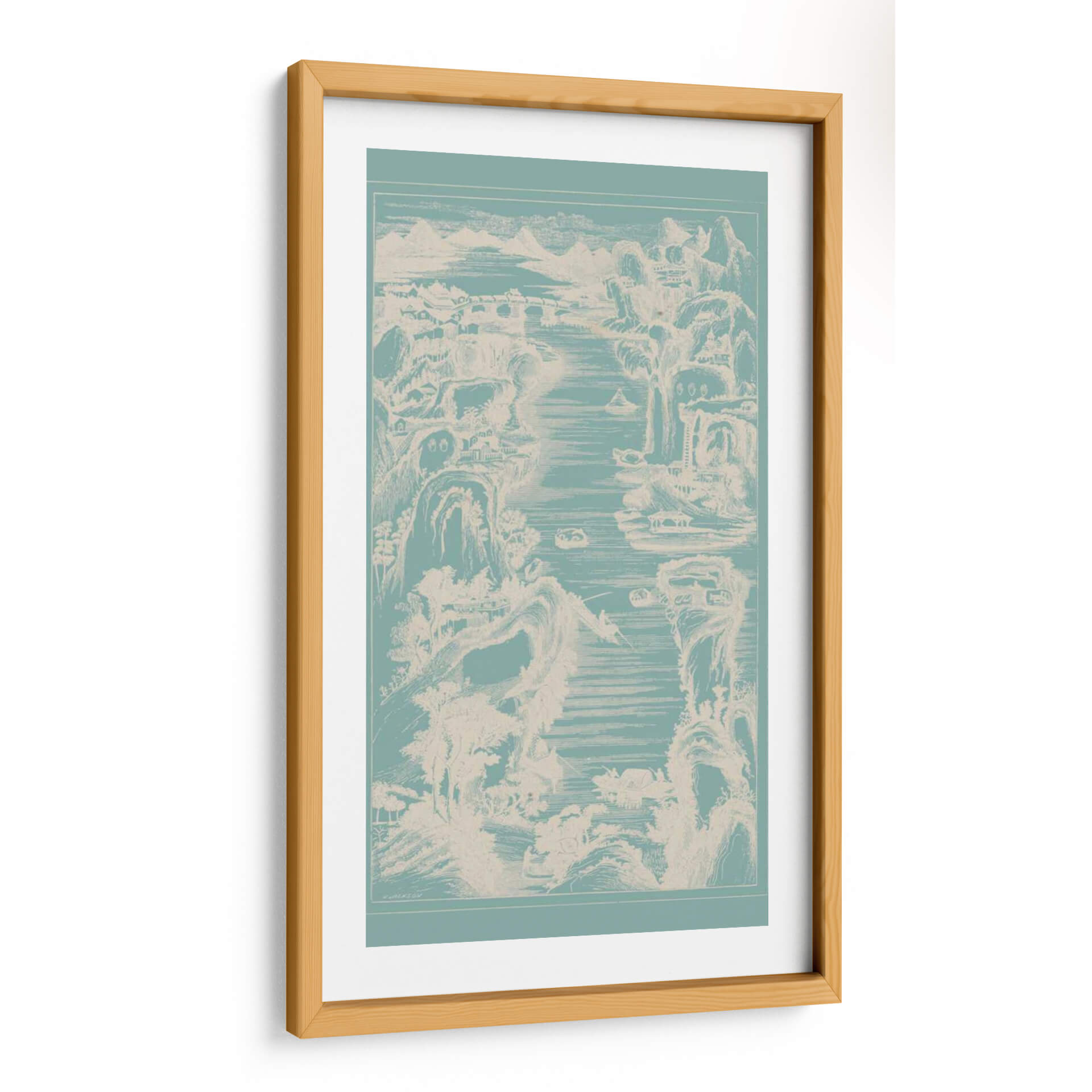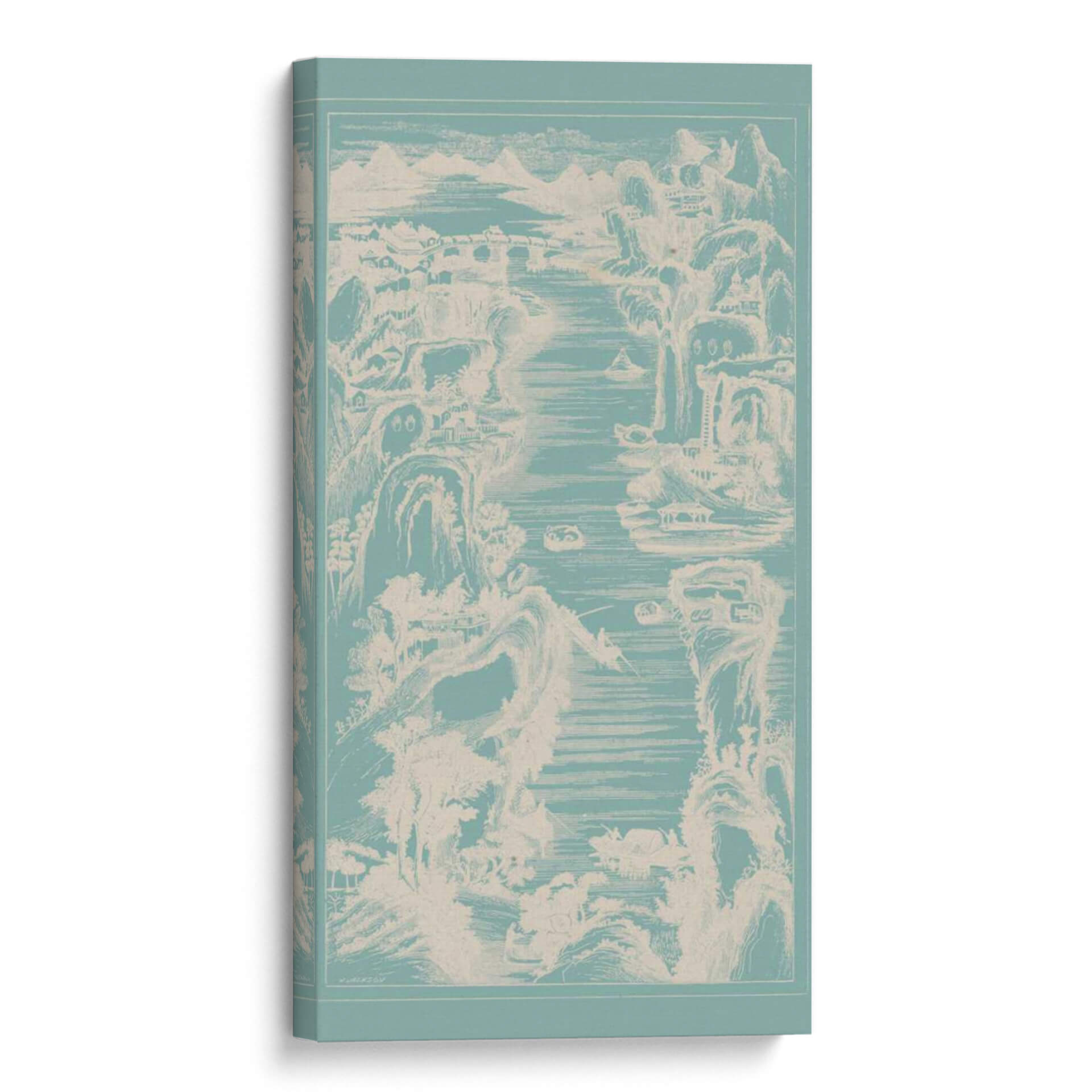 Sumérgete en la serenidad y la belleza etérea de 'Vista De Pájaros Chinos En Spa I', una obra de arte exquisita que evoca la tranquilidad de un paisaje oriental. Este cuadro decorativo, con su paleta de colores predominantemente azul verdoso y blanco, captura la esencia de una escena serena, donde delicadas figuras y elementos arquitectónicos se integran armónicamente con formaciones rocosas y cuerpos de agua. La técnica detallada y el estilo evocan la gracia de las antiguas pinturas chinas, pero con un toque contemporáneo que lo hace perfecto para cualquier espacio moderno. La composición, que se despliega como un pergamino paisajístico, invita a la contemplación y aporta una sensación de calma y armonía al entorno. Ideal para dormitorios, salas de estar o espacios de meditación, este lienzo transformará tu hogar en un oasis de paz y sofisticación. Añade un toque de elegancia atemporal y un aire de sofisticación a tu decoración con esta pieza única que resuena con la naturaleza y la cultura.