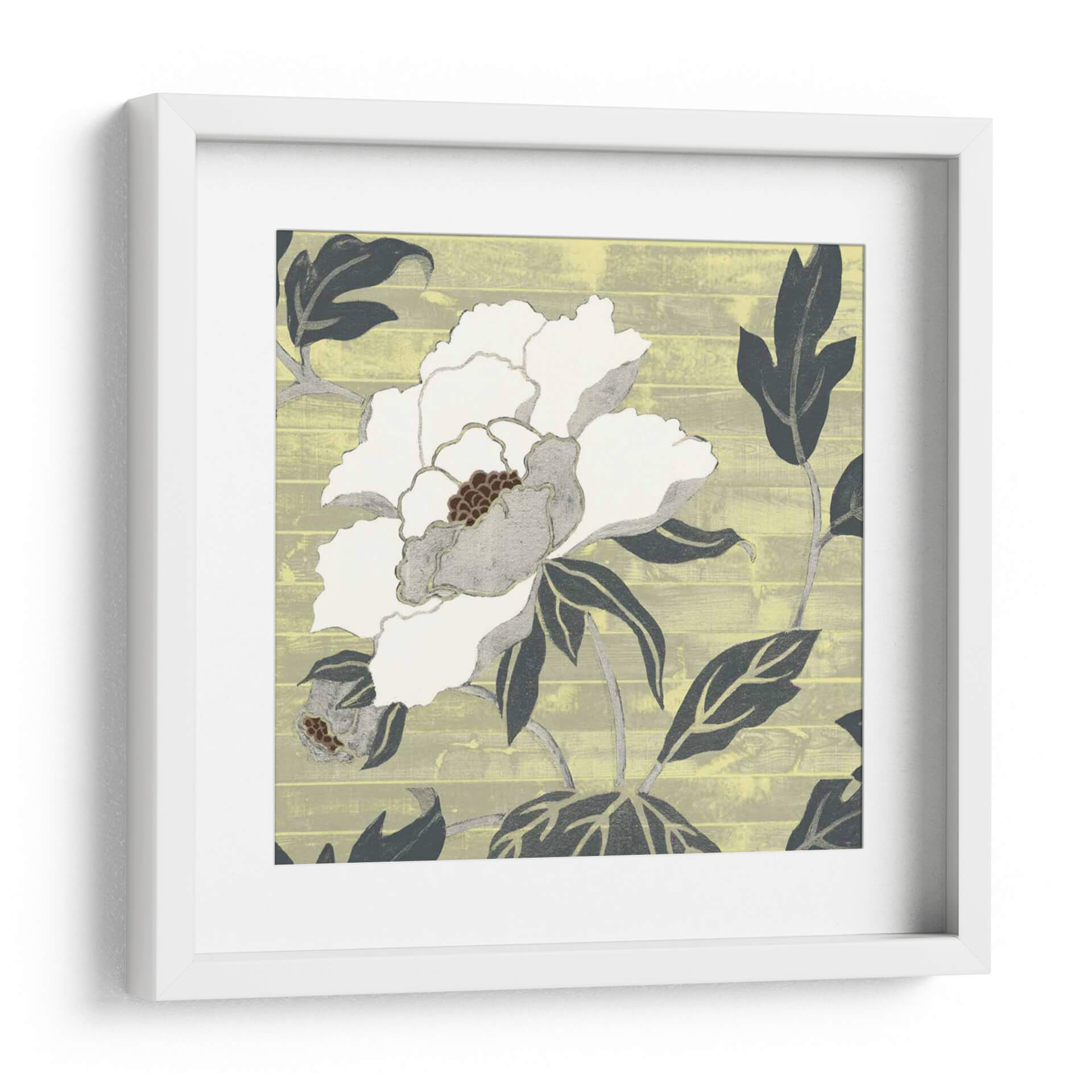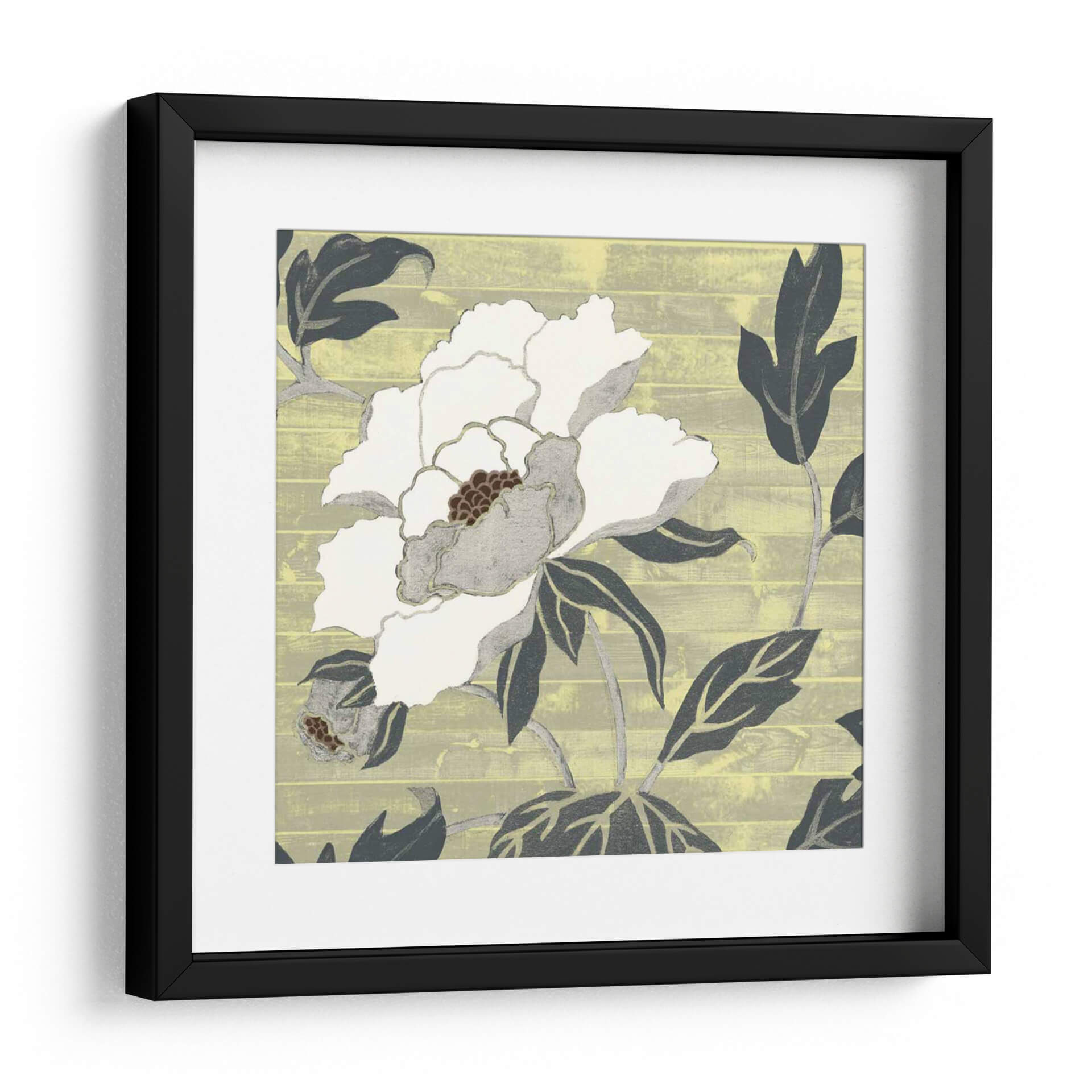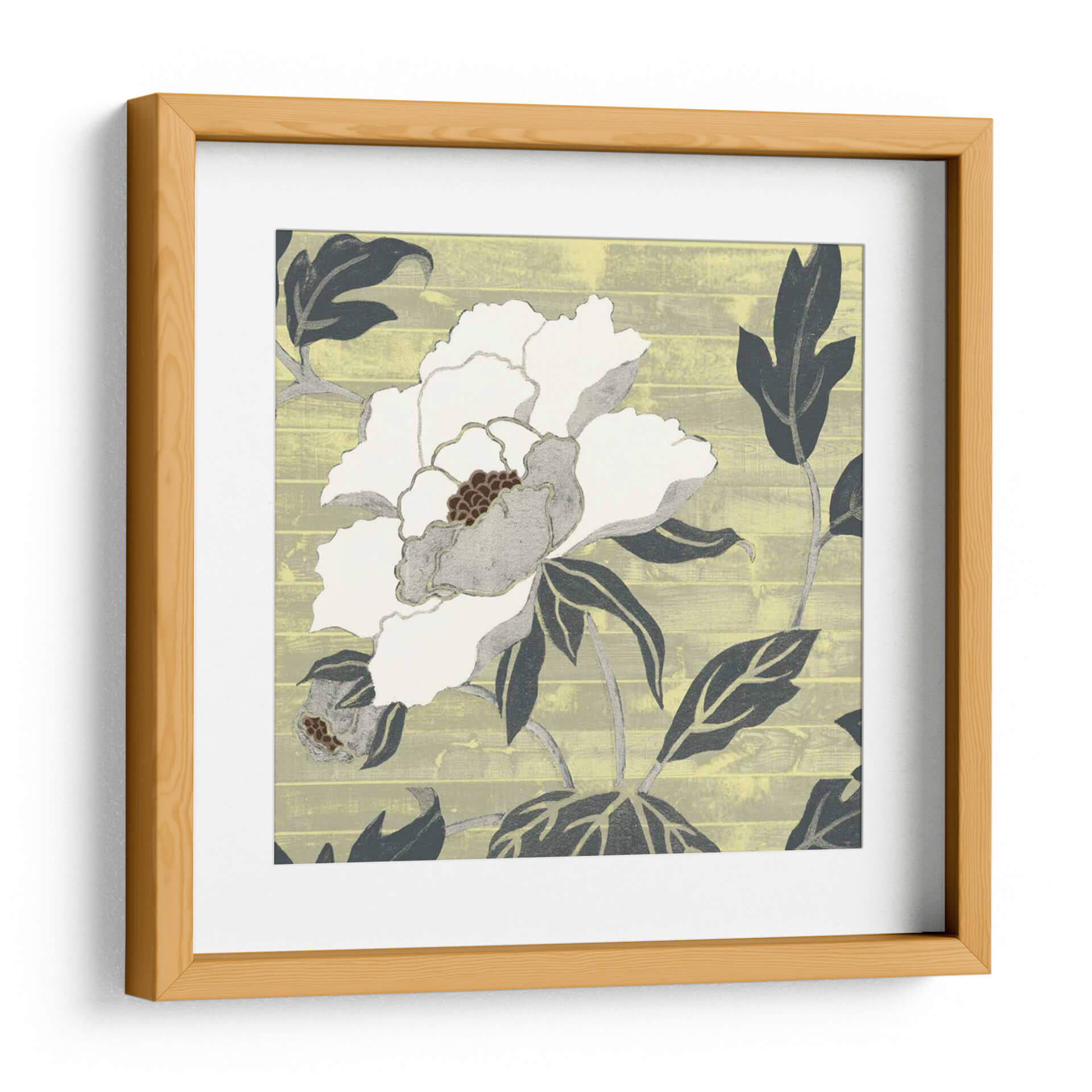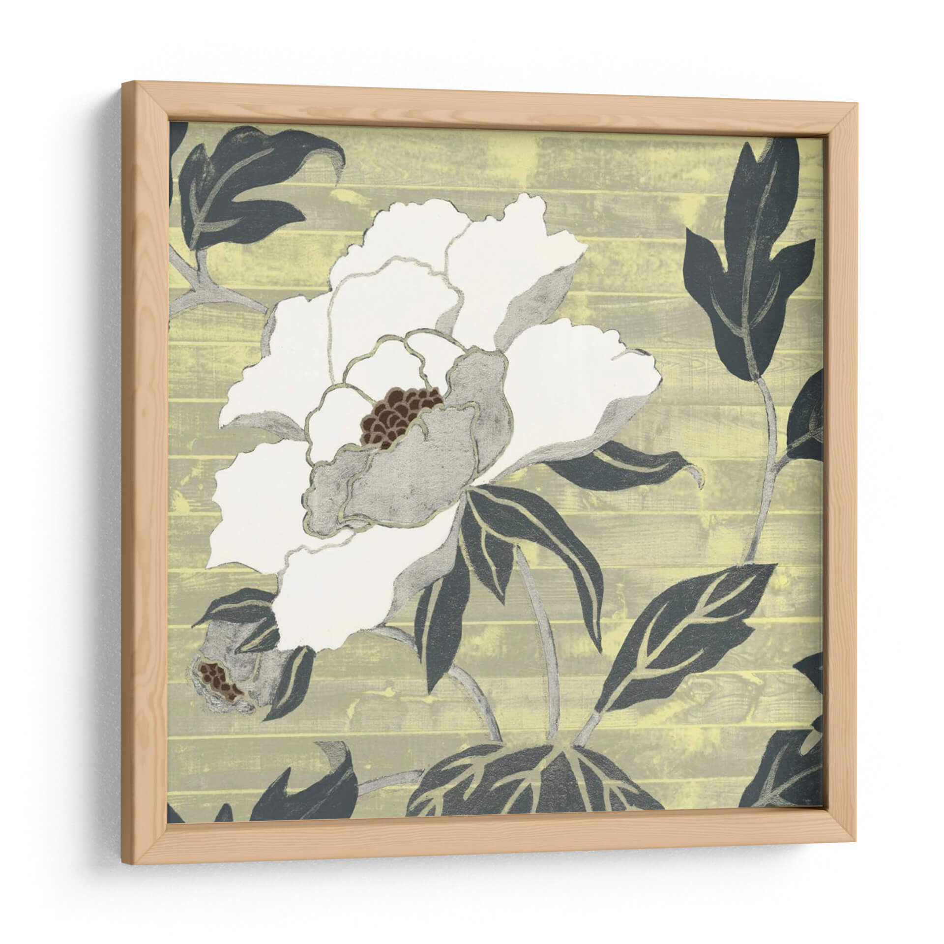 Añada un toque de elegancia botánica y serenidad a su hogar con este exquisito cuadro decorativo 'Woodgrain Peony II' del artista Studio W. La obra presenta una peonía blanca de gran tamaño, delicadamente detallada, con un centro en tonos marrones y grises, contrastando sutilmente con las hojas de un profundo azul verdoso. El fondo, texturizado con un patrón de tablones de madera en un suave tono amarillo verdoso, aporta una calidez orgánica y un aire rústico chic que complementa la delicadeza floral. La composición, que evoca la belleza efímera de la naturaleza, se presta a una interpretación moderna y atemporal. Este cuadro es ideal para crear un punto focal calmante en un dormitorio, aportar sofisticación a un salón o añadir un toque de arte contemporáneo a un pasillo. Su paleta de colores versátil permite integrarlo fácilmente en diversas decoraciones, desde estilos minimalistas hasta ambientes más eclécticos. Descubra la armonía y el detalle que esta pieza puede aportar a su espacio vital.