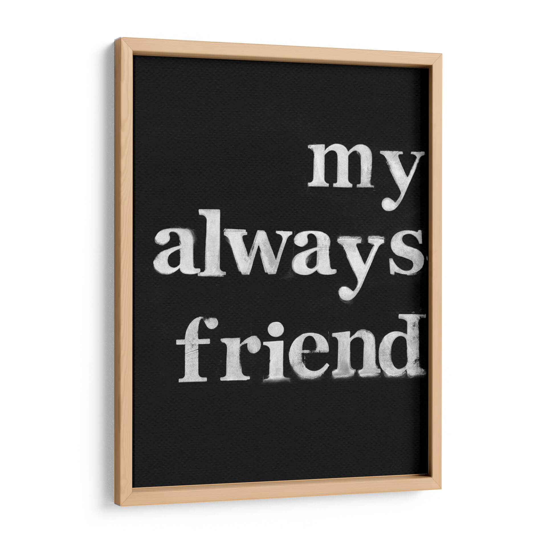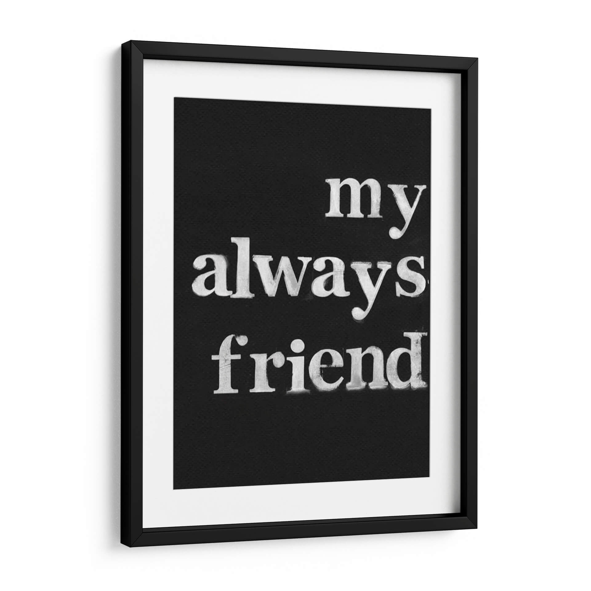 Aporta un toque de calidez y significado a tu espacio con "Amistad II", una obra de arte textual que celebra los lazos más fuertes. Este cautivador cuadro decorativo presenta las palabras "my always friend" (mi amigo de siempre) en una tipografía blanca y desgastada sobre un fondo negro profundo, creando un contraste impactante y un aire de elegancia atemporal. La simplicidad de su diseño lo convierte en una pieza versátil, capaz de integrarse en una amplia gama de estilos decorativos, desde el moderno y minimalista hasta el rústico o industrial. La textura sutil de las letras sugiere un acabado artesanal, aportando profundidad y carácter a la obra. Perfecta para colocar en la sala de estar, el dormitorio o incluso en un espacio de trabajo, "Amistad II" no solo embellece, sino que también evoca sentimientos de lealtad, compañerismo y afecto duradero. Es un recordatorio visual constante de las relaciones valiosas en nuestra vida, convirtiendo cualquier pared en un lienzo de emociones positivas y un reflejo de tu personalidad.