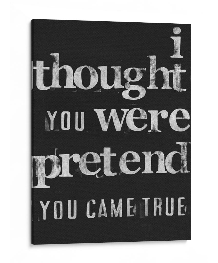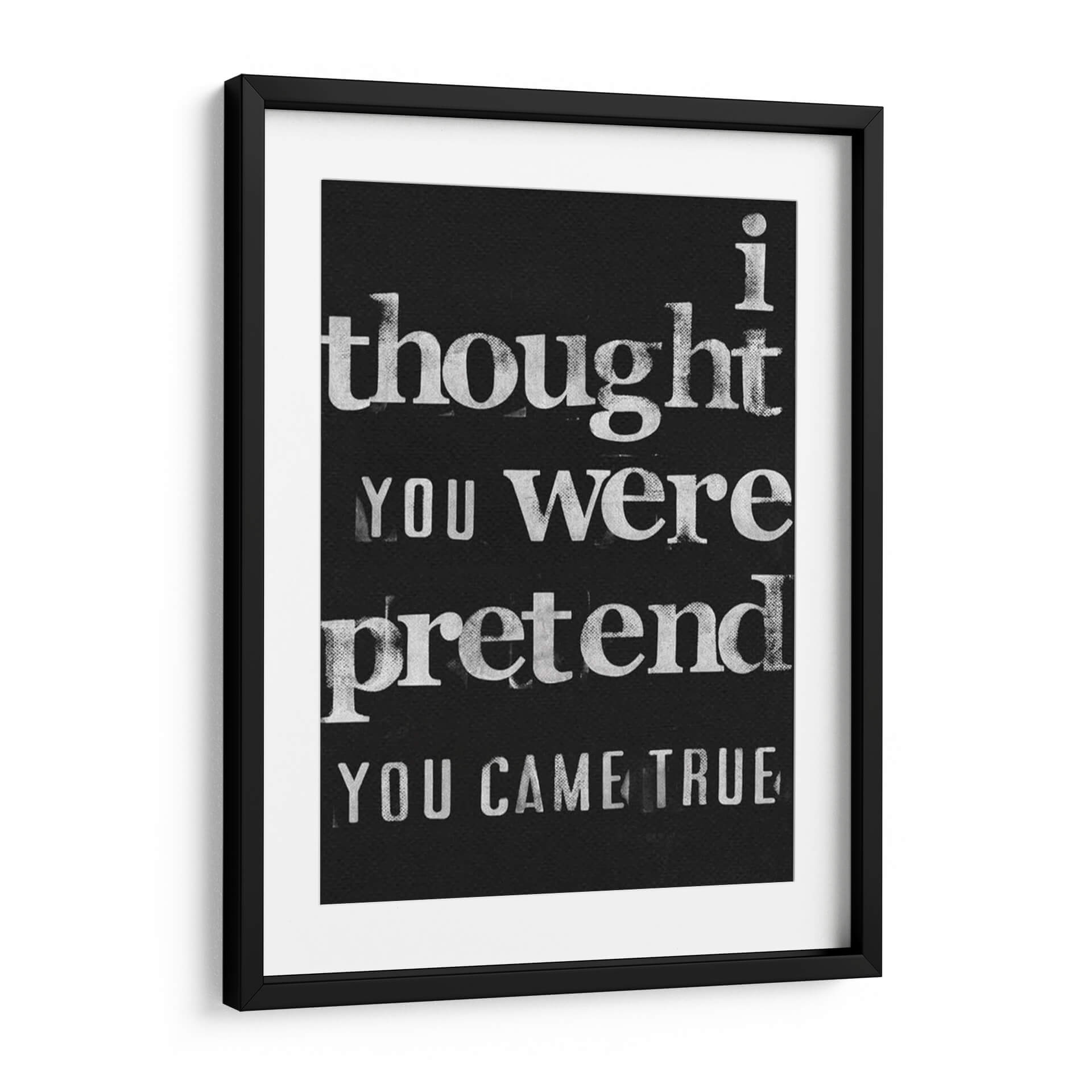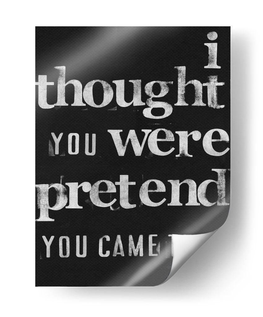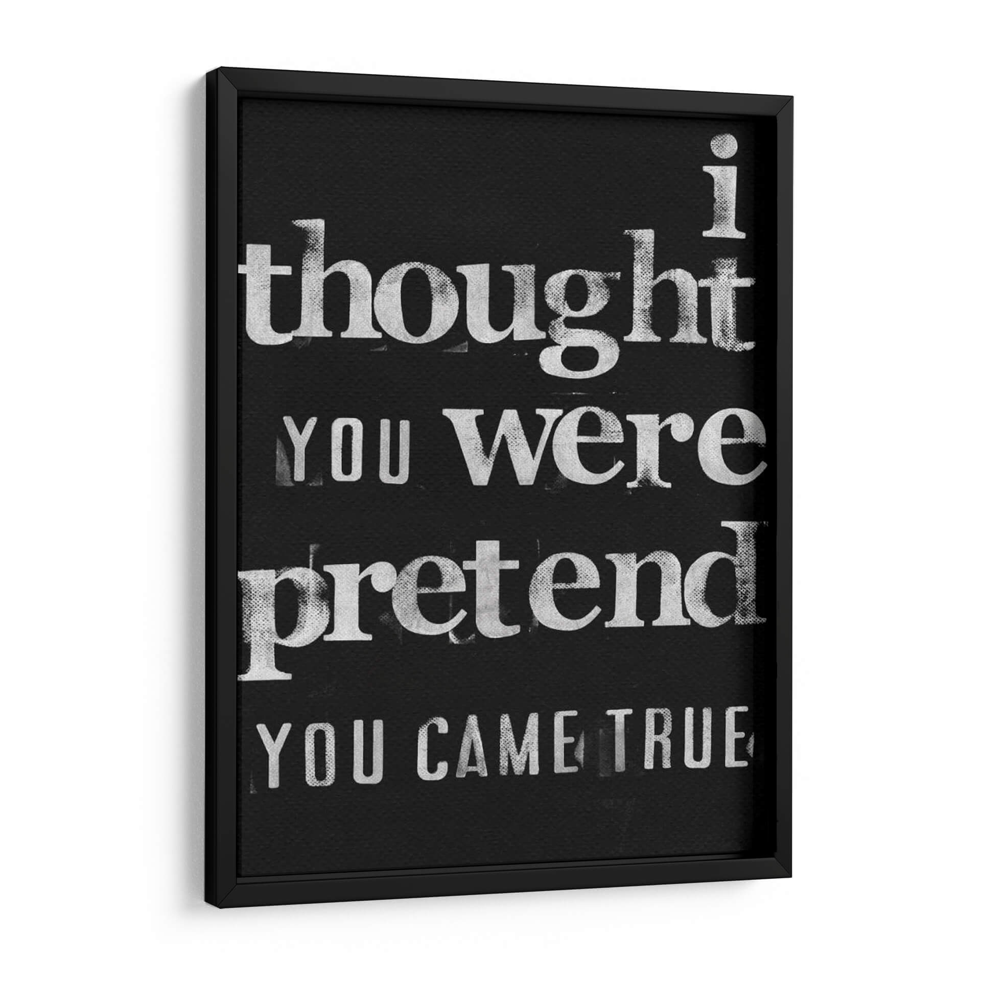 Transforma tu espacio con el evocador cuadro decorativo "Amistad Iv" de Deborah Velasquez. Esta obra, que juega con un contraste impactante entre el fondo negro y la tipografía blanca desgastada, presenta una cita que invita a la reflexión sobre las relaciones y los deseos que se hacen realidad: "i thought you were pretend you came true". La composición tipográfica, con sus letras audaces y texturizadas, crea un efecto visual dinámico y moderno, ideal para añadir personalidad a cualquier ambiente. Su estilo minimalista y el uso del blanco y negro la convierten en una pieza versátil, perfecta para salas de estar contemporáneas, estudios o incluso dormitorios, aportando un toque de intriga y profundidad. "Amistad Iv" no es solo una pieza decorativa, sino un recordatorio visual de las esperanzas y las conexiones que enriquecen nuestras vidas. Descubre cómo este cuadro puede convertirse en el punto focal de tu hogar u oficina, inspirando conversaciones y añadiendo un carácter único a tu decoración.