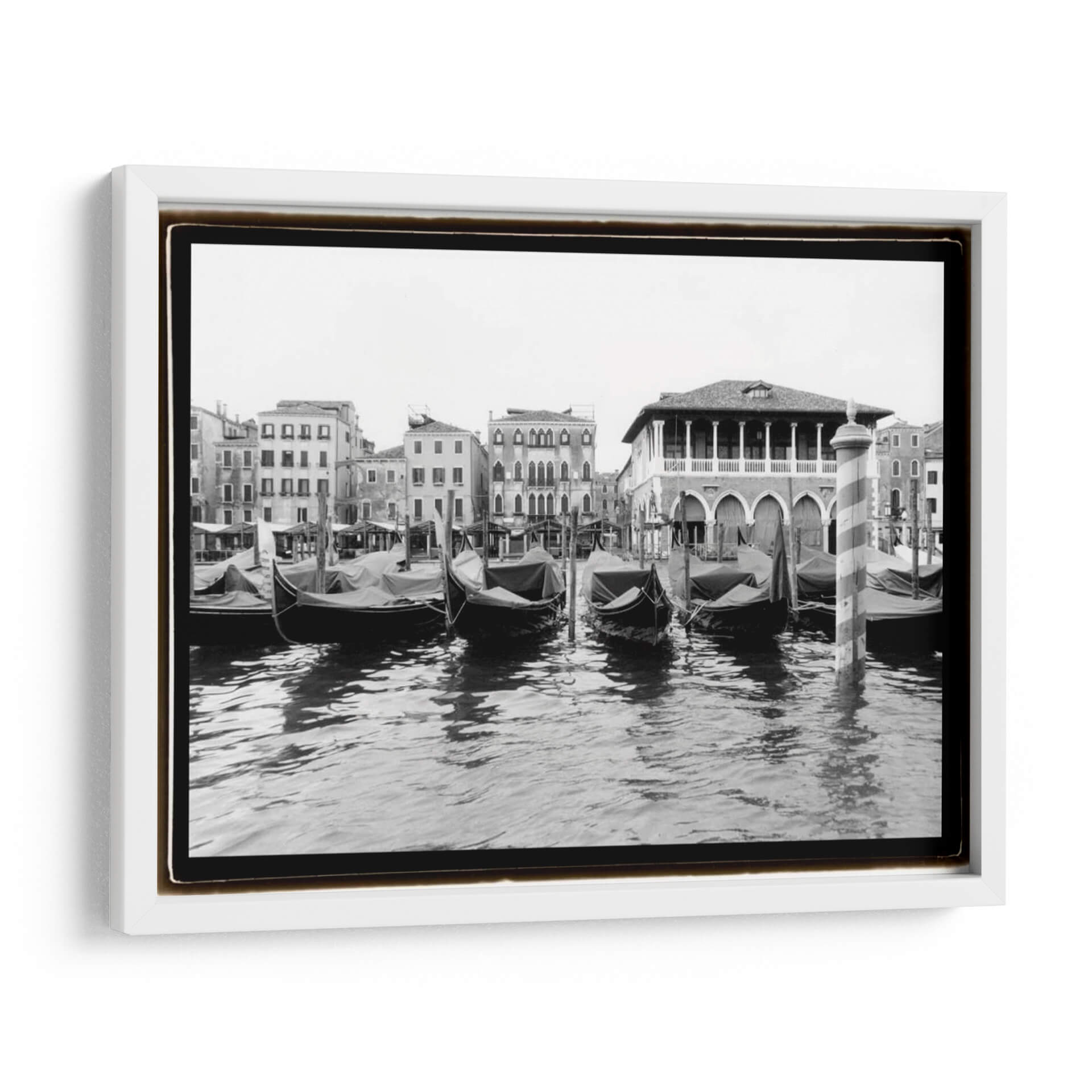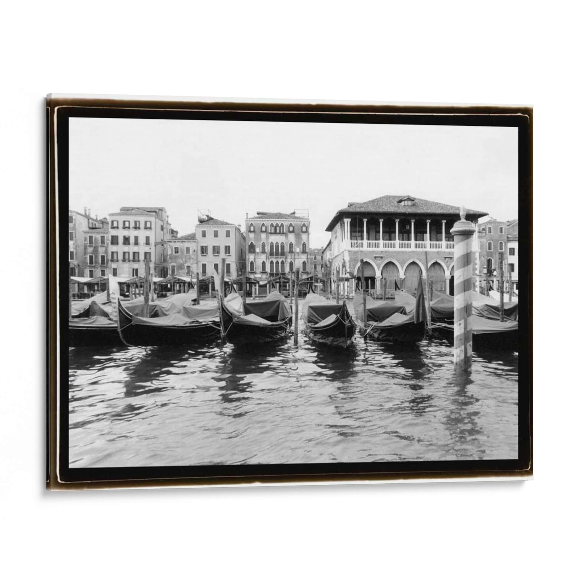 Embárquese en un viaje visual a través del tiempo con "Atisbos - Gran Canal De Venecia II", una cautivadora obra de arte de Laura DeNardo. Esta pieza en blanco y negro captura la esencia atemporal de Venecia, transportando al espectador a las icónicas aguas del Gran Canal. La imagen presenta una serena fila de góndolas cubiertas, ancladas junto a edificios venecianos de arquitectura clásica, cuyas fachadas detalladas y ventanas reflejan una rica historia. El juego de luces y sombras, acentuado por la paleta monocromática, añade profundidad y dramatismo, mientras que las ondulaciones del agua crean un patrón hipnótico que invita a la contemplación. La composición, equilibrada y armoniosa, evoca una sensación de calma y nostalgia, perfecta para aquellos que buscan infundir serenidad y elegancia en su hogar u oficina. Este cuadro decorativo es ideal para salones, estudios o pasillos, aportando un toque de sofisticación y un aire de escapismo. "Atisbos - Gran Canal De Venecia II" no es solo una imagen, es una ventana a un mundo de belleza clásica y tranquilidad, un testimonio del encanto perdurable de Venecia y el talento de Laura DeNardo para capturar su espíritu.