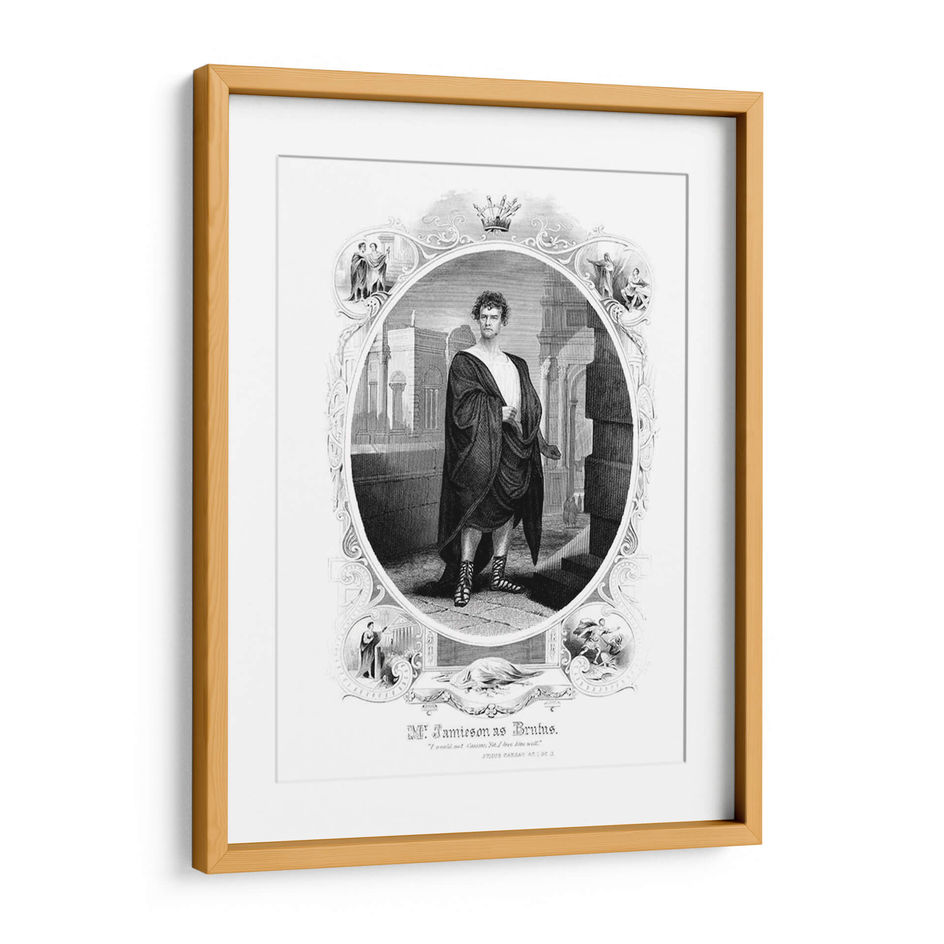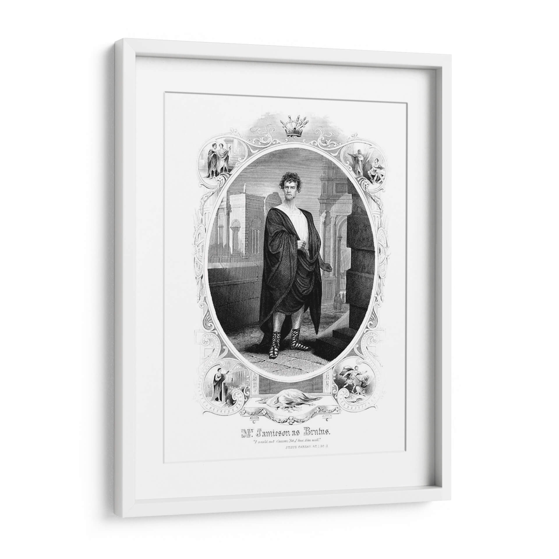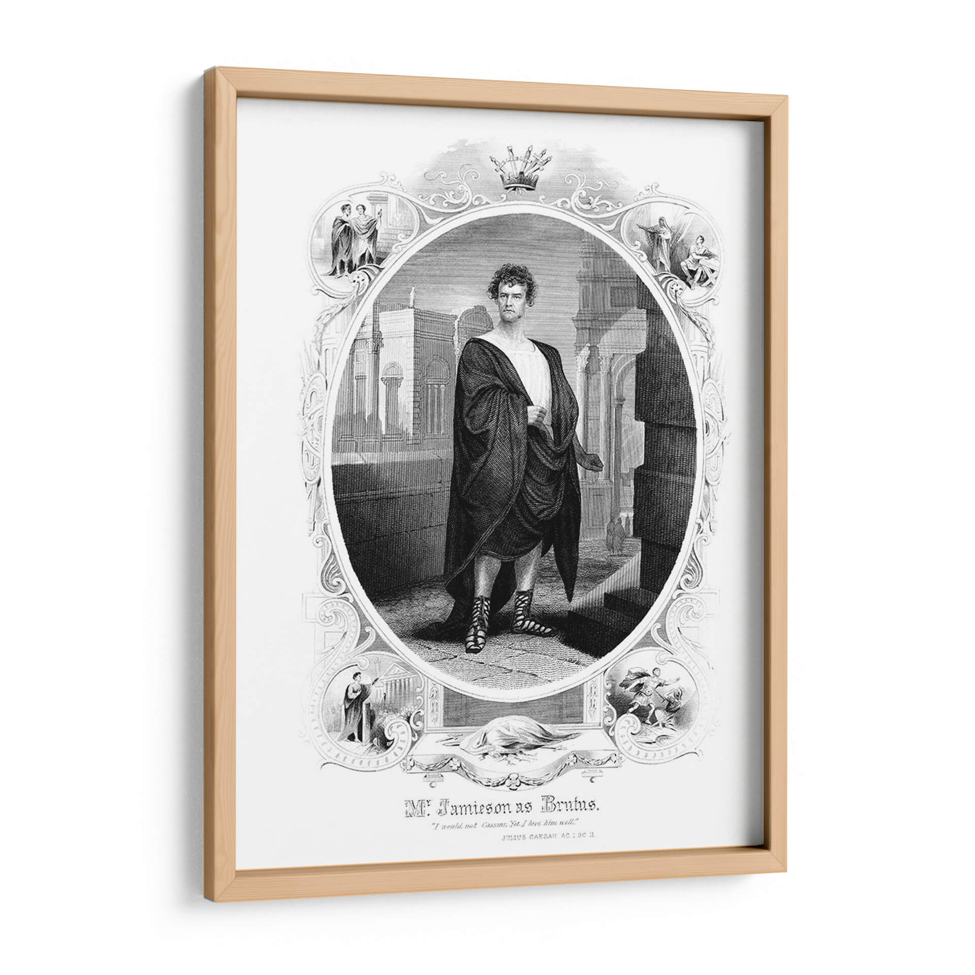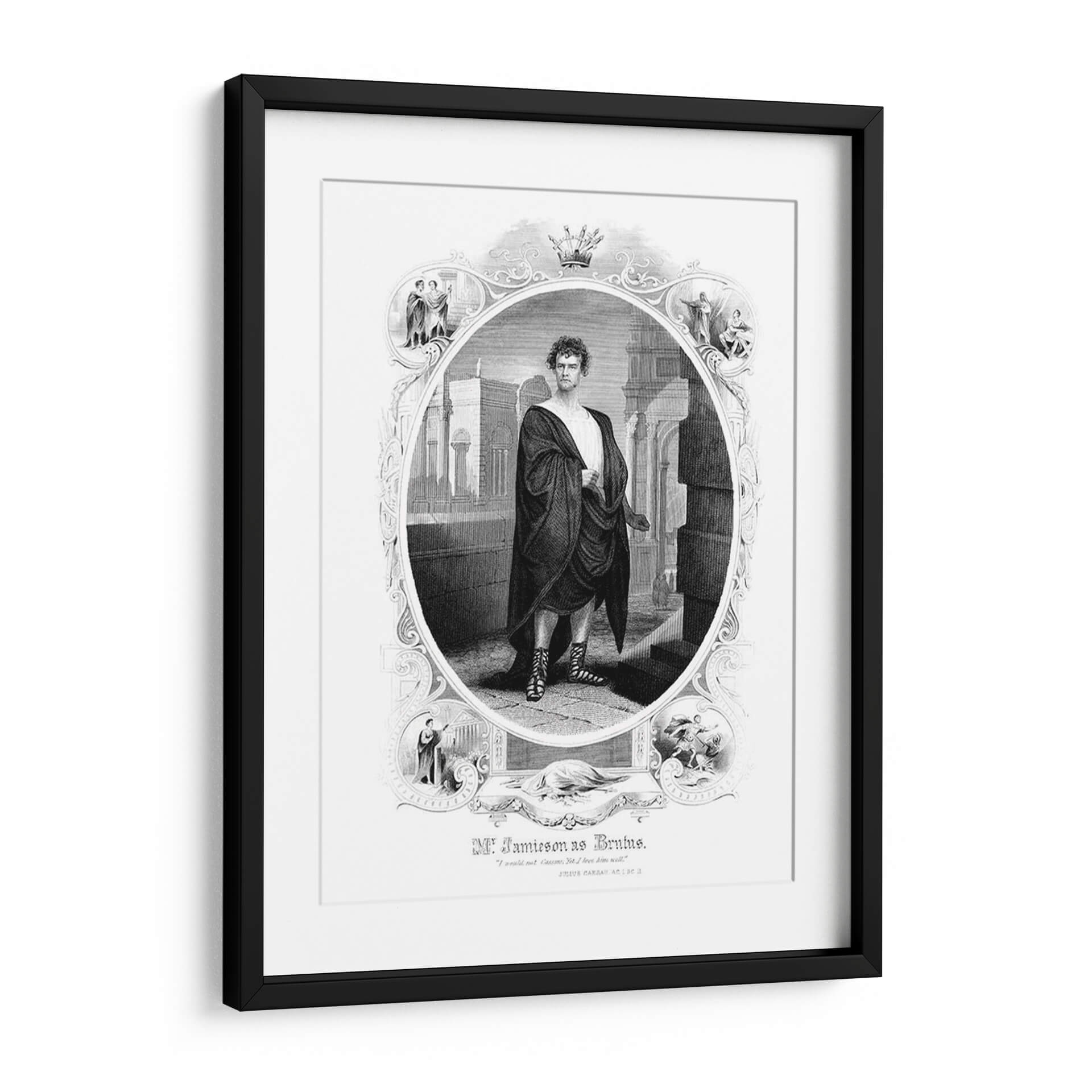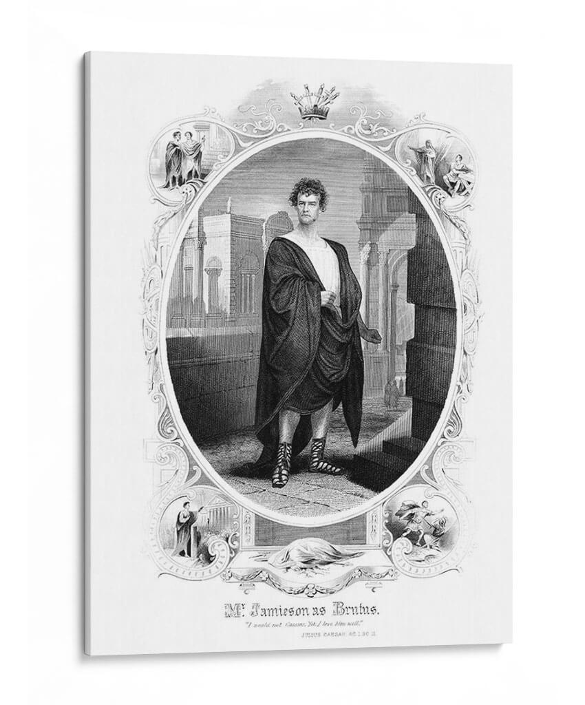 Sumérgete en la grandeza histórica con este impactante cuadro decorativo que representa a Brutus. La obra, ejecutada en un estilo de grabado clásico y detallado, presenta una figura central vestida con una toga romana, emanando autoridad y determinación. El fondo arquitectónico, con sus columnas y sombras dramáticas, evoca la antigua Roma, creando una atmósfera de poder y tragedia. La paleta de colores monocromática, con sus contrastes de luz y oscuridad, añade profundidad y realismo a la escena. Esta pieza es ideal para espacios que buscan un toque de historia, drama y sofisticación, como una biblioteca, un estudio o una sala de estar de estilo clásico. El detalle minucioso, desde la expresión facial hasta el drapeado de la toga y las sandalias ornamentadas, invita a la contemplación y la admiración. Un cuadro decorativo que no solo embellece tu pared, sino que también cuenta una historia de valentía y legado, perfecto para los amantes de la historia y el arte con carácter.