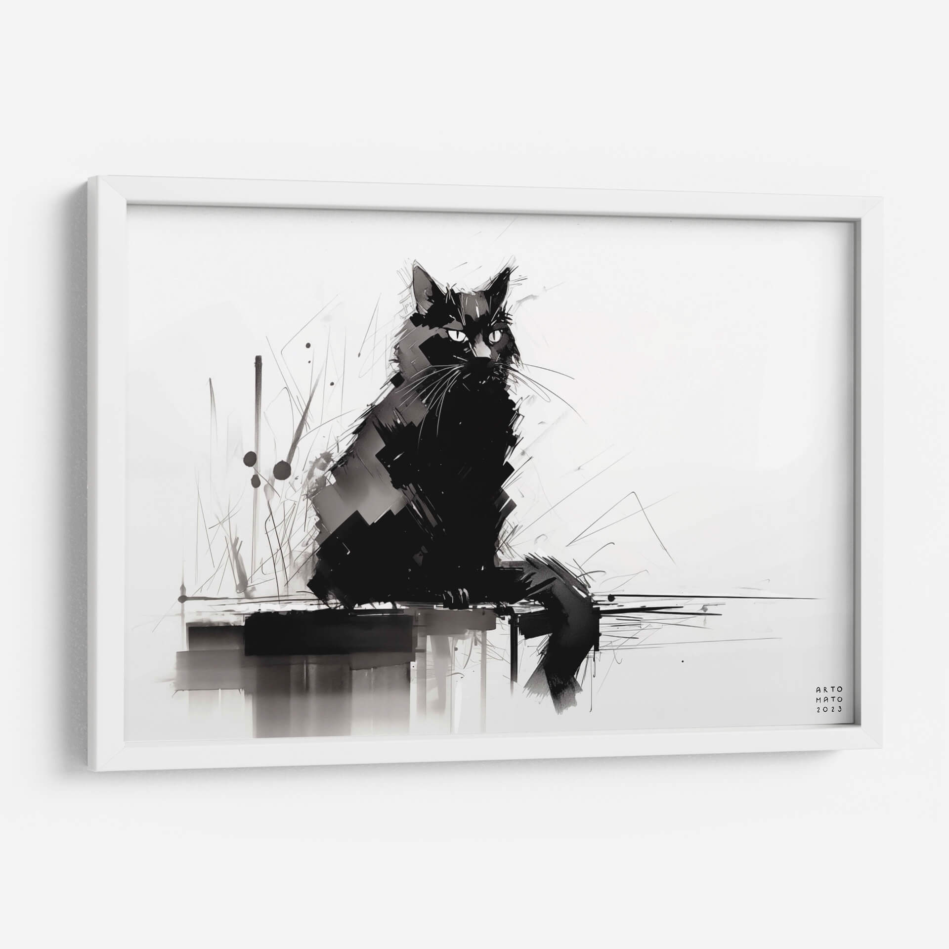 Sumérgete en la enigmática presencia de 'Cinismo', una obra de arte contemporáneo que captura la esencia de un gato negro con una técnica de trazos audaces y expresivos. Este cuadro decorativo en blanco y negro juega con el contraste y la abstracción, creando una atmósfera de misterio y sofisticación. Los trazos gestuales y las manchas de tinta evocan la fluidez del movimiento y la naturaleza esquiva del felino, mientras que el uso del blanco y negro aporta una elegancia atemporal. La composición se centra en la mirada penetrante del gato, invitando a la contemplación y la conexión. "Cinismo" es una pieza versátil que aportará un toque de carácter y arte moderno a cualquier espacio, desde una sala de estar vanguardista hasta un estudio o una oficina. Su estilo abstracto y monocromático lo convierte en un punto focal intrigante, capaz de dialogar con diversas paletas de colores y estilos de decoración. Ideal para amantes de los gatos y del arte abstracto, esta obra es una declaración de estilo y personalidad que transformará tus paredes. Descubre la dualidad entre la elegancia felina y la fuerza expresionista en este lienzo que promete ser una adición cautivadora a tu colección de arte.