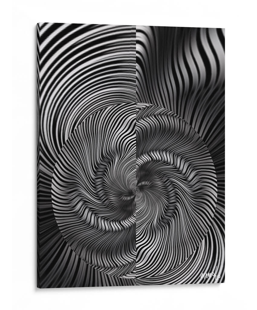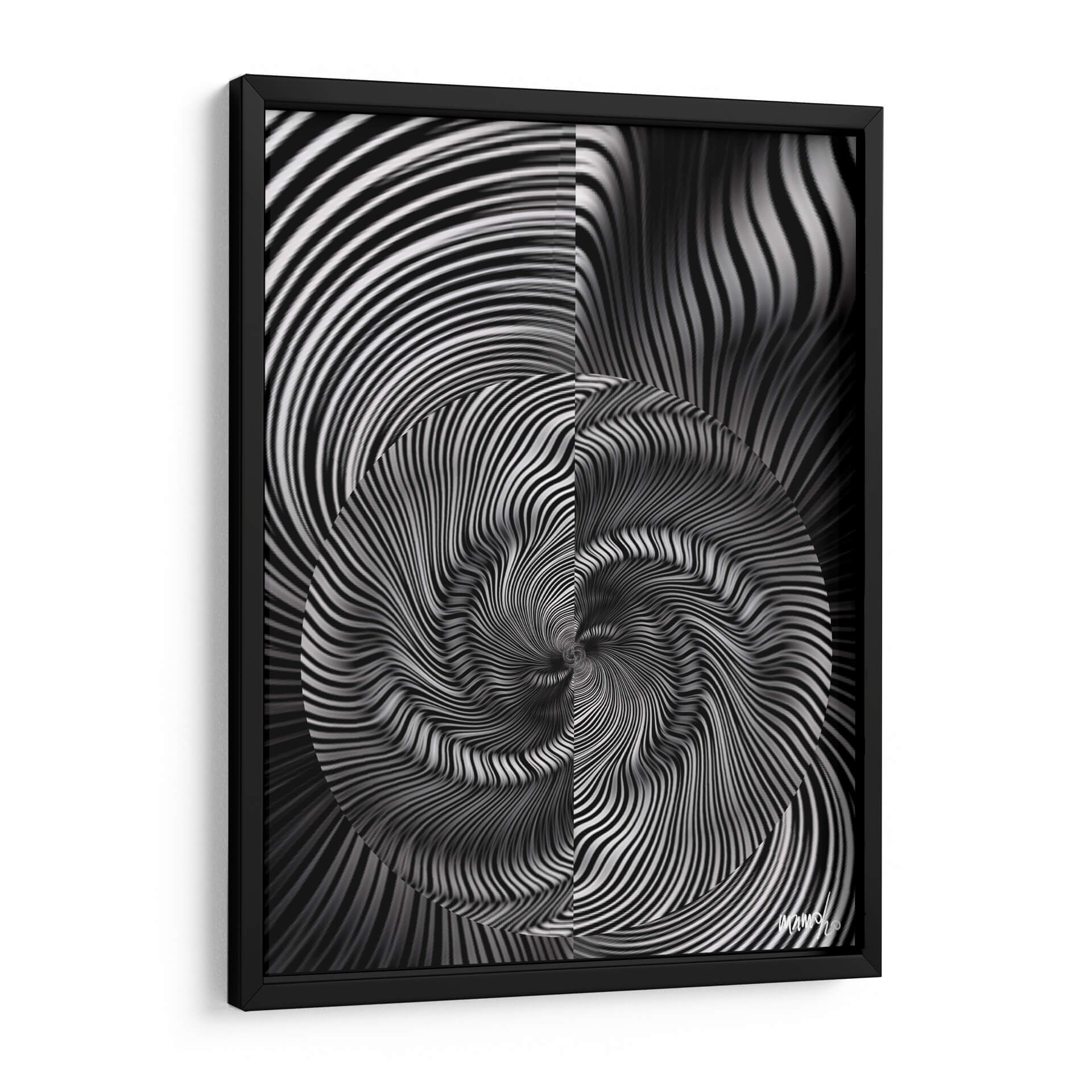 Sumérgete en la hipnótica profundidad de 'Diorita 1 V', una obra de arte abstracto creada por Gina Villalobos. Este cuadro decorativo es una exploración cautivadora de líneas y formas que giran y se entrelazan, creando una sensación de movimiento dinámico y fascinación visual. La paleta de colores monocromática, dominada por intensos contrastes de blanco y negro, aporta una elegancia atemporal y una modernidad audaz, haciendo de esta pieza un punto focal impactante en cualquier estancia. La composición, dividida y luego unificada por un vórtice central, invita a la reflexión y a la contemplación, generando una atmósfera de misterio y energía controlada. Ideal para espacios contemporáneos, oficinas o salones que buscan una declaración artística distintiva, 'Diorita 1 V' no es solo una decoración, sino una experiencia visual que estimula la imaginación y añade sofisticación a tu entorno. La precisión de las líneas y la profundidad lograda hacen de esta obra una pieza maestra del arte abstracto, perfecta para quienes aprecian la audacia y la elegancia en la decoración de interiores.