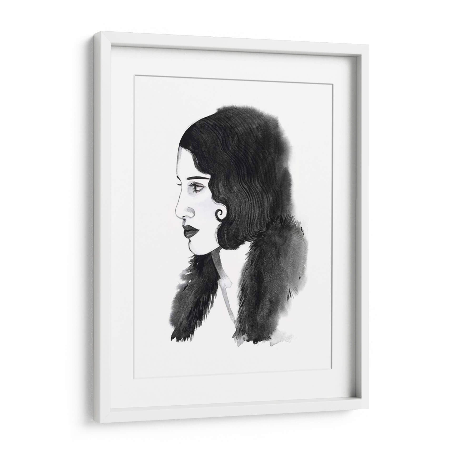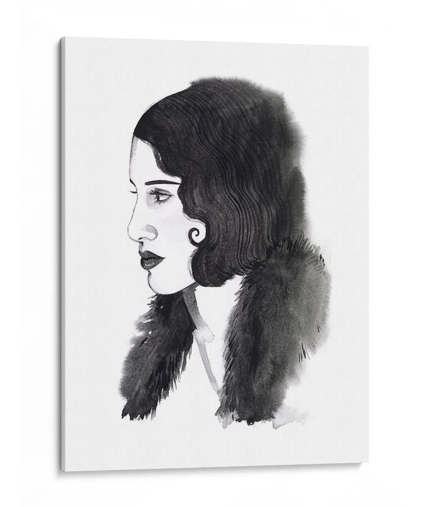 Sumérgete en la elegancia atemporal con "Gatsby Girl II", una cautivadora obra de arte de Grace Popp que evoca el glamour de la era del jazz. Este cuadro decorativo presenta el perfil de una mujer enigmática, con una melena ondulada característica de los años 20 y un collar de piel suntuoso que añade un toque de sofisticación. La paleta de colores monocromática, dominada por intensos tonos de negro y contrastes sutiles de grises sobre un fondo blanco inmaculado, crea una atmósfera de misterio y distinción. La técnica de acuarela y tinta, con pinceladas fluidas y expresivas, aporta una textura dinámica y un aire artístico refinado. La composición se centra en la mirada pensativa de la figura, invitando a la reflexión y a la imaginación. "Gatsby Girl II" es la pieza perfecta para añadir un acento de carácter y estilo vintage a cualquier espacio, ya sea una sala de estar moderna, un elegante dormitorio o un despacho profesional. Transforma tu hogar en una galería personal con este retrato evocador que celebra la belleza clásica y el espíritu de una época dorada.