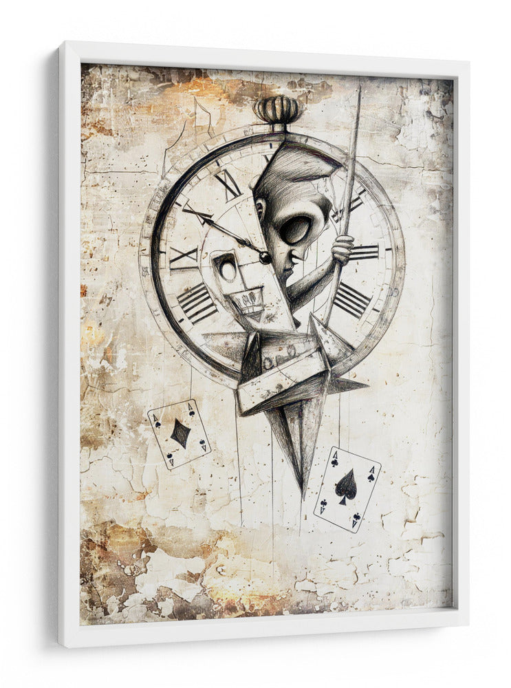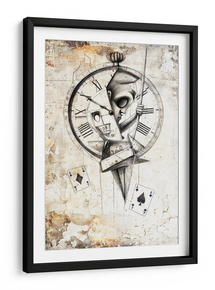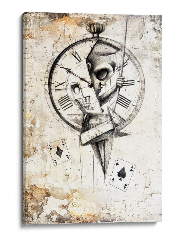 Sumérgete en el enigmático mundo de "Ilustración de dibujo de calavera divertida 10", una obra maestra de Rafal Kulik que desafía las convenciones. Este cuadro decorativo presenta una fascinante fusión de elementos surrealistas y góticos, centrado en una calavera estilizada emergiendo de un reloj antiguo, con naipes flotando en un ambiente texturizado que evoca misterio y el paso inexorable del tiempo. La paleta de colores, dominada por tonos neutros y terrosos con toques de sepia, crea una atmósfera introspectiva y cautivadora, ideal para aquellos que aprecian el arte con profundidad conceptual. El detallado dibujo a lápiz y las texturas de fondo envejecido añaden una dimensión táctil y visualmente rica a la pieza. Este cuadro es perfecto para añadir un toque de intriga y sofisticación a tu sala de estar, estudio u oficina. Transforma tu espacio con este diseño único que invita a la reflexión sobre la vida, la muerte y el destino, asegurando un punto focal que no pasará desapercibido y generará conversación. Una adición audaz y artística que resuena con la individualidad y el gusto por lo inusual.