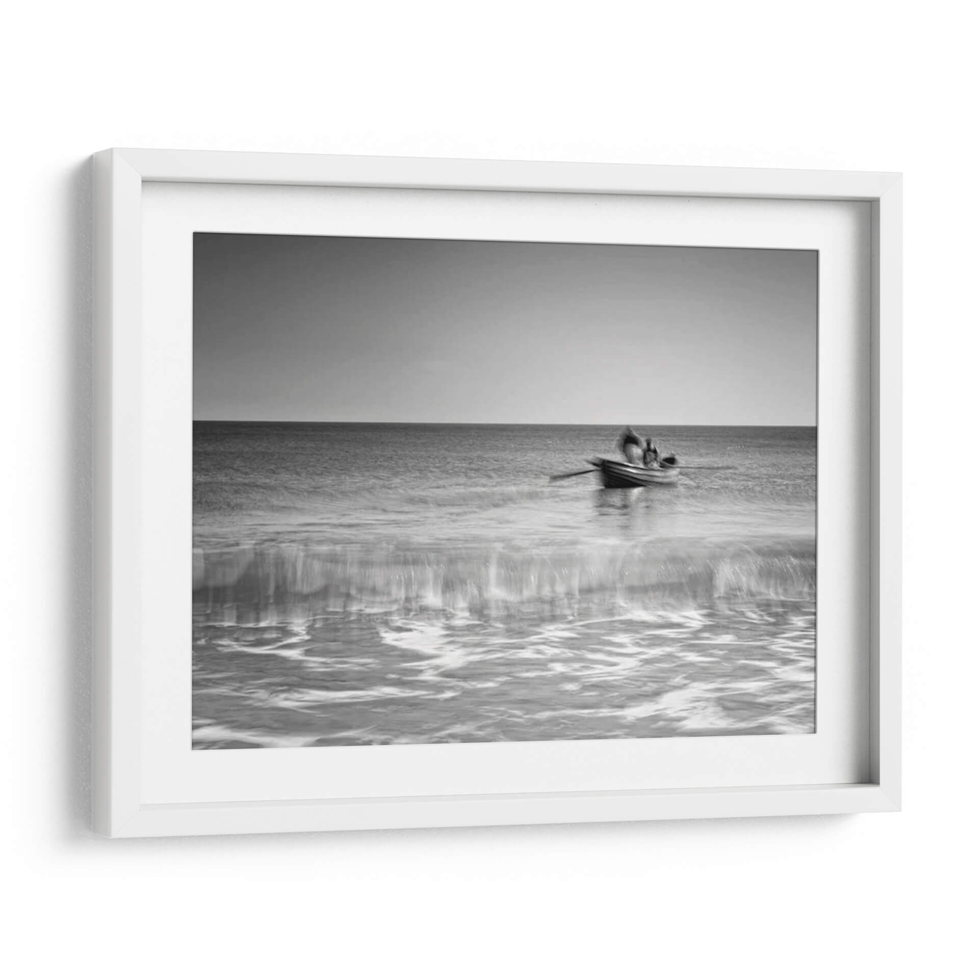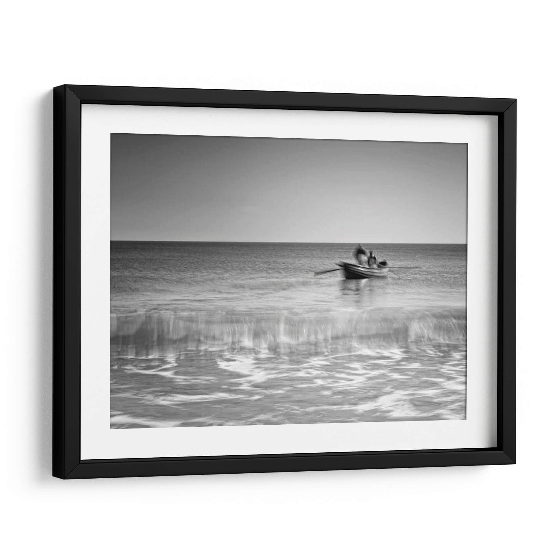 Capte la serenidad y la belleza atemporal del mar con "Los Pescadores" de Martin Henson. Esta obra maestra en blanco y negro captura un momento de quietud y dedicación, mostrando a dos figuras en una pequeña embarcación remando a través de aguas tranquilas. La composición, con el horizonte nítido dividiendo el cielo sereno y el océano vasto, crea una sensación de paz y contemplación. Las texturas fluidas del agua, tratadas con un enfoque que evoca el impresionismo, añaden profundidad y movimiento a la escena. "Los Pescadores" es más que una simple imagen; es una invitación a reflexionar sobre la conexión humana con la naturaleza y la perseverancia. Su paleta monocromática la convierte en una adición versátil para cualquier espacio, aportando un toque de sofisticación y calma. Ideal para salas de estar, dormitorios o estudios, este cuadro decorativo de Martin Henson transformará su entorno, ofreciendo un escape visual y un recordatorio de la belleza encontrada en los momentos sencillos de la vida. Incorpore la tranquilidad del océano en su hogar con esta pieza excepcional.