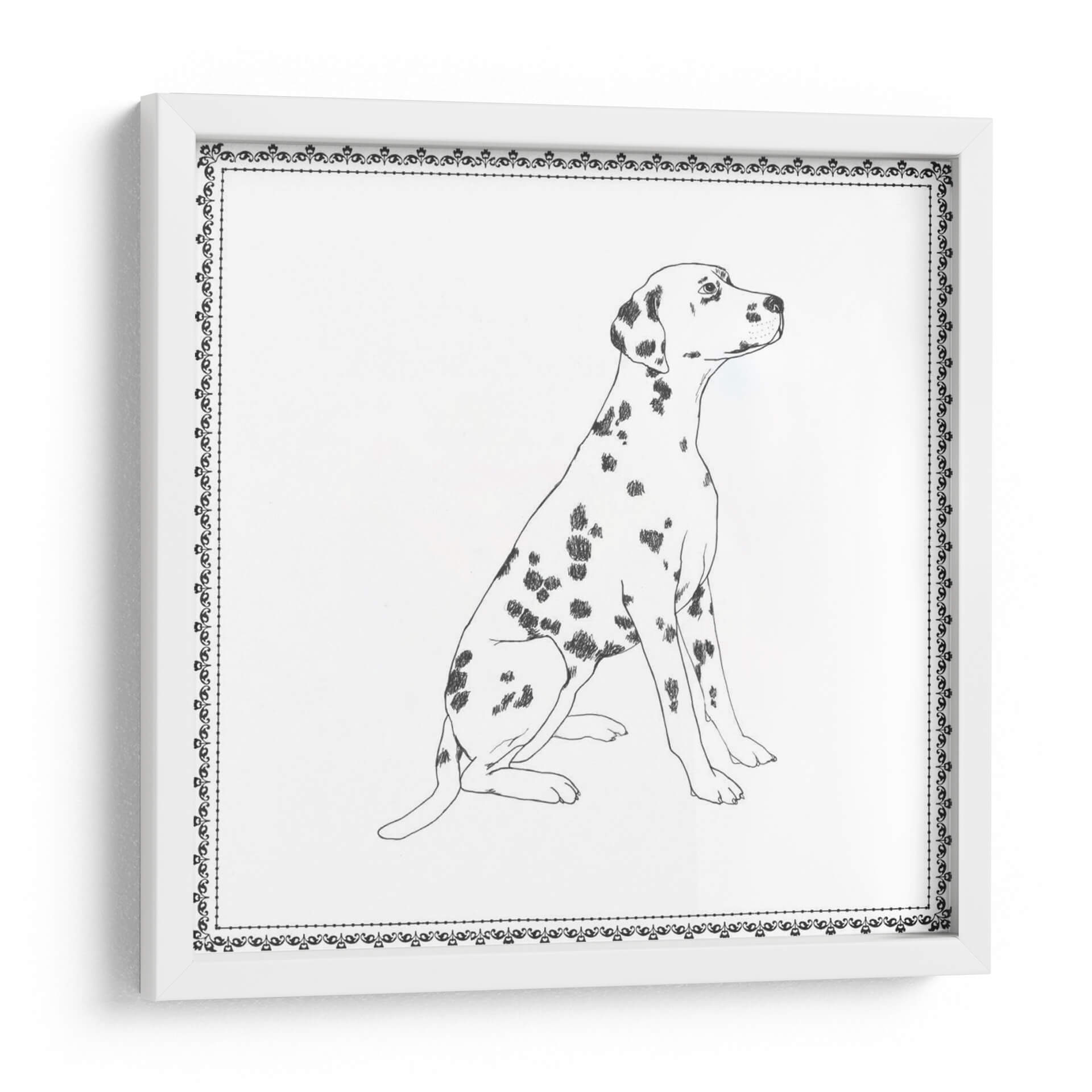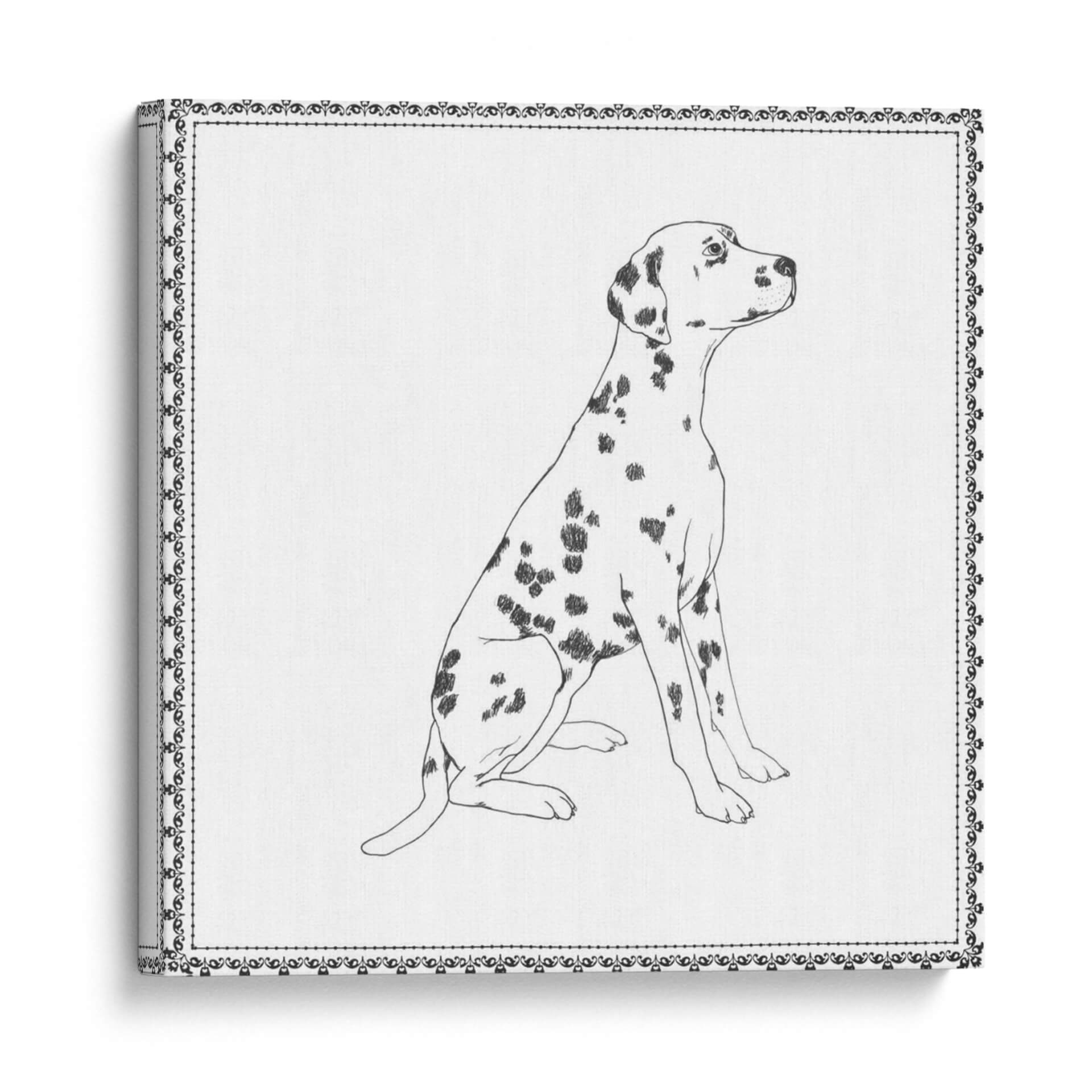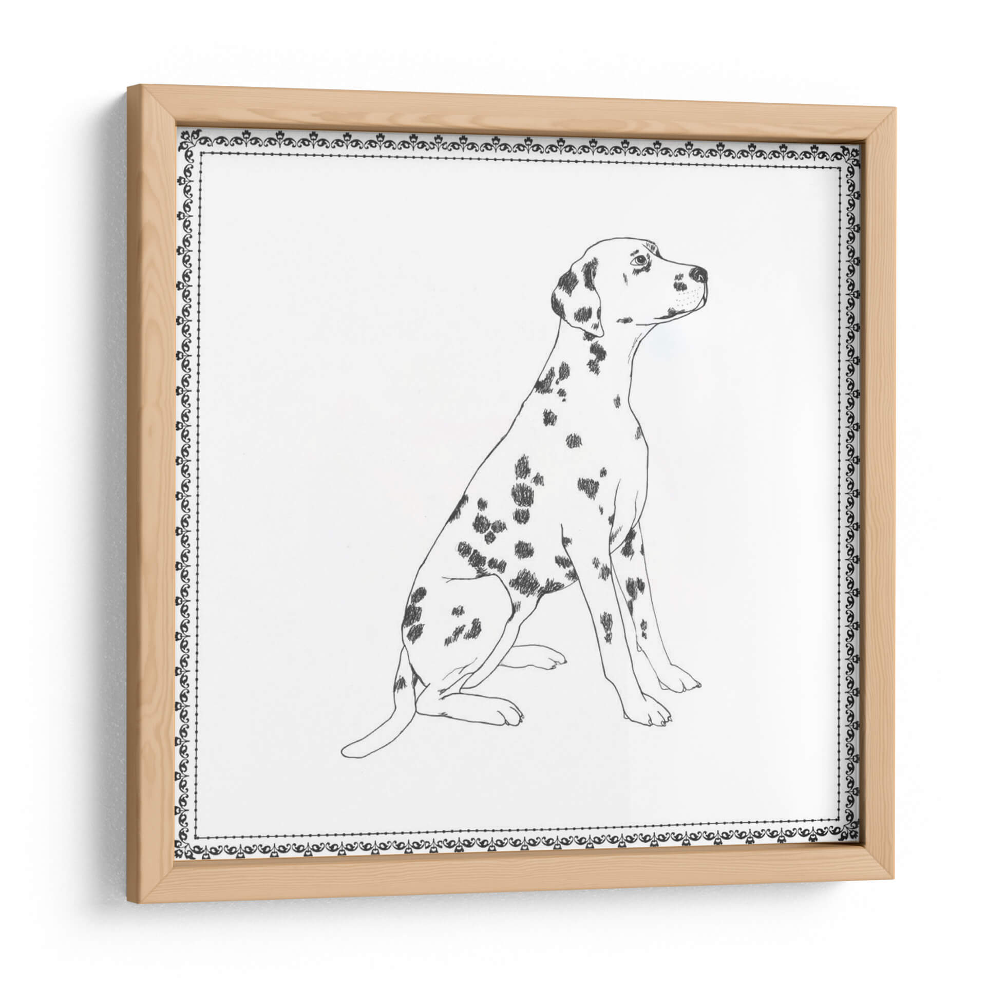 Captura la esencia de la elegancia canina con este cautivador cuadro decorativo de un Dálmata, titulado "Mejor En Show V" por Megan Meagher. La obra presenta una delicada ilustración a trazo fino de un Dálmata sentado, con su característica piel moteada representada con trazos sueltos y expresivos. El diseño se enmarca sutilmente con un borde ornamental, aportando un toque clásico y refinado. La paleta de colores, predominantemente en blanco y negro con el fondo neutro, confiere a la pieza una versatilidad excepcional, permitiendo que se integre armoniosamente en una amplia gama de estilos decorativos, desde el minimalista hasta el más ecléctico. Esta obra transmite una sensación de calma, lealtad y sofisticación, siendo perfecta para añadir un punto focal encantador a tu sala de estar, un toque de personalidad a tu oficina o una dosis de serenidad a tu dormitorio. Su estilo artístico, que evoca las ilustraciones clásicas pero con un aire contemporáneo, lo convierte en una pieza única que seguramente será un tema de conversación. Ideal para amantes de los animales y para quienes buscan un arte decorativo que combine ternura y estilo.