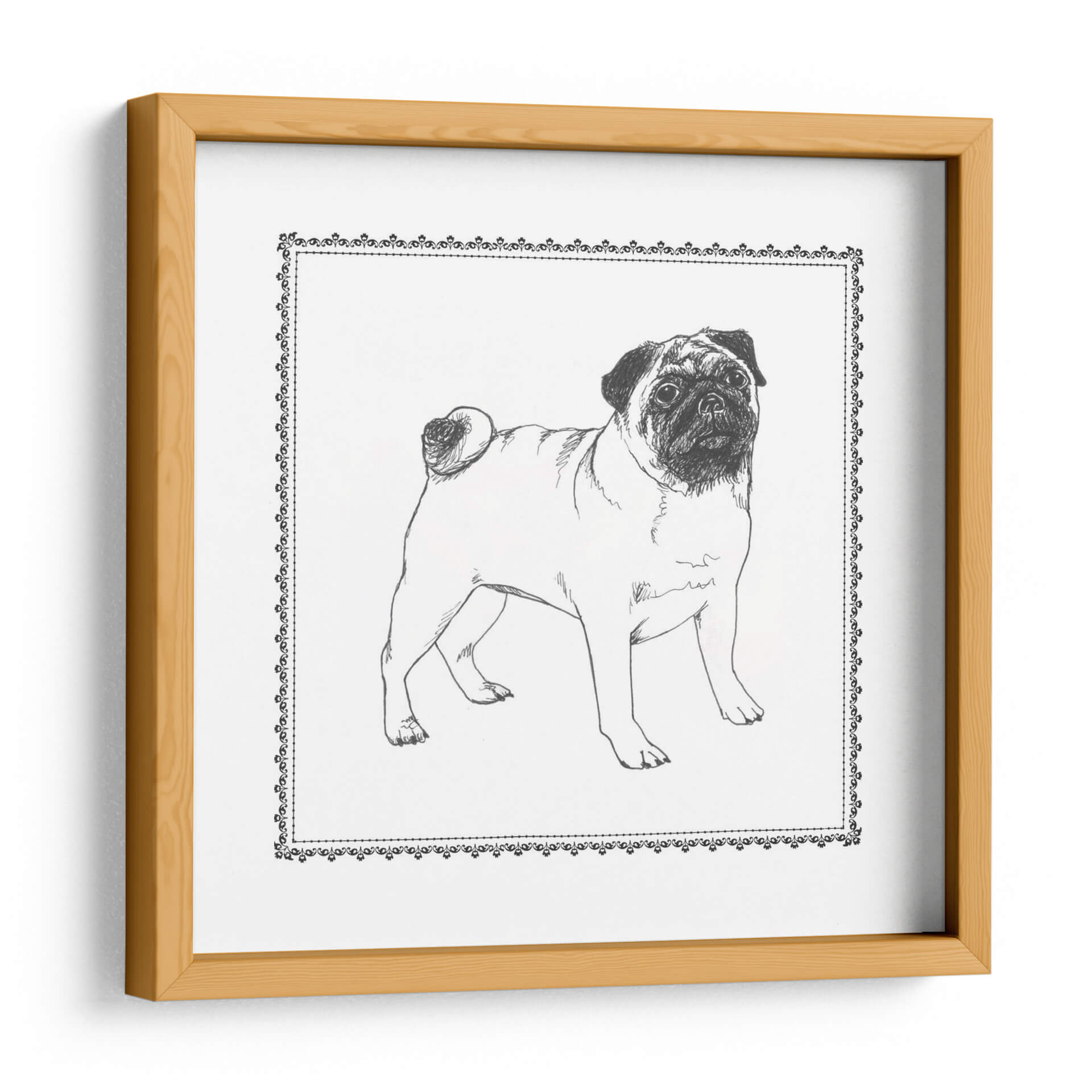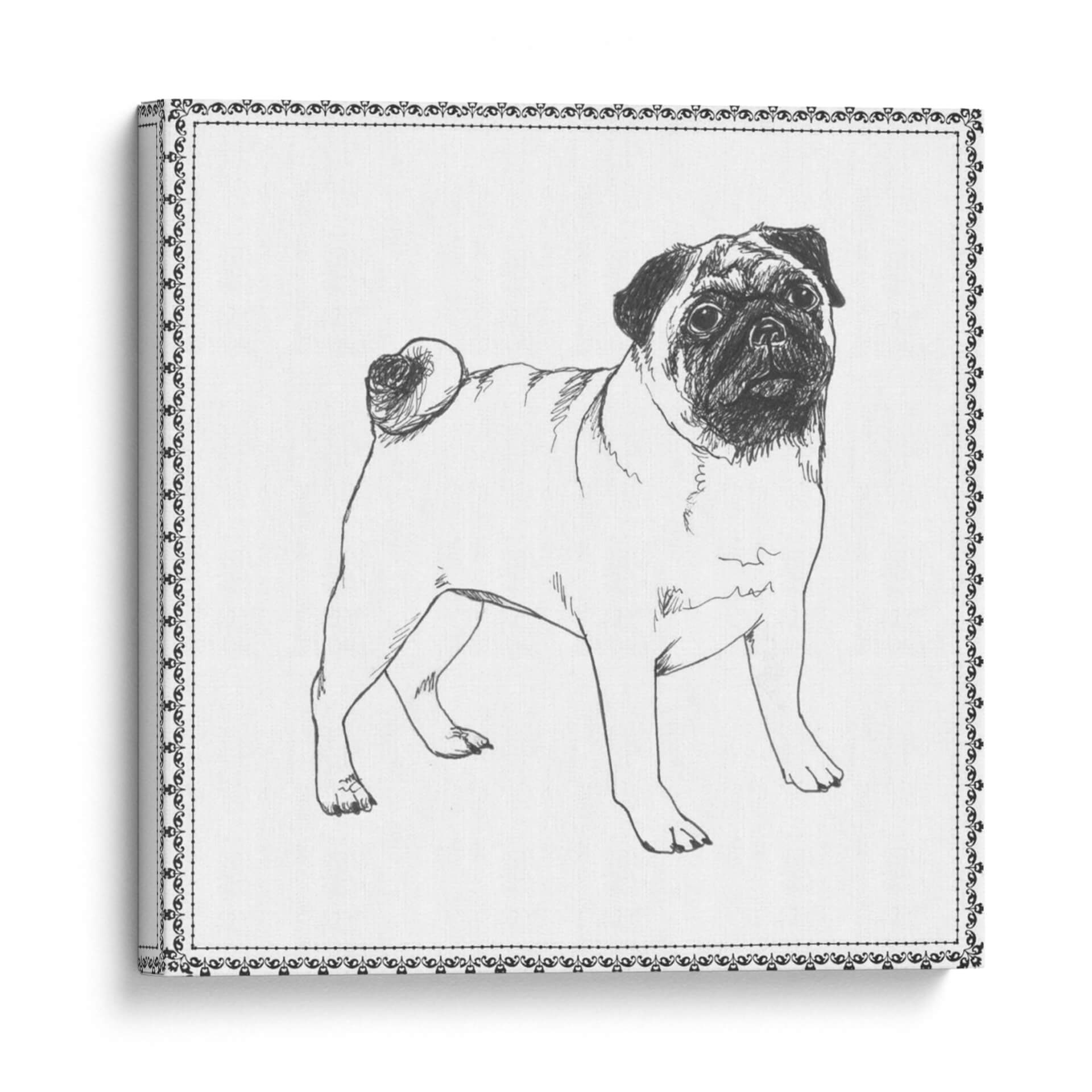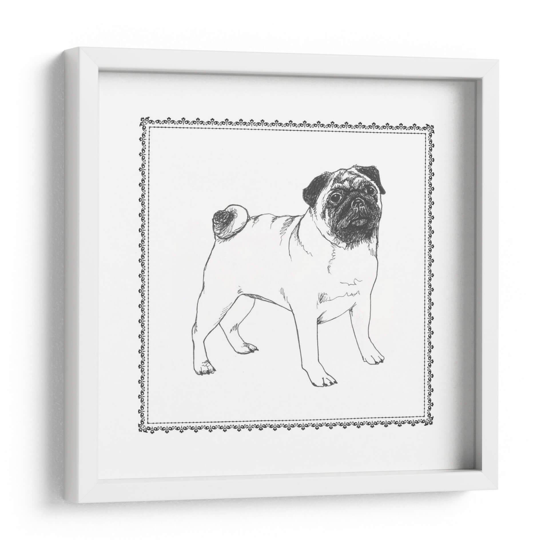 Inmortaliza la lealtad y el encanto de tu compañero canino con "Mejor En Show Vii", una cautivadora obra de arte digital de Megan Meagher. Este exquisito cuadro decorativo presenta un detallado boceto a trazo libre de un pug, capturando su distintiva expresión y su peculiar encanto de manera magistral. La paleta de colores monocromática, con sus profundos negros y blancos puros, otorga a esta pieza una atemporalidad y una versatilidad que la hacen ideal para cualquier espacio. El intrincado borde ornamental que enmarca la imagen añade un toque de elegancia clásica, contrastando sutilmente con la simplicidad del sujeto. Esta obra es perfecta para los amantes de los perros, especialmente para aquellos que aprecian la raza pug y buscan una pieza decorativa que transmita calidez y personalidad. "Mejor En Show Vii" es más que un simple cuadro; es una celebración del espíritu juguetón y afectuoso de los perros, que aportará un punto focal lleno de carácter a tu salón, dormitorio u oficina. Su estilo de dibujo a lápiz evoca una sensación de arte clásico y artesanía, haciendo de esta pieza una adición sofisticada a cualquier decoración de interiores, ya sea moderna, rústica o tradicional. Encuentra la pieza perfecta para expresar tu amor por las mascotas.