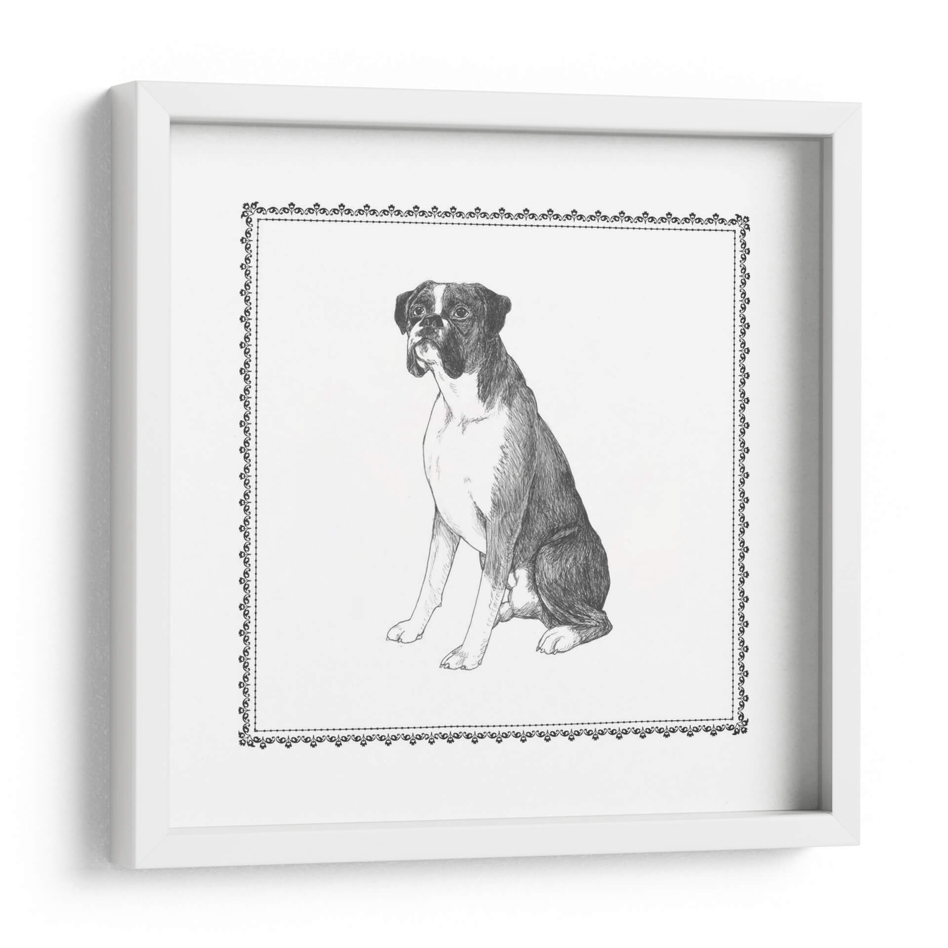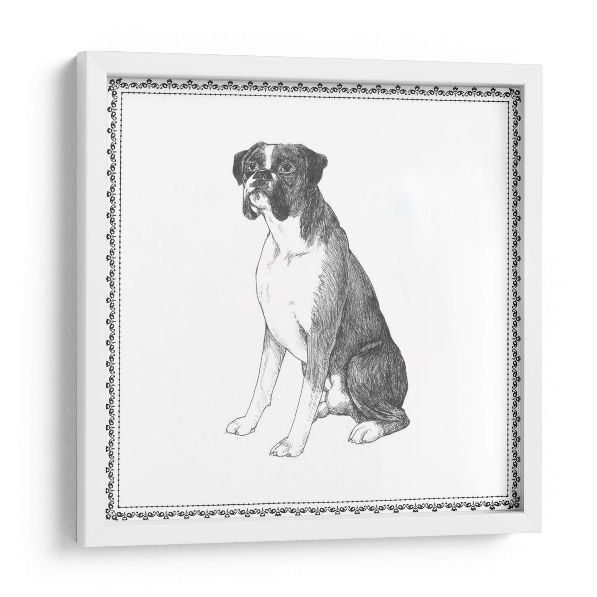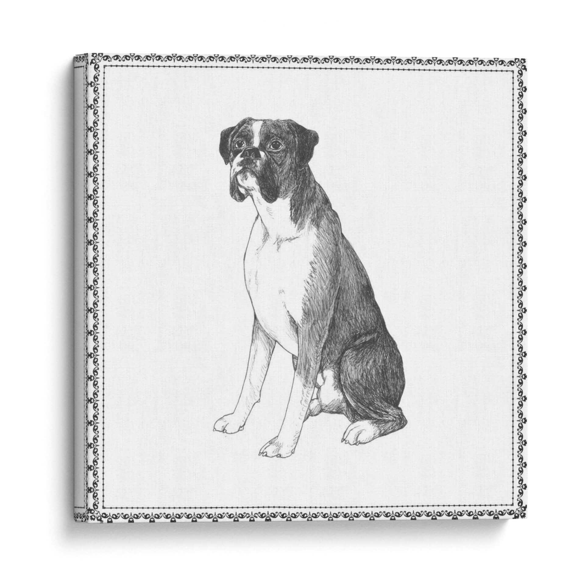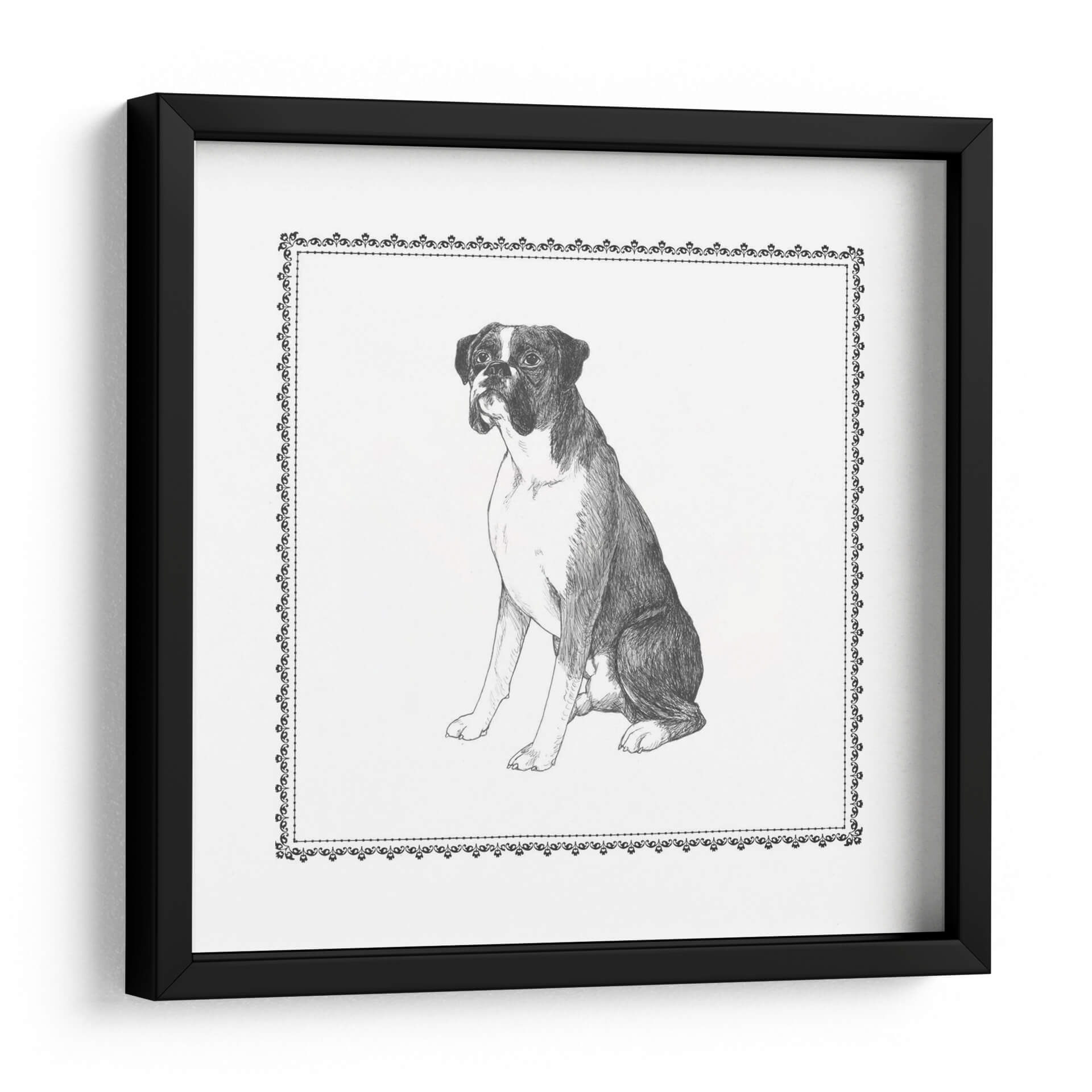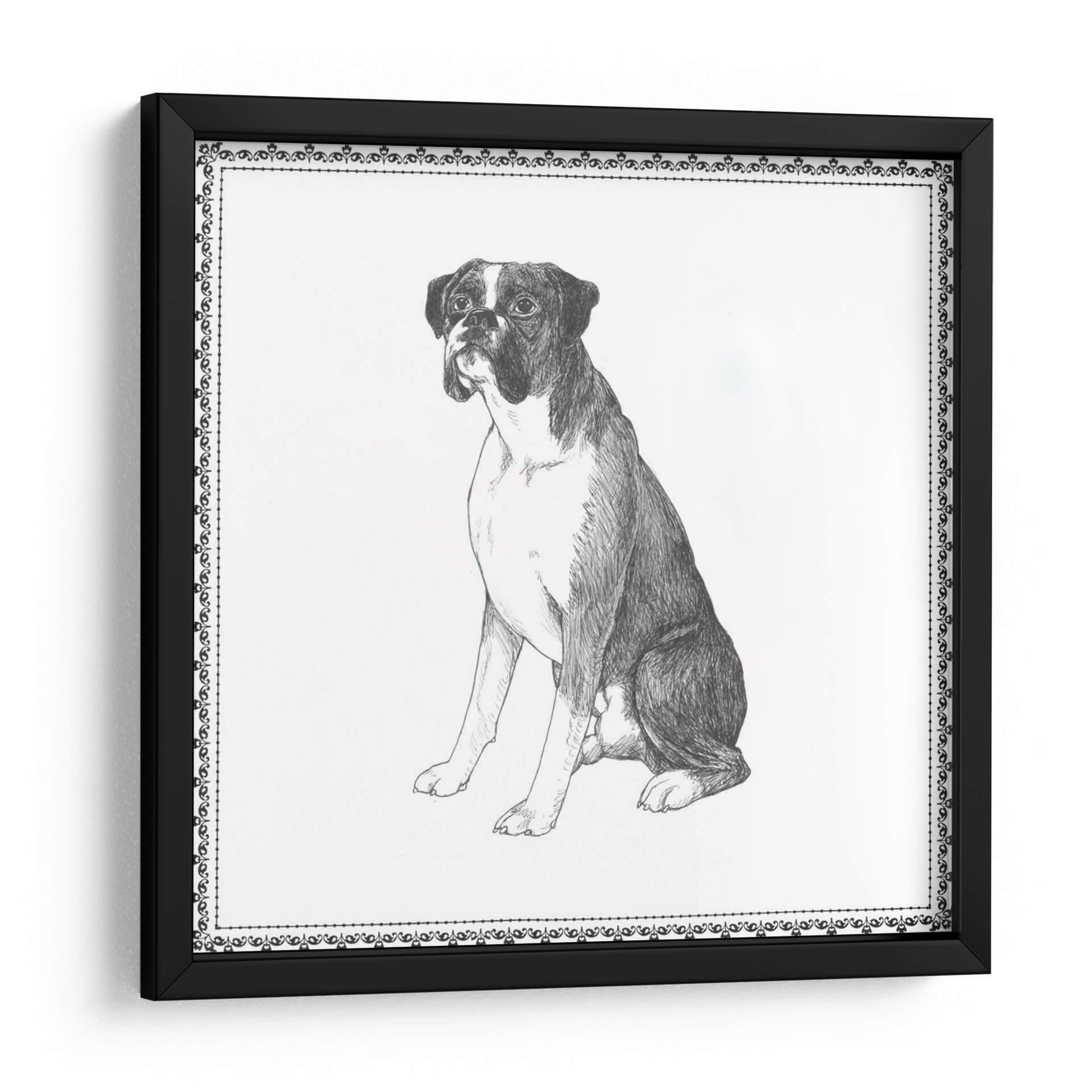 Capta la nobleza y el encanto de tu compañero canino con esta exquisita obra de arte del artista Megan Meagher, titulada 'Mejor En Show Xi'. Este cuadro decorativo, realizado con una técnica de boceto detallada en blanco y negro, inmortaliza la majestuosa presencia de un perro Boxer sentado. La obra se distingue por su cuidada representación de la musculatura, la expresión atenta y la lealtad implícita en su mirada. El estilo realista del dibujo, enmarcado por un delicado borde ornamental clásico, añade un toque de sofisticación atemporal a cualquier espacio. El contraste entre el fondo neutro y las detalladas sombras del pelaje crea una profundidad visual que atrae la atención. Ideal para amantes de los perros, este retrato es perfecto para añadir carácter y calidez a salones, estudios u oficinas. Transmite una sensación de compañía fiel y elegancia discreta, convirtiéndose en un punto focal conmovedor y lleno de personalidad. Una pieza que celebra la conexión especial entre humanos y animales, aportando un aire de distinción y afecto a tu decoración.