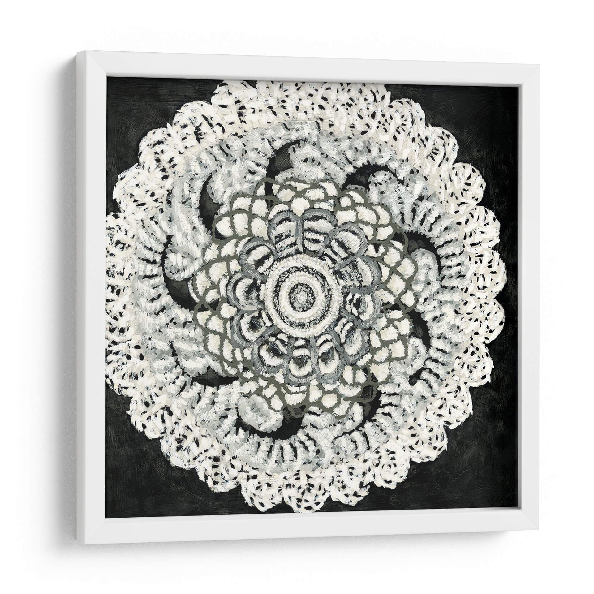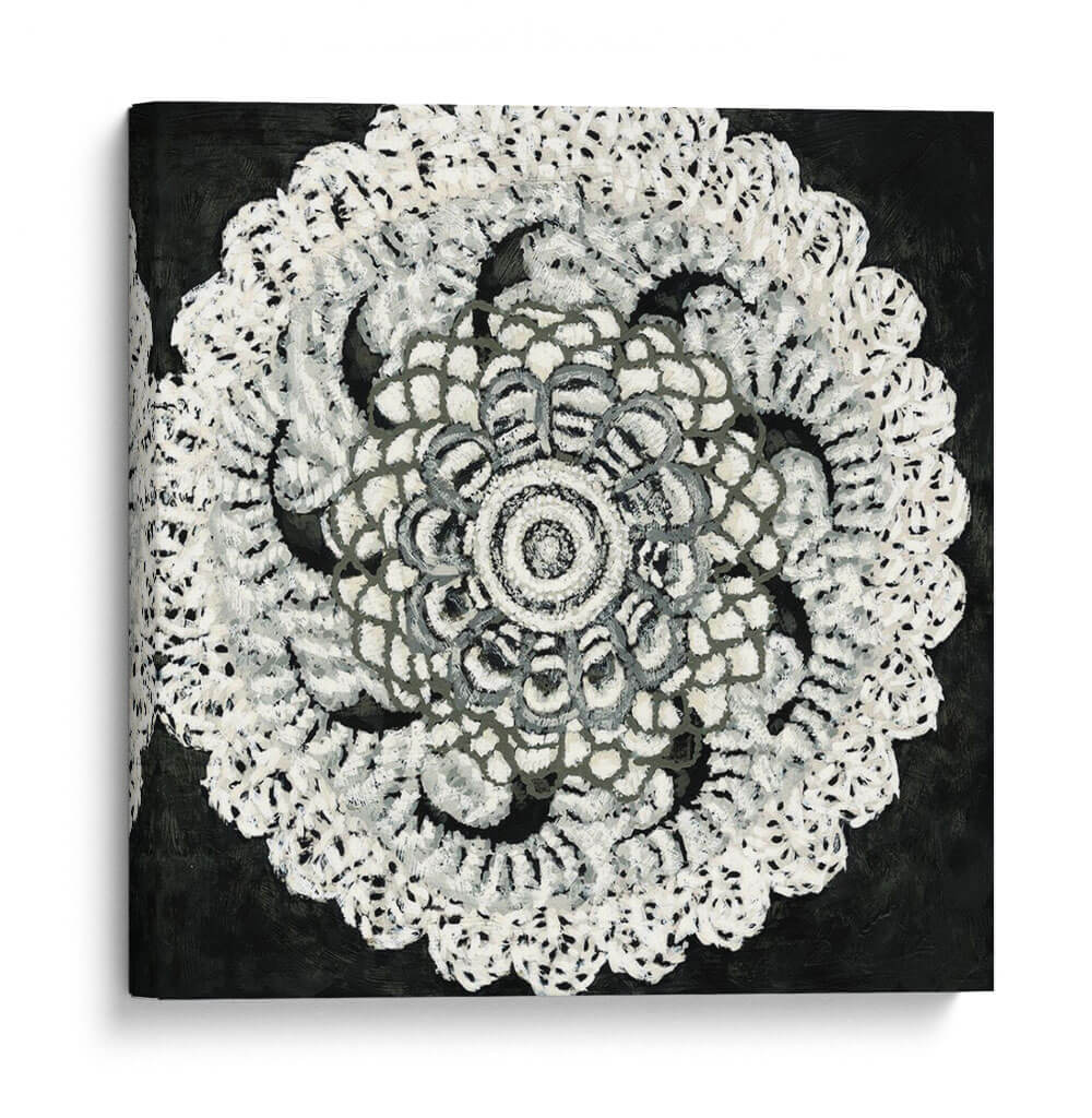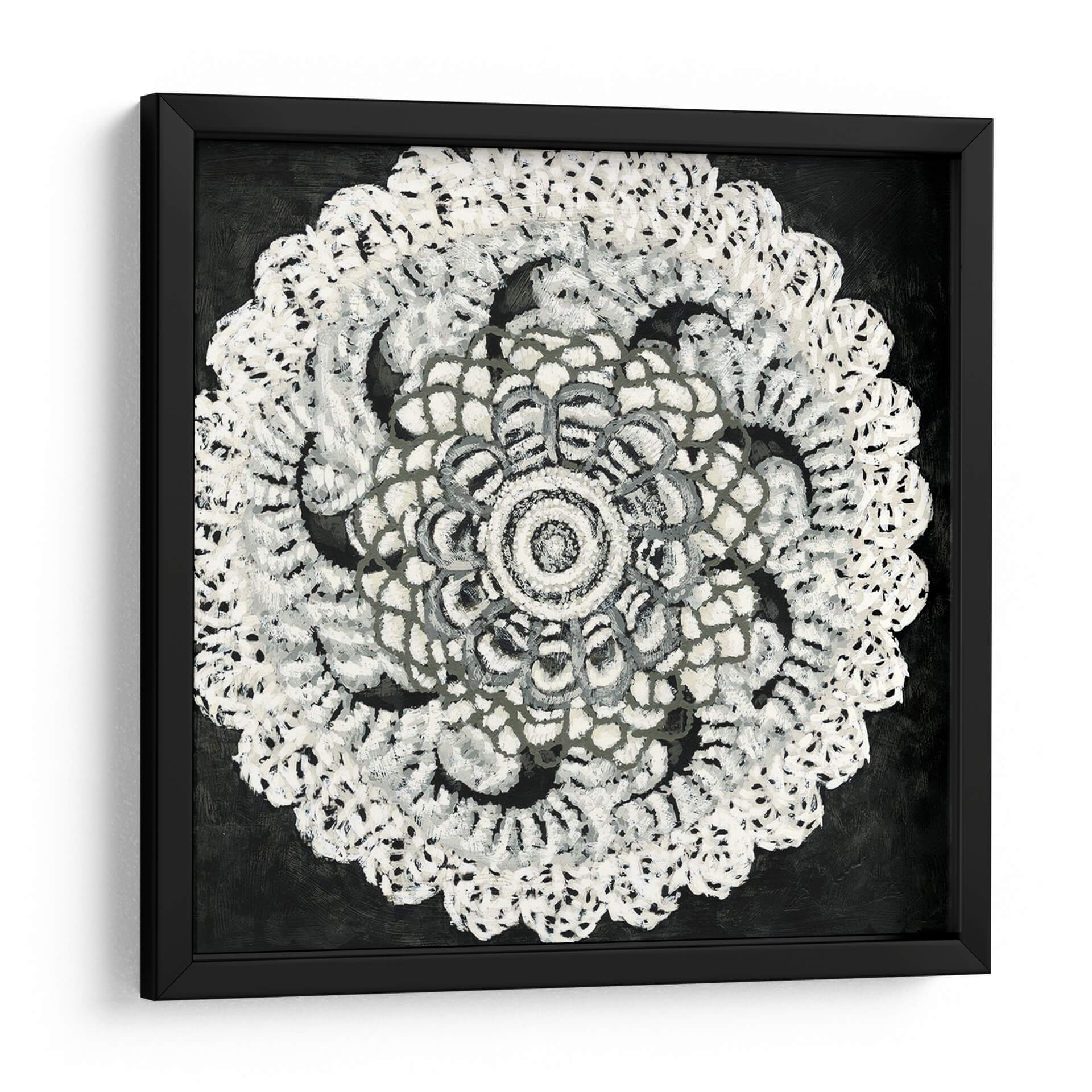 Emb acate en un viaje visual con la obra "Mini Rosette Abstracta I" de Chariklia Zarris, un cuadro decorativo que cautiva con su intrincada y simétrica composición. La pieza presenta un dise uevo floral o de mandala, meticulosamente detallado con texturas ricas que sugieren delicadeza y profundidad. El contraste entre el fondo negro intenso y los motivos en blanco y grises crea un efecto dram uevo y moderno, haciendo que la forma central resalte con elegancia. La paleta de colores limitada aporta un aire de sofisticaci 6n y minimalismo, permitiendo que la forma y la textura sean las protagonistas. Esta obra abstracta es perfecta para aadir un toque de interEs y car Cter a cualquier espacio, desde una sala de estar contemporneA hasta un estudio o dormitorio tranquilo. Su diseO intrincado invita a la contemplaci fA prolongada, ofreciendo una sensaci fA de calma y orden a travEs de sus patrones repetitivos y su armonDa visual. La "Mini Rosette Abstracta I" no es solo una pieza decorativa, sino una experiencia artIstica que aporta elegancia y un punto focal Unique a su entorno.
