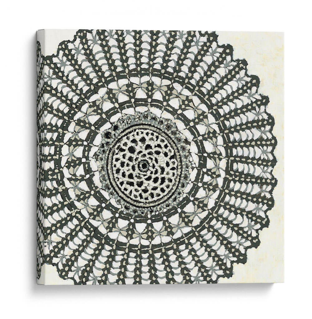 Sumérgete en la intrincada belleza del cuadro decorativo "Mini Rosette Abstracta II" de Chariklia Zarris. Esta obra de arte contemporánea presenta un diseño circular abstracto inspirado en la delicadeza de una roseta, ejecutado con una paleta de colores monocromática en tonos de negro, gris y blanco roto sobre un fondo neutro. La composición detallada, con sus patrones repetitivos y simetría radial, evoca una sensación de orden y complejidad fascinante. Cada elemento visual se entrelaza para crear una textura rica y una profundidad cautivadora, invitando a la contemplación. Ideal para añadir un toque de elegancia y sofisticación a cualquier espacio, desde un salón moderno hasta un dormitorio sereno u oficina profesional. Este cuadro decorativo abstracto es perfecto para quienes buscan una pieza que combine la artesanía detallada con una estética contemporánea, aportando un punto focal visual que equilibra la calma y el interés. La obra de Zarris ofrece una interpretación moderna de motivos clásicos, transformando un diseño aparentemente sencillo en una pieza de arte impactante y versátil. Añade esta obra maestra a tu colección y transforma tu hogar en una galería personal.