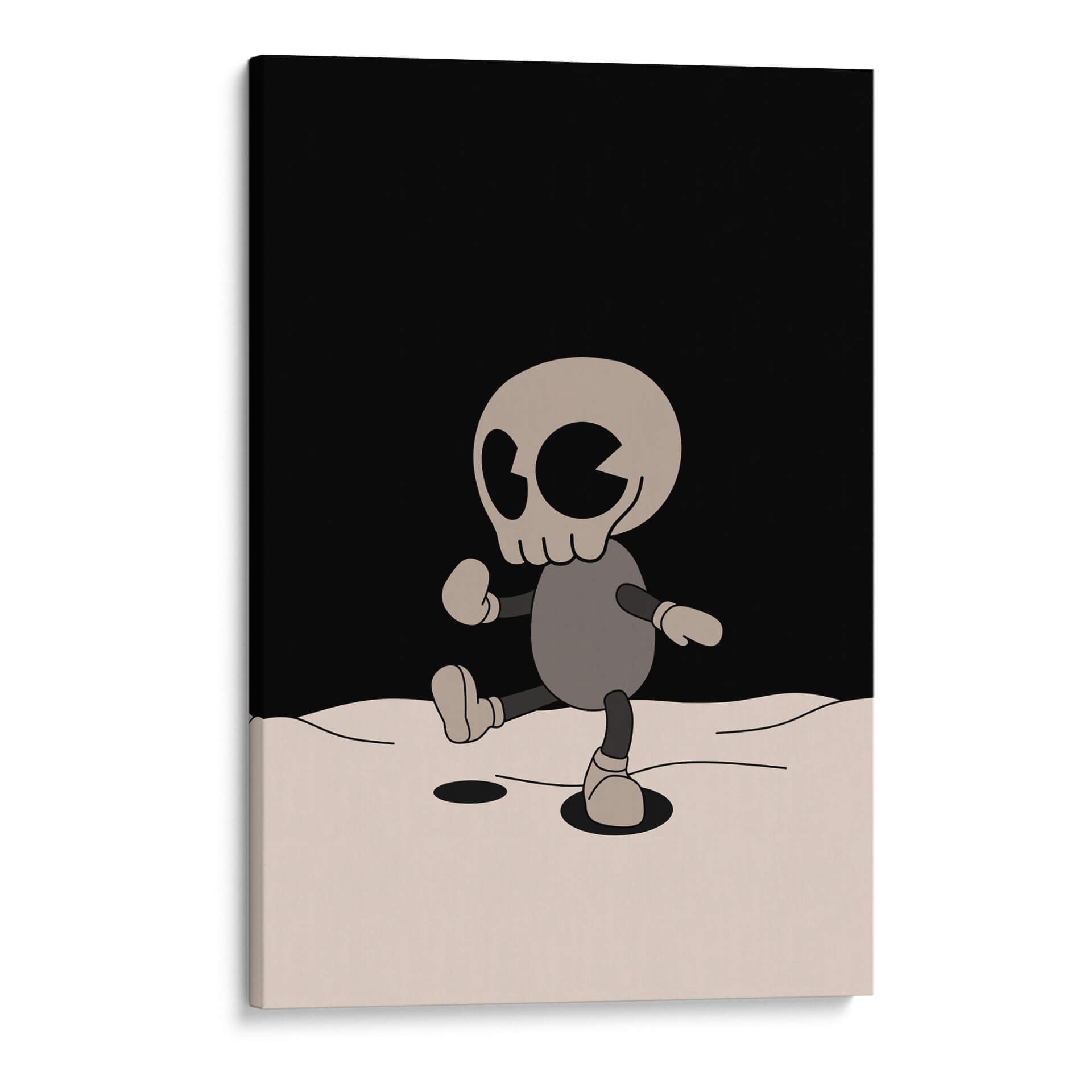 Sumérgete en el enigmático universo de "Moon Kullws 1", una obra de arte contemporáneo que desafía las convenciones y captura la imaginación. Esta pieza, creada por el artista Khevth Art, presenta una figura estilizada con forma de calavera, evocando una estética pop y a la vez inquietante. La composición se basa en un contraste marcado entre un fondo negro profundo y una figura principal en tonos grises y beige, sentando las bases para una interpretación personal y reflexiva. La simplicidad de las líneas y la paleta de colores limitada, que incluye grises, beiges y negro, otorgan a esta obra una versatilidad sorprendente, permitiendo que se integre armoniosamente en diversos estilos decorativos, desde el moderno y minimalista hasta el ecléctico y vanguardista. "Moon Kullws 1" es más que un simple cuadro decorativo; es una declaración visual que invita a la contemplación sobre la dualidad, la existencia y la cultura pop. Ideal para salones, estudios o espacios que buscan un toque de originalidad y conversación. Añade una pieza de arte única a tu colección que despierte curiosidad y admiración.