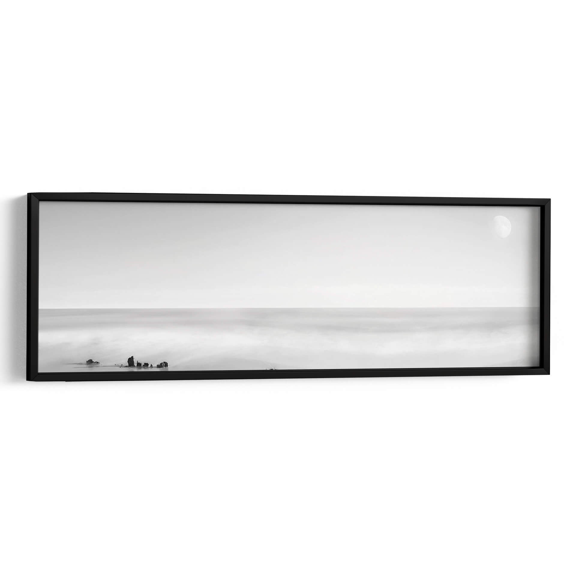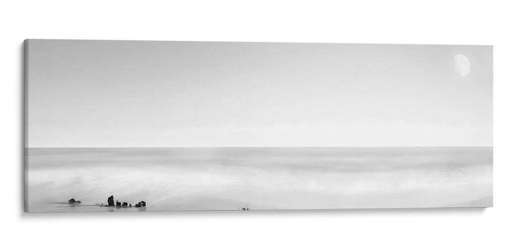 Sumérgete en la serenidad y el minimalismo con "Panel De Agua En Blanco Y Negro Xiv" de James McLoughlin. Este cautivador cuadro decorativo, capturado en una paleta de grises y blancos, evoca la tranquilidad de un paisaje marino en un día sereno. La composición se centra en la inmensidad del océano, con el suave movimiento de las olas capturado a través de una técnica que difumina la realidad, creando una atmósfera onírica y contemplativa. Pequeños fragmentos de tierra o roca emergen sutilmente de las aguas, añadiendo un toque de realismo a la escena etérea. La presencia de la luna en el cielo, apenas perceptible, añade un elemento de misterio y calma nocturna. Este cuadro es ideal para aquellos que buscan infundir paz y sofisticación en su hogar u oficina, sirviendo como un punto focal de serenidad que invita a la meditación. Su estilo minimalista y monocromático lo convierte en una pieza versátil, capaz de complementar una amplia gama de estilos decorativos, desde el moderno hasta el escandinavo o el contemporáneo. Transforma cualquier espacio en un santuario de calma visual con esta obra de arte única que celebra la belleza de la naturaleza en su forma más pura y serena, aportando un toque de elegancia atemporal a tus paredes.