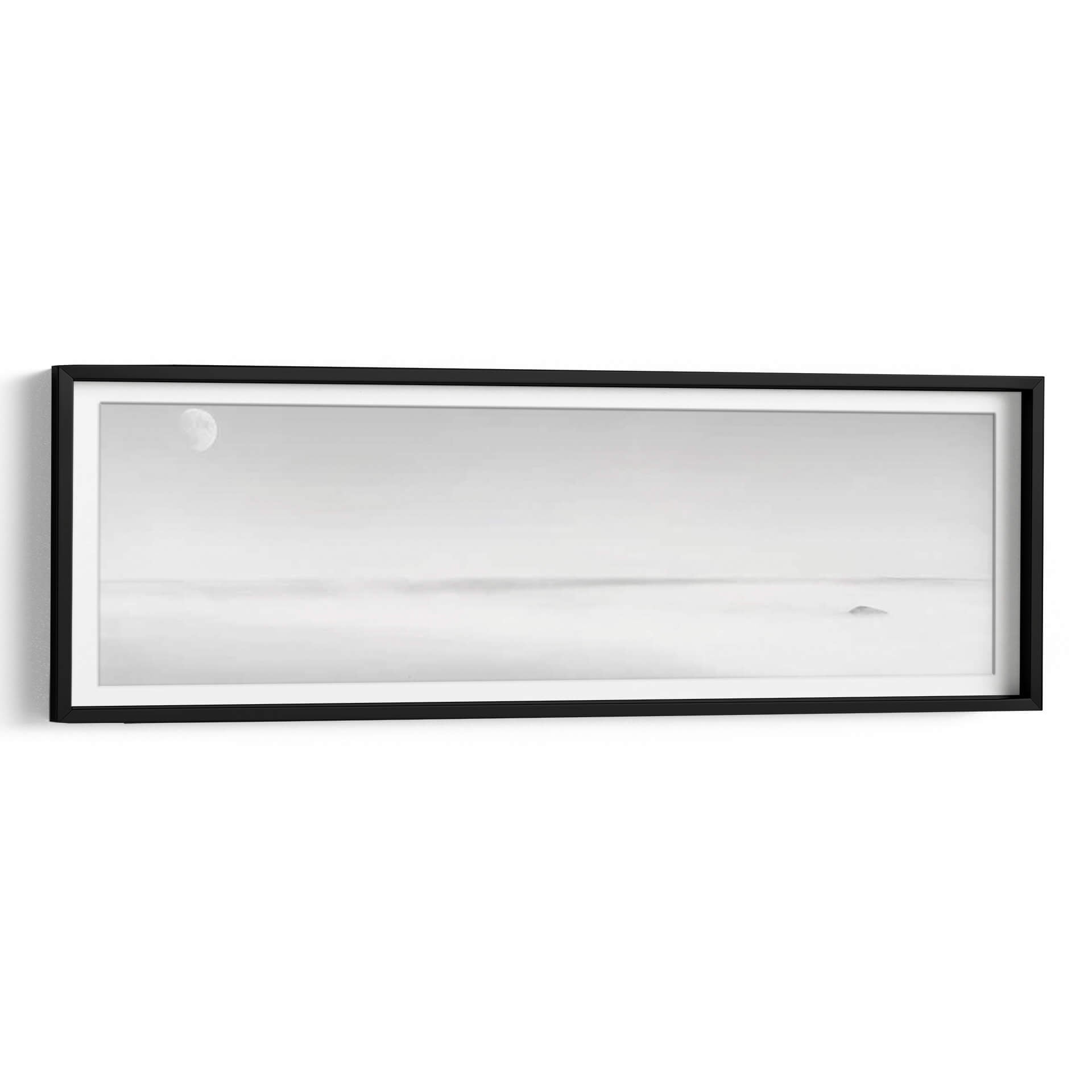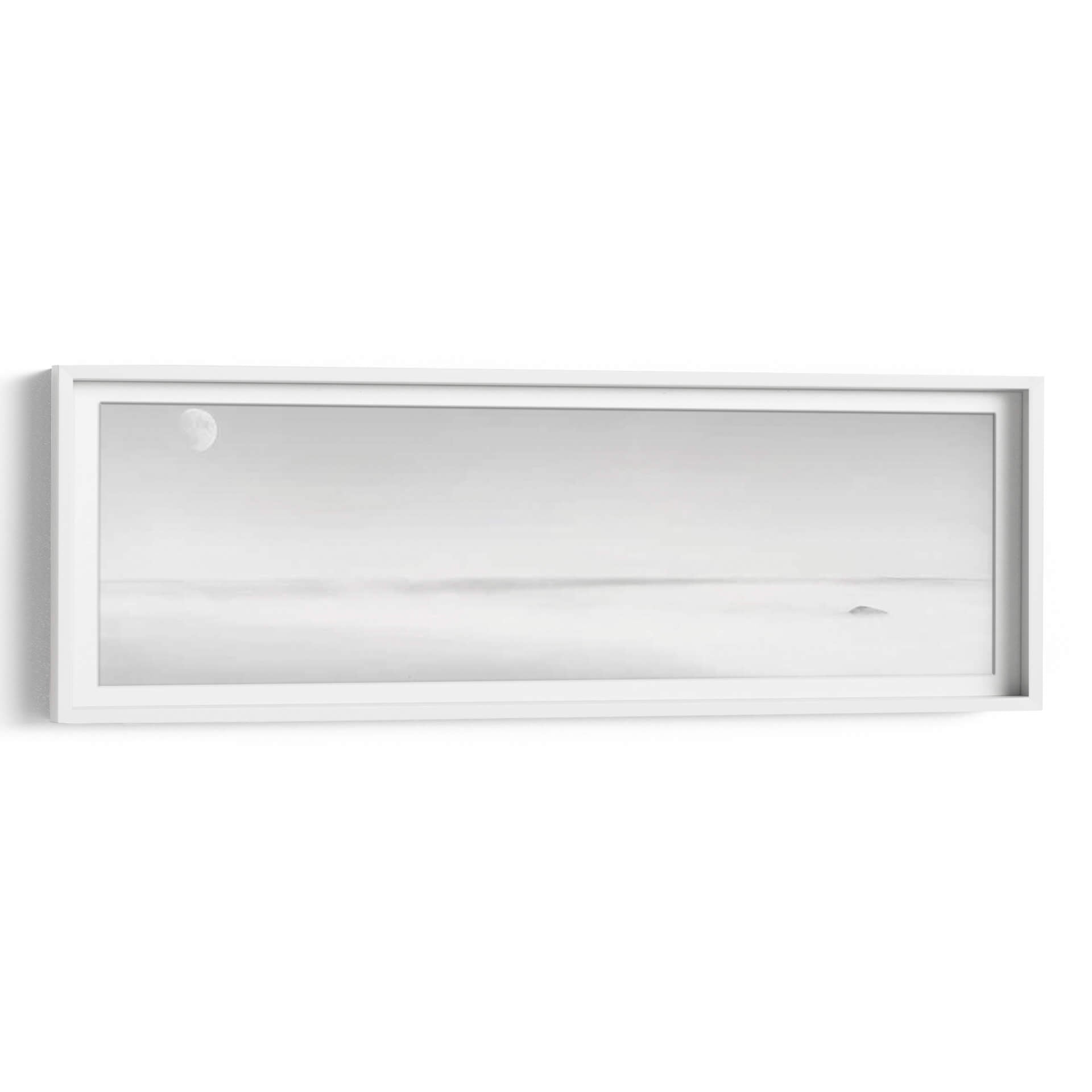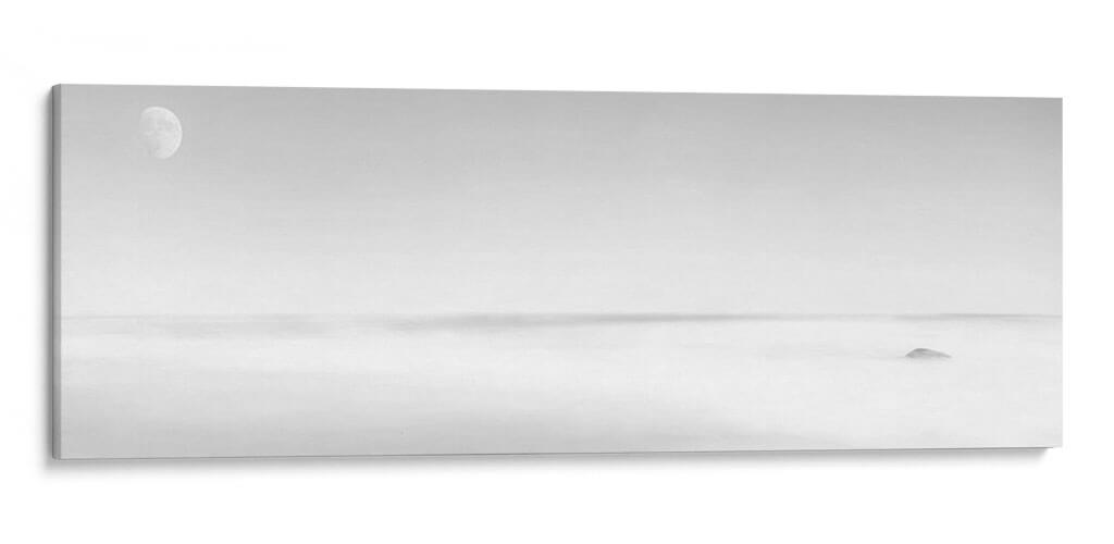 Sumérgete en la serenidad y el misterio con "Panel De Agua En Blanco Y Negro XV", una obra de arte contemporáneo que evoca la calma de un paisaje costero bajo la luz de la luna. Este cuadro decorativo, del artista James McLoughlin, presenta una composición minimalista donde la sutileza de los tonos grises y blancos captura la esencia etérea del agua y el cielo. La luna creciente, un orbe pálido suspendido en un firmamento difuminado, añade un toque celestial y enigmático a la escena. En el horizonte, una línea sutil separa el mar sereno de la vasta extensión celeste, mientras que una única roca emerge en la distancia, un punto de anclaje en medio de la inmensidad. La atmósfera general es de profunda tranquilidad y contemplación, perfecta para espacios que buscan un refugio de paz. Ideal para dormitorios, salas de estar o estudios, este cuadro minimalista en blanco y negro es una invitación a la introspección y a la apreciación de la belleza sutil. Transforma tu hogar en un oasis de calma con esta pieza evocadora y moderna, diseñada para complementar cualquier decoración interior con elegancia y sofisticación.