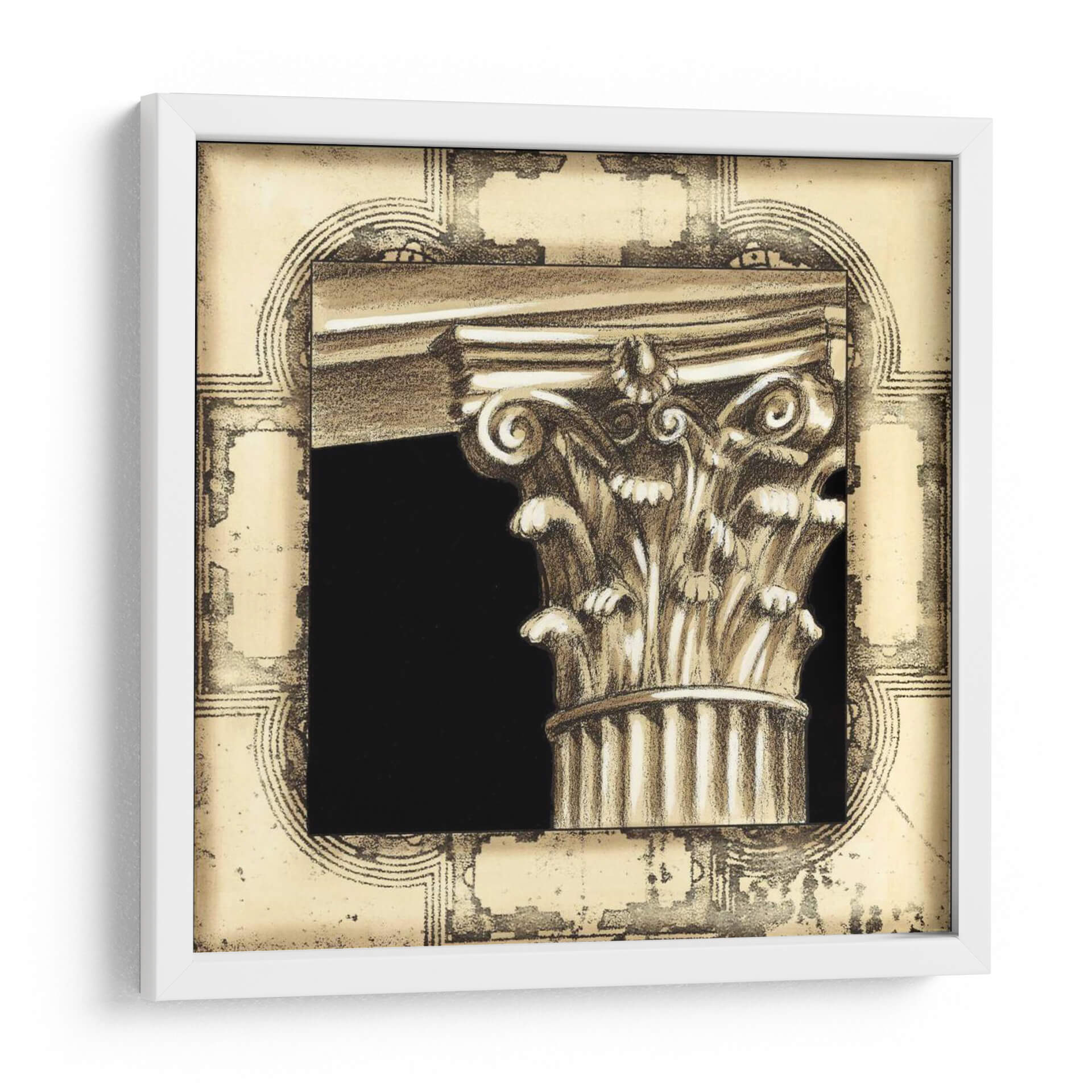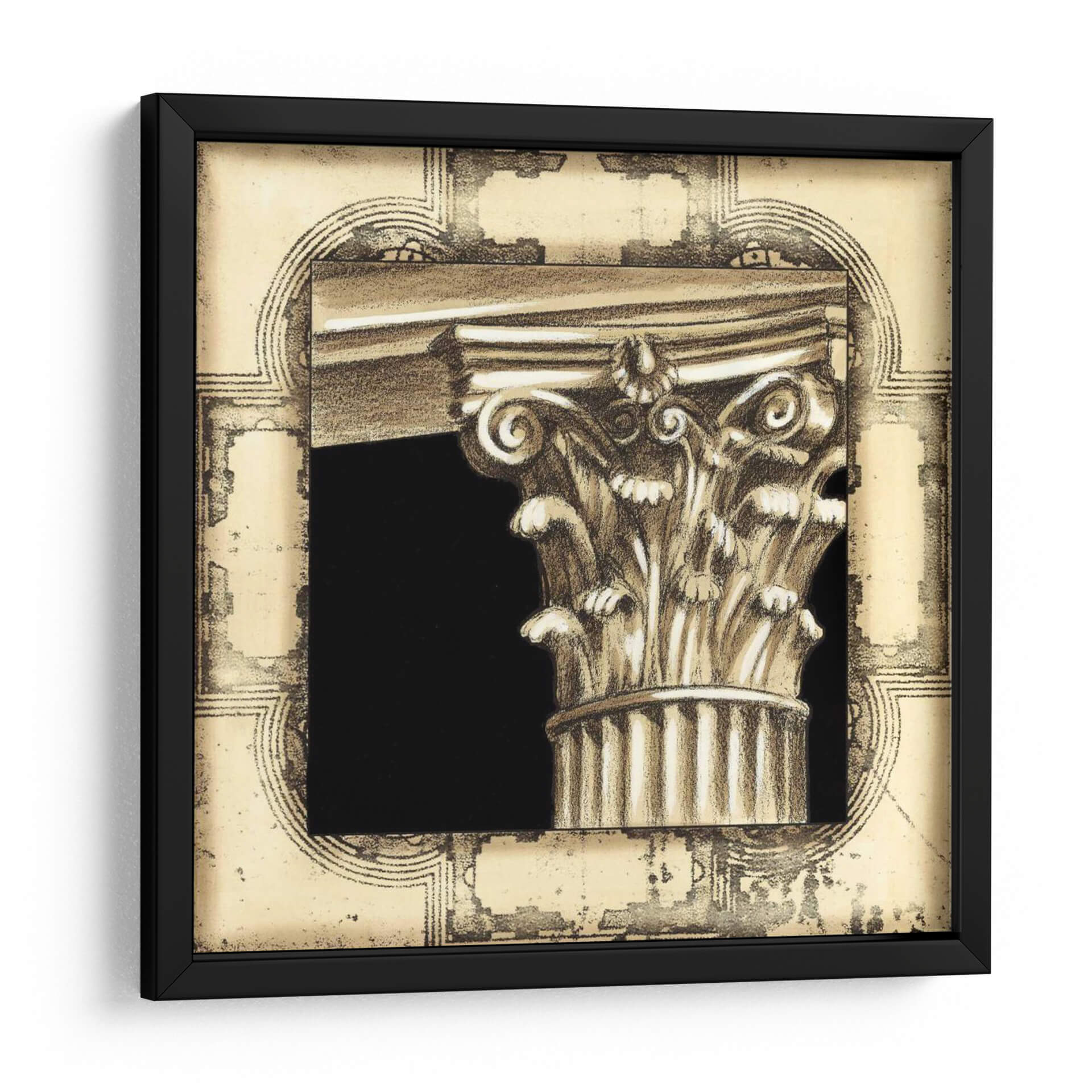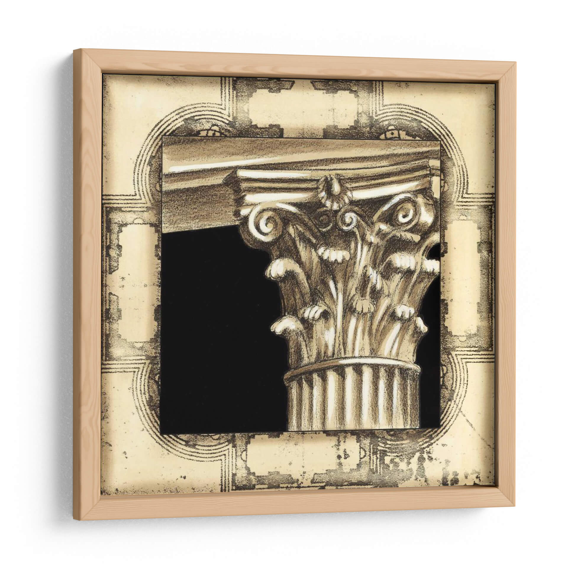 Sumérgete en la elegancia atemporal con "Pequeño Esquema Arquitectónico II" de Ethan Harper, un cuadro decorativo que evoca la grandeza de la arquitectura clásica. Esta obra de arte presenta un detallado primer plano de un capitel corintio, capturado con trazos precisos y una paleta de colores sepia y dorados que resaltan su intrincada ornamentación. El contraste entre la detallada escultura y el fondo negro profundo crea un efecto dramático y sofisticado, invitando a la contemplación y al aprecio por las formas arquitectónicas. El marco decorativo, con sus sutiles texturas y patrones geométricos en tonos tierra, añade una capa de profundidad y un aire de antigüedad, transportando al espectador a épocas pasadas de esplendor. "Pequeño Esquema Arquitectónico II" es ideal para espacios que buscan un toque de refinamiento clásico, como estudios, bibliotecas o salones de estilo tradicional o ecléctico. Su diseño evoca una sensación de estabilidad, orden y belleza perdurable, convirtiéndolo en una pieza central que enriquece cualquier ambiente con su encanto histórico y artístico. Añade una dimensión de cultura y diseño a tu hogar u oficina con esta exquisita representación de la maestría arquitectónica.