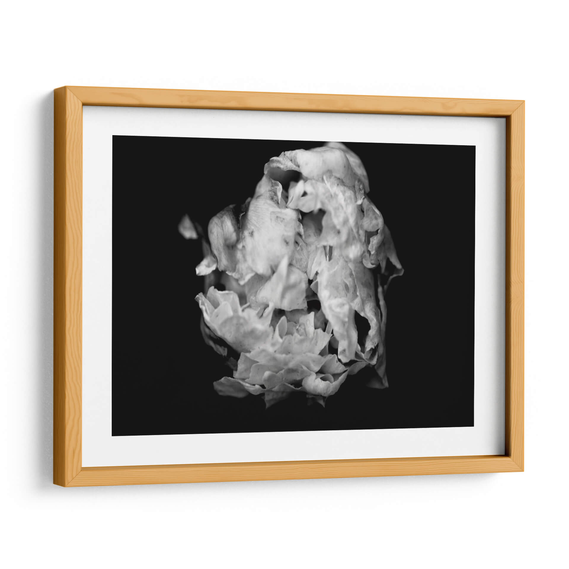 Sumérgete en la profunda belleza de "Poesía Ii", una obra de arte cautivadora del artista Tang Ling. Este cuadro decorativo en blanco y negro presenta un primer plano íntimo de una flor marchita, cuyas delicadas capas de pétalos se despliegan con una textura rica y melancólica. La composición, dominada por el contraste entre la flor y un fondo negro profundo, crea una atmósfera de introspección y serenidad. Cada detalle de los pétalos arrugados y las sombras profundas evoca una sensación de tiempo detenido, celebrando la belleza efímera de la naturaleza en su estado más vulnerable y poético. El estilo monocromático realza la forma y la textura, invitando al espectador a contemplar la fragilidad y la resiliencia. "Poesía Ii" es ideal para añadir un toque de sofisticación y profundidad emocional a cualquier espacio, desde una sala de estar tranquila hasta un estudio personal, convirtiéndose en un punto focal que inspira la reflexión y la apreciación de la belleza en todas sus formas.