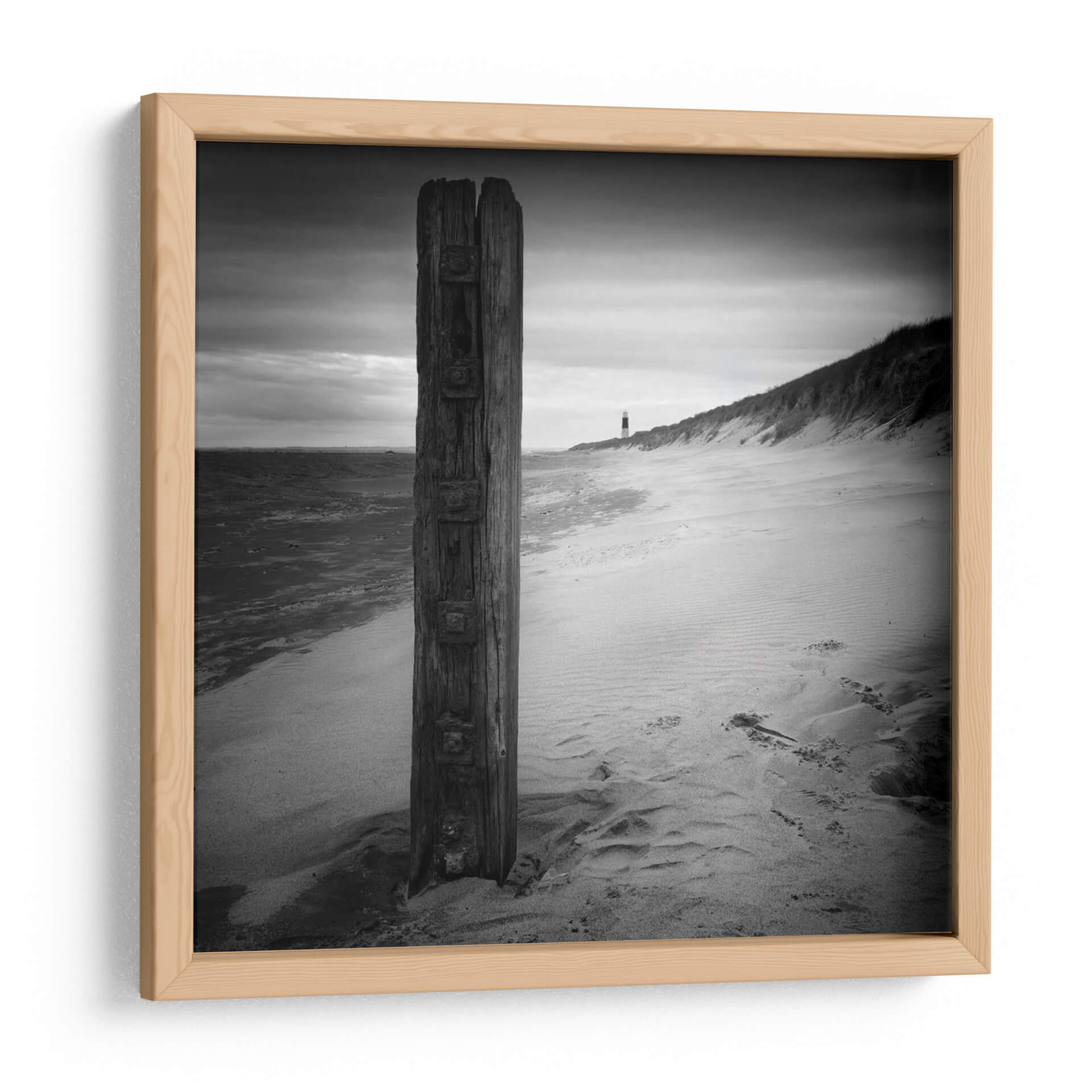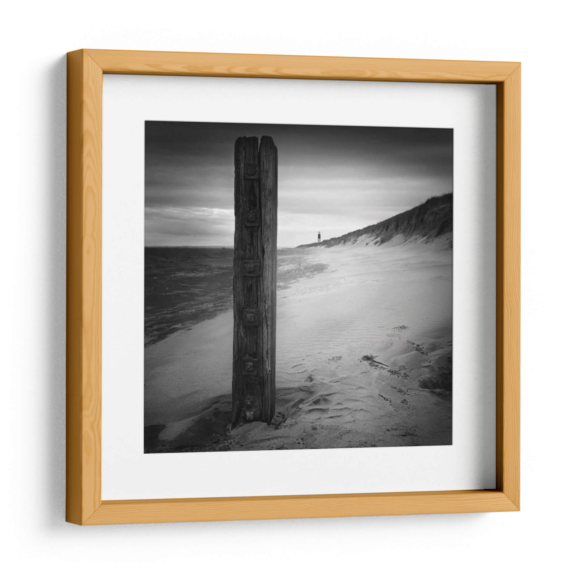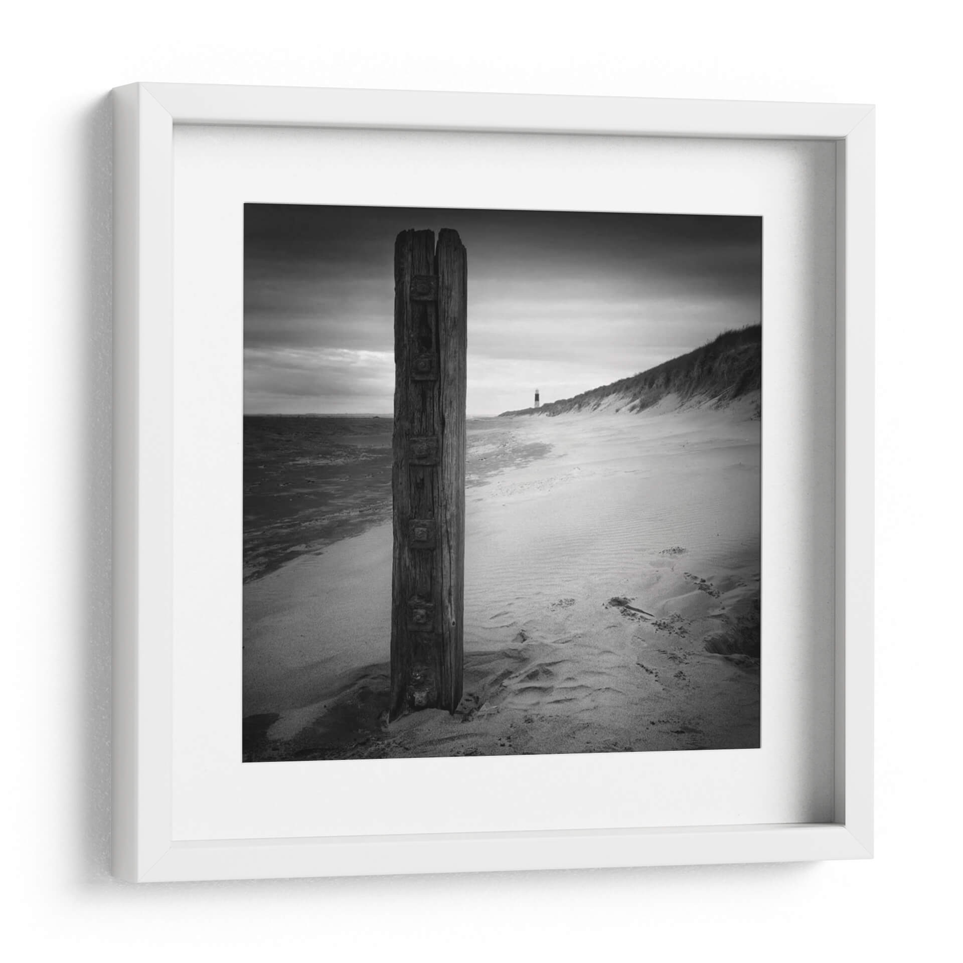 Sumérgete en la atmósfera serena y contemplativa de "Post y Faro", una obra de Martin Henson que captura la esencia de una costa melancólica. Este cuadro decorativo en blanco y negro presenta un poste de madera rústico en primer plano, desgastado por el tiempo y los elementos, que sirve como un punto de anclaje visual. A lo lejos, se vislumbra un faro solitario, un símbolo de guía y esperanza en el horizonte, flanqueado por dunas de arena suavemente onduladas y el mar agitado bajo un cielo nublado. La paleta monocromática intensifica el dramatismo y la profundidad, creando una sensación de introspección y tranquilidad. Ideal para aquellos que buscan infundir un toque de paz y reflexión en su hogar u oficina, esta pieza es perfecta para salones modernos, dormitorios o estudios donde se desee crear un ambiente de calma y sofisticación. Su composición, que equilibra la solidez del poste con la vastedad del paisaje marino, invita a la meditación y a la apreciación de la belleza en la simplicidad. Añade un toque de arte atemporal y evocador a tu decoración.