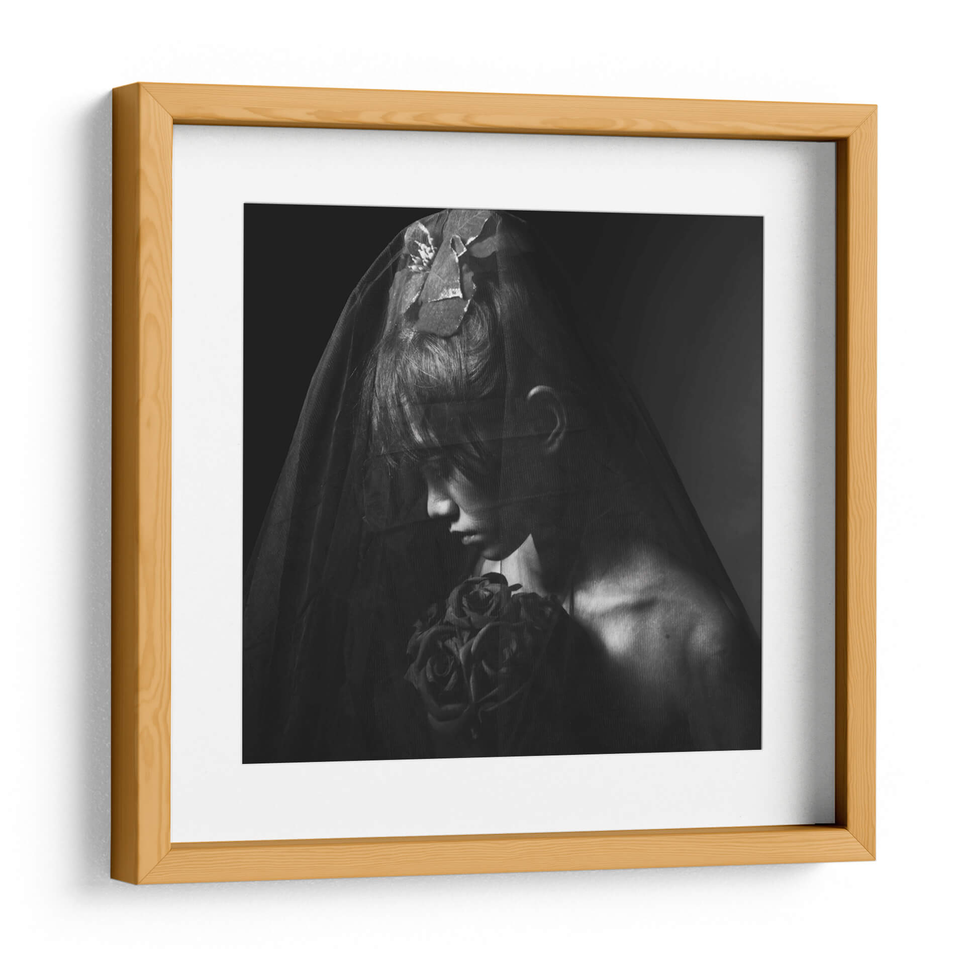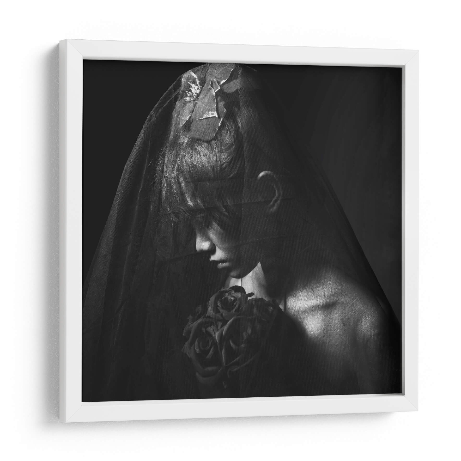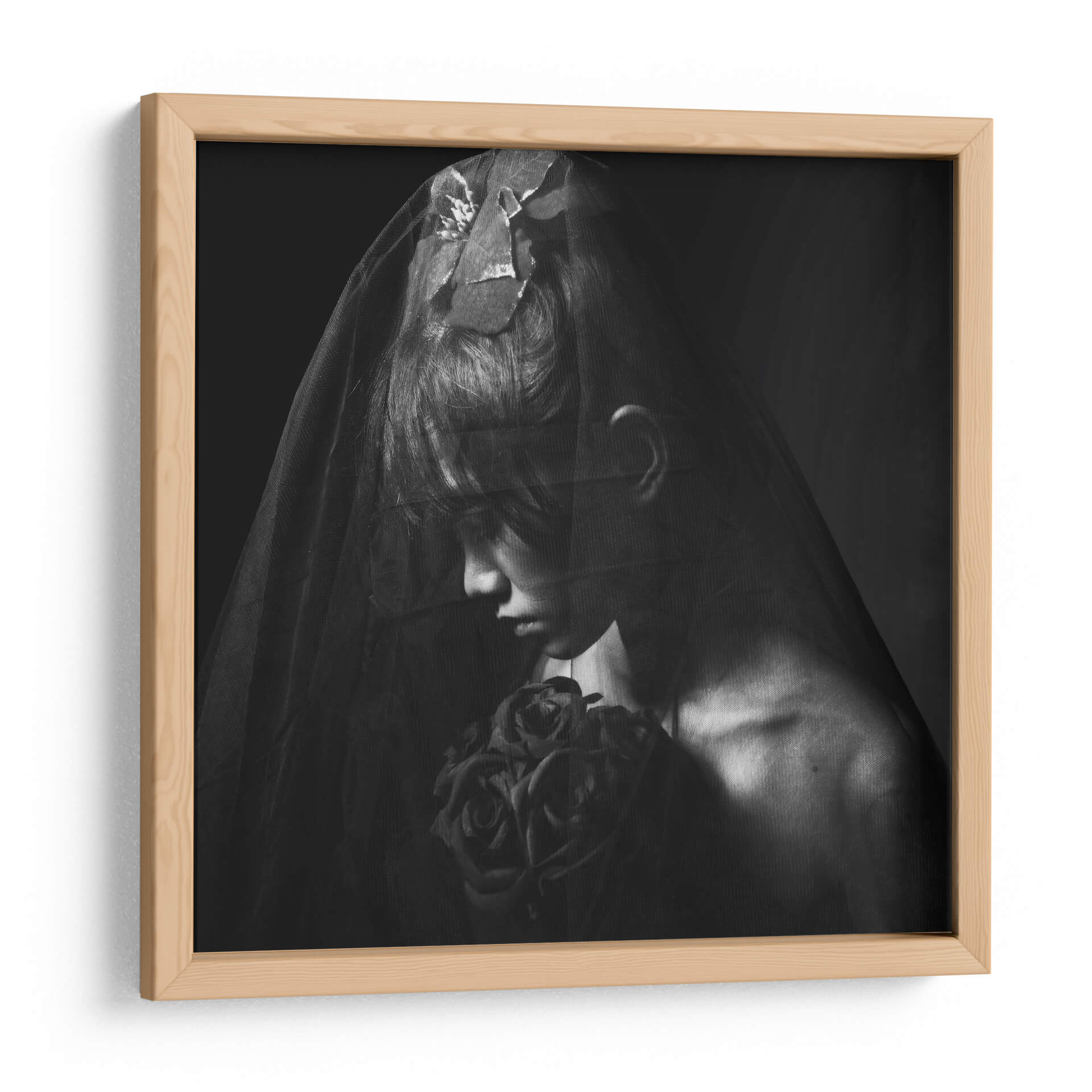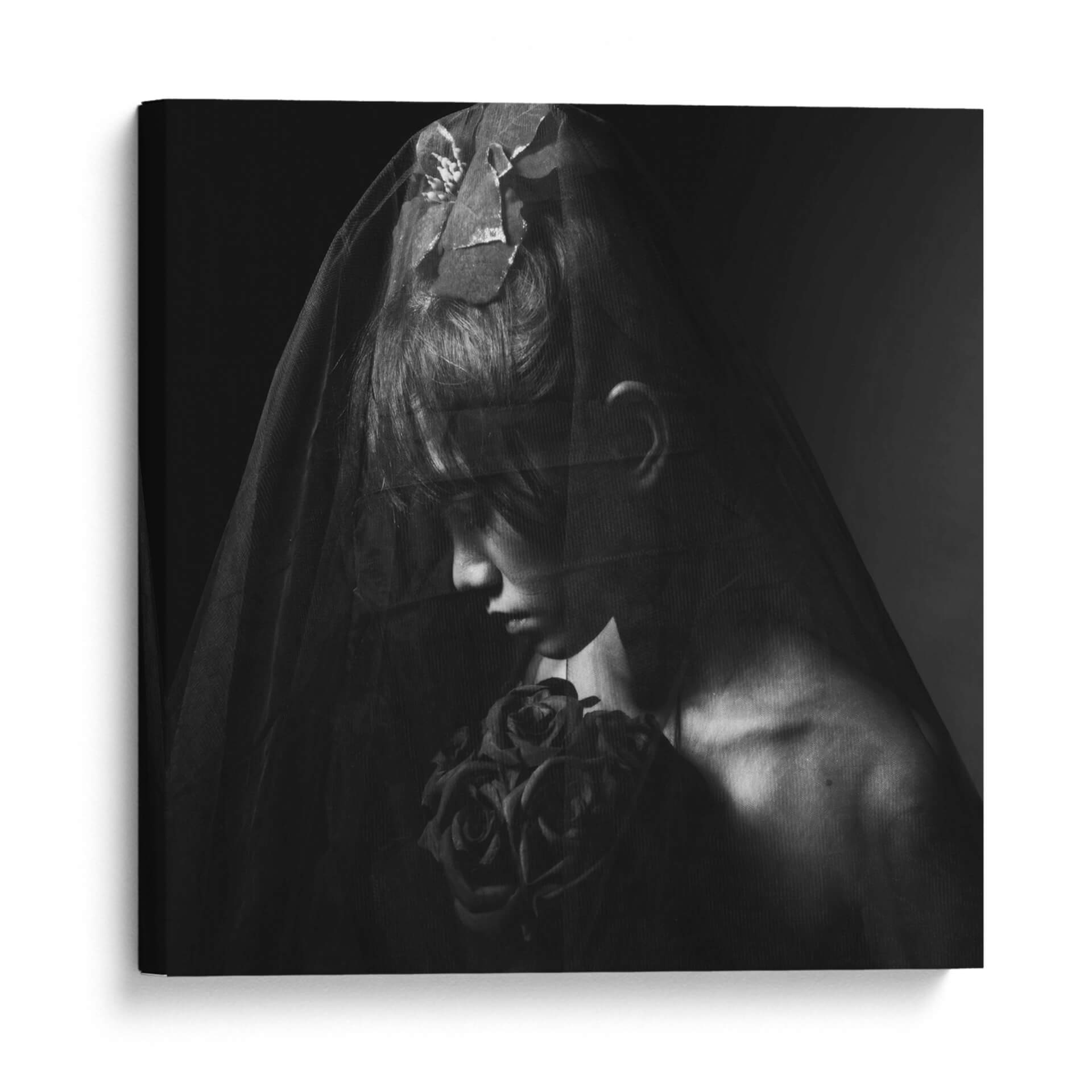 Sumérgete en la melancolía y la belleza enigmática de "Rosa Negra", una obra maestra de Hari Sulistiawan. Este cuadro decorativo en blanco y negro presenta un retrato íntimo de una figura femenina cubierta por un velo translúcido, que añade una capa de misterio y delicadeza. En sus manos sostiene un ramo de rosas oscuras, simbolizando quizás la belleza efímera o la pasión oculta. La composición se centra en el perfil de la mujer, con una iluminación dramática que resalta sutiles contornos y texturas, creando un juego de luces y sombras que evoca una profunda introspección. La paleta monocromática intensifica la atmósfera emotiva, invitando a la reflexión y a la contemplación. Ideal para quienes buscan añadir un toque de sofisticación, drama y profundidad a su hogar u oficina, este arte de pared transformará cualquier espacio en una galería personal llena de carácter y sentimiento. "Rosa Negra" es más que una decoración; es una pieza de conversación que resuena con la complejidad de las emociones humanas.