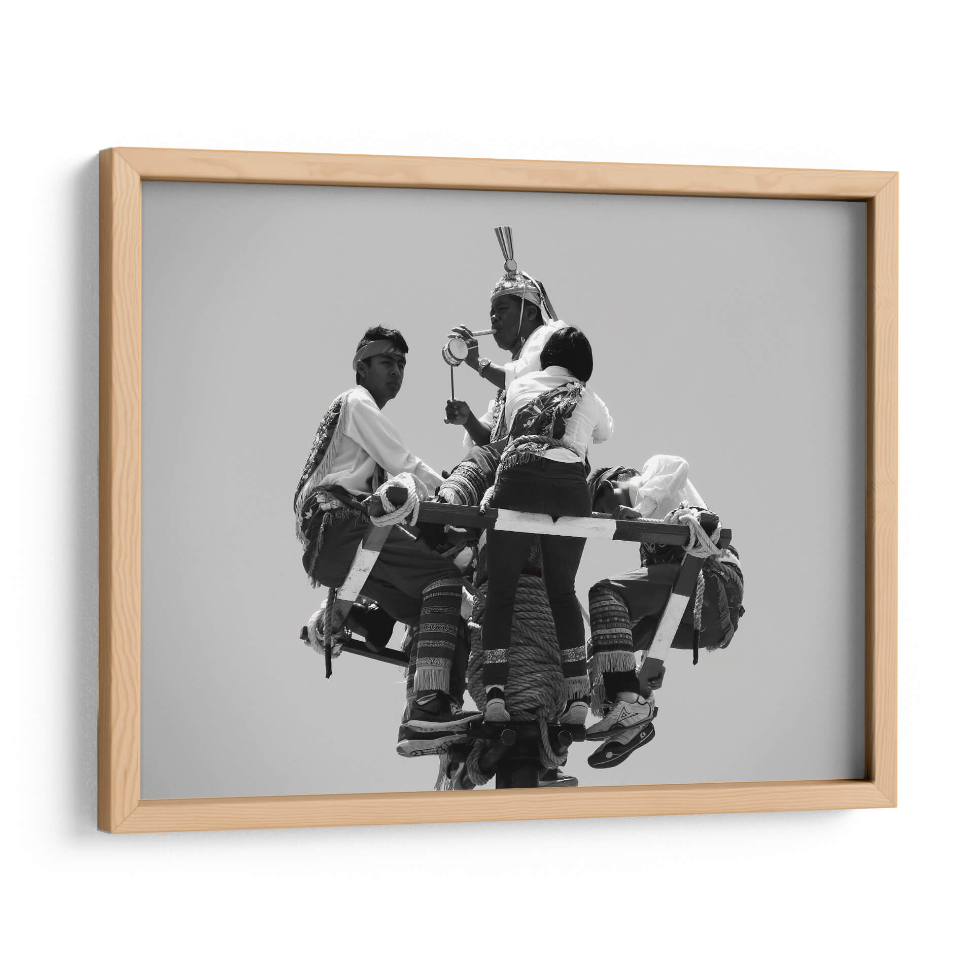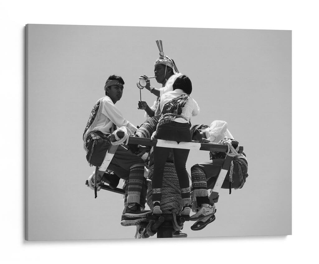 Sumérgete en la riqueza cultural y la tradición ancestral con este impactante cuadro decorativo de Hugo Segura, titulado "Tradición". Esta obra, capturada en un evocador blanco y negro, nos transporta a un momento de profunda conexión humana y ritual. La composición se centra en un grupo de personas inmersas en una actividad que sugiere una ceremonia o danza tradicional, con vestimentas distintivas y tocados elaborados que hablan de un legado histórico. La fotografía, con su nitidez y el uso magistral del claroscuro, resalta la textura de las telas, las expresiones de los rostros y la complejidad de las cuerdas y estructuras que los sostienen en alto. El fondo neutro permite que la acción y la simbología de la escena cobren todo el protagonismo, creando una atmósfera de respeto y admiración por las costumbres que se celebran. "Tradición" es más que una imagen; es una ventana a un mundo de significado, ideal para inspirar y añadir profundidad a cualquier espacio, ya sea una sala de estar, un estudio o un comedor. Este cuadro decorativo es perfecto para quienes buscan piezas de arte con historia, que inviten a la reflexión y aporten un toque de autenticidad y carácter a su decoración.