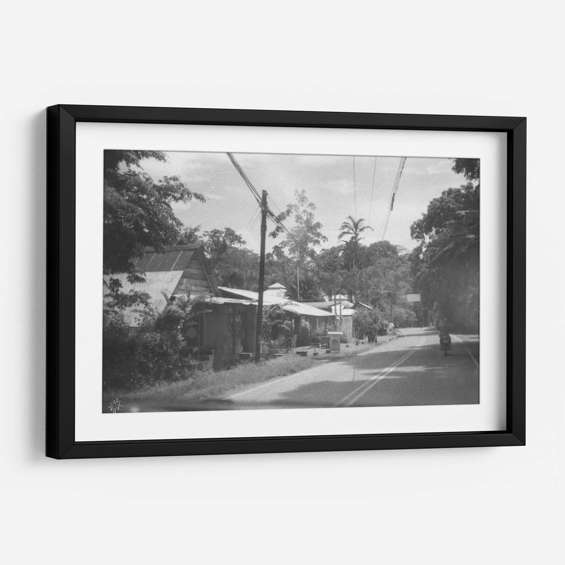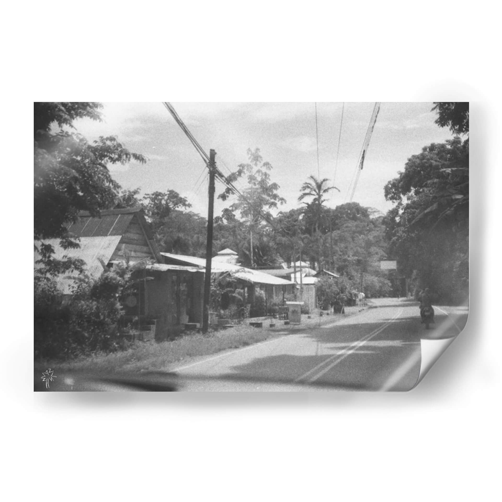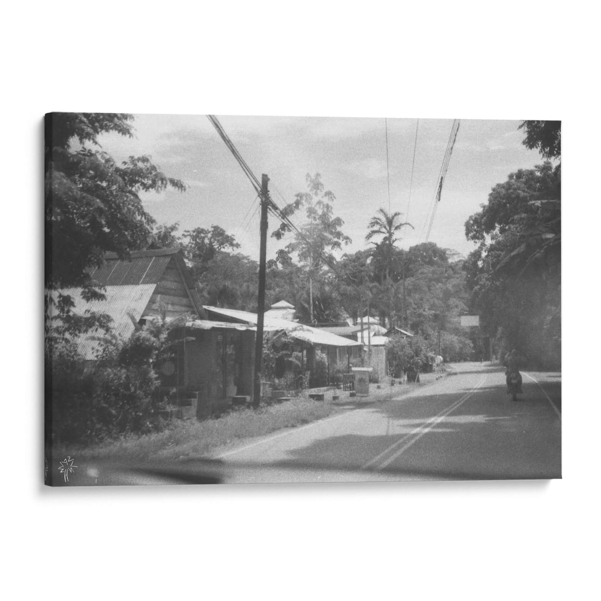 Embárquese en un viaje visual con "Un Buen y Antiguo Camino", una obra de arte evocadora que captura la esencia de un momento atemporal. Esta fotografía en blanco y negro transporta al espectador a un paisaje sereno pero vibrante, donde la arquitectura vernácula se fusiona armoniosamente con la exuberante vegetación tropical. La composición, marcada por la presencia de postes de luz y cables que atraviesan el cielo, añade un toque de modernidad rústica a la escena. La paleta de grises y blancos, acentuada por las sombras profundas y la luz tenue, crea una atmósfera nostálgica y contemplativa. Cada detalle, desde los tejados de zinc hasta las palmeras que se alzan majestuosas, cuenta una historia de vida cotidiana y conexión con la naturaleza. Este cuadro decorativo es perfecto para añadir carácter y profundidad a cualquier espacio, ya sea una sala de estar, un estudio o un pasillo. Su estilo realista con un toque documental invita a la reflexión y a la apreciación de la belleza en lo ordinario. "Un Buen y Antiguo Camino" no es solo una imagen, es una invitación a revivir recuerdos o a imaginar nuevas aventuras, convirtiéndose en una pieza central que dialoga con el alma de su hogar.