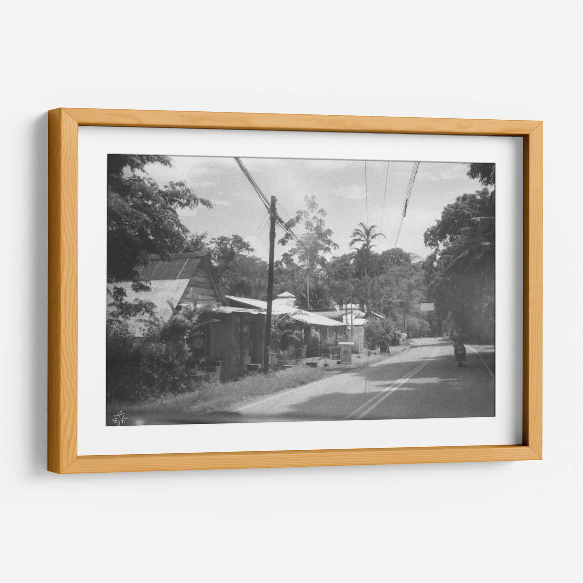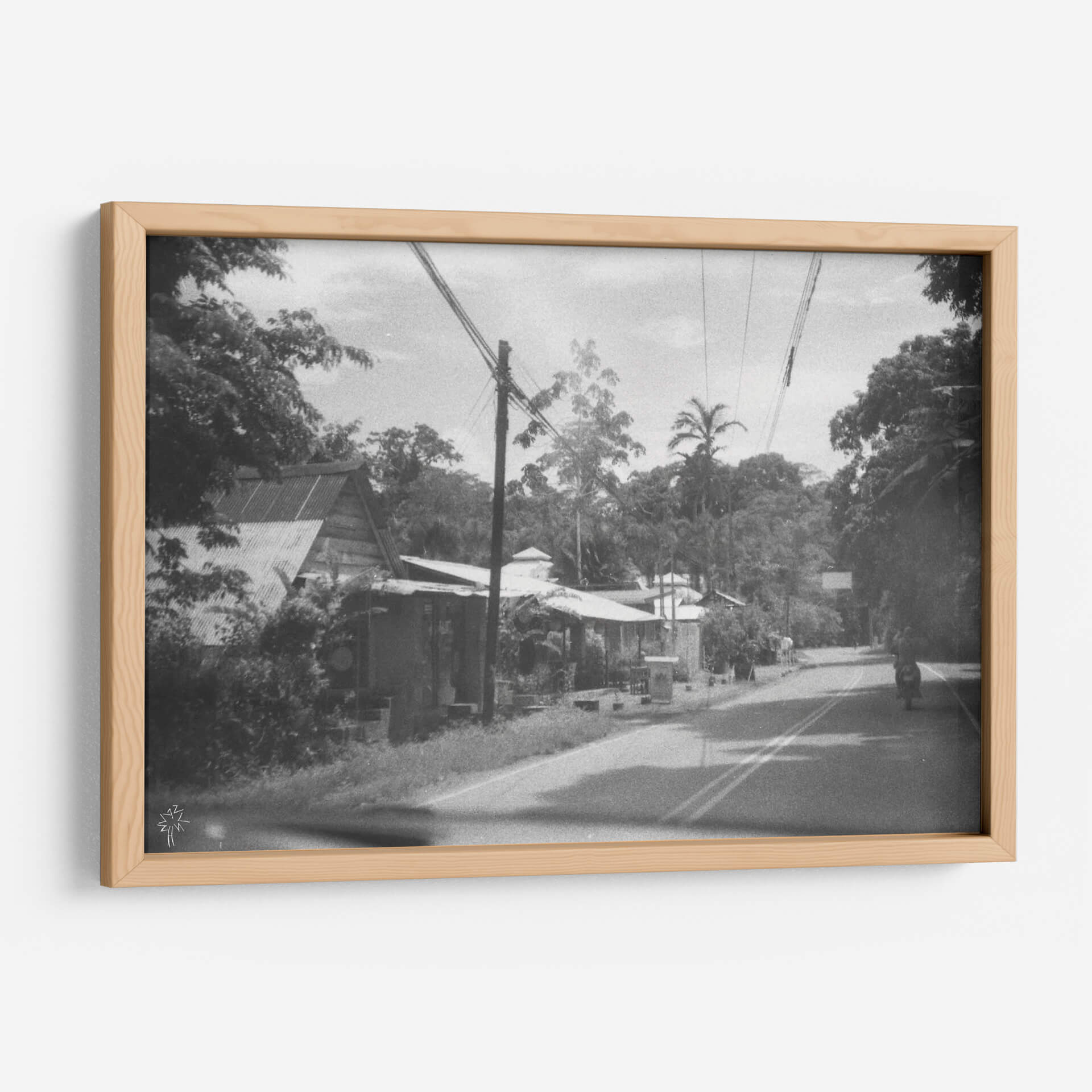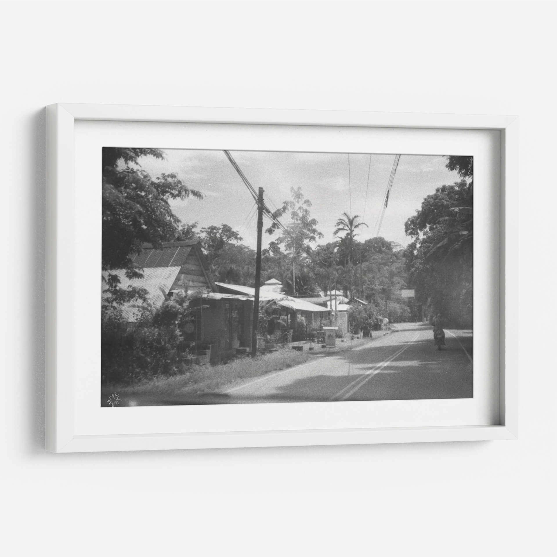 Embárquese en un viaje visual con "Un Buen y Antiguo Camino", una obra de arte evocadora que captura la esencia de un momento atemporal. Esta fotografía en blanco y negro transporta al espectador a un paisaje sereno pero vibrante, donde la arquitectura vernácula se fusiona armoniosamente con la exuberante vegetación tropical. La composición, marcada por la presencia de postes de luz y cables que atraviesan el cielo, añade un toque de modernidad rústica a la escena. La paleta de grises y blancos, acentuada por las sombras profundas y la luz tenue, crea una atmósfera nostálgica y contemplativa. Cada detalle, desde los tejados de zinc hasta las palmeras que se alzan majestuosas, cuenta una historia de vida cotidiana y conexión con la naturaleza. Este cuadro decorativo es perfecto para añadir carácter y profundidad a cualquier espacio, ya sea una sala de estar, un estudio o un pasillo. Su estilo realista con un toque documental invita a la reflexión y a la apreciación de la belleza en lo ordinario. "Un Buen y Antiguo Camino" no es solo una imagen, es una invitación a revivir recuerdos o a imaginar nuevas aventuras, convirtiéndose en una pieza central que dialoga con el alma de su hogar.