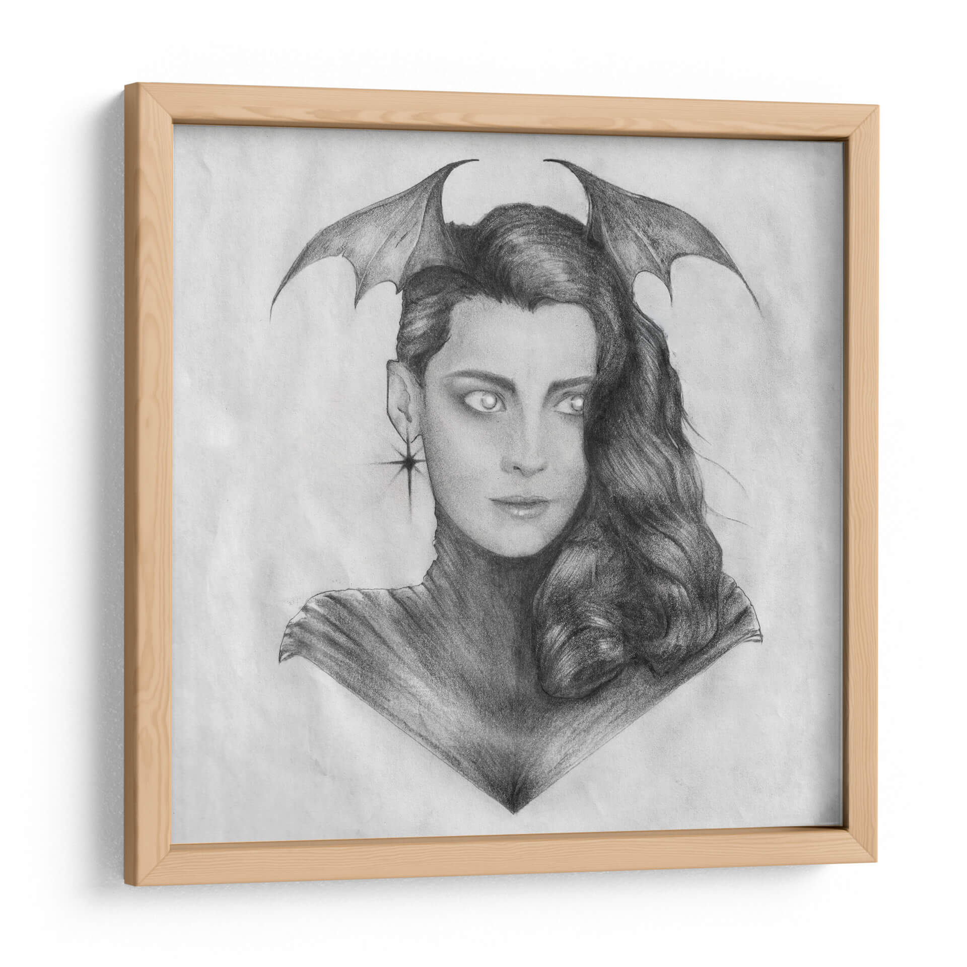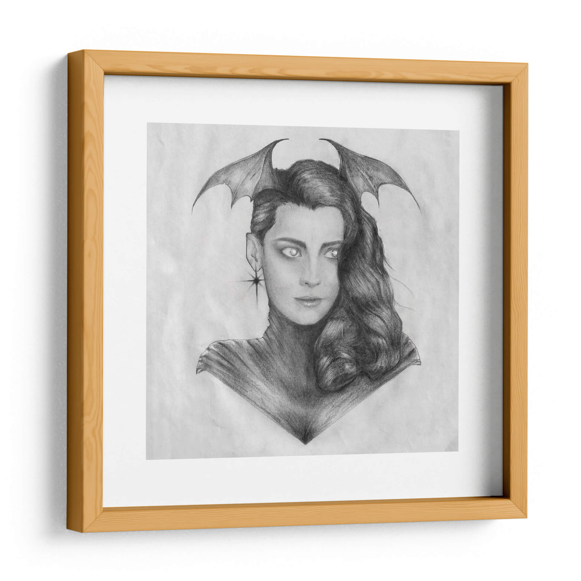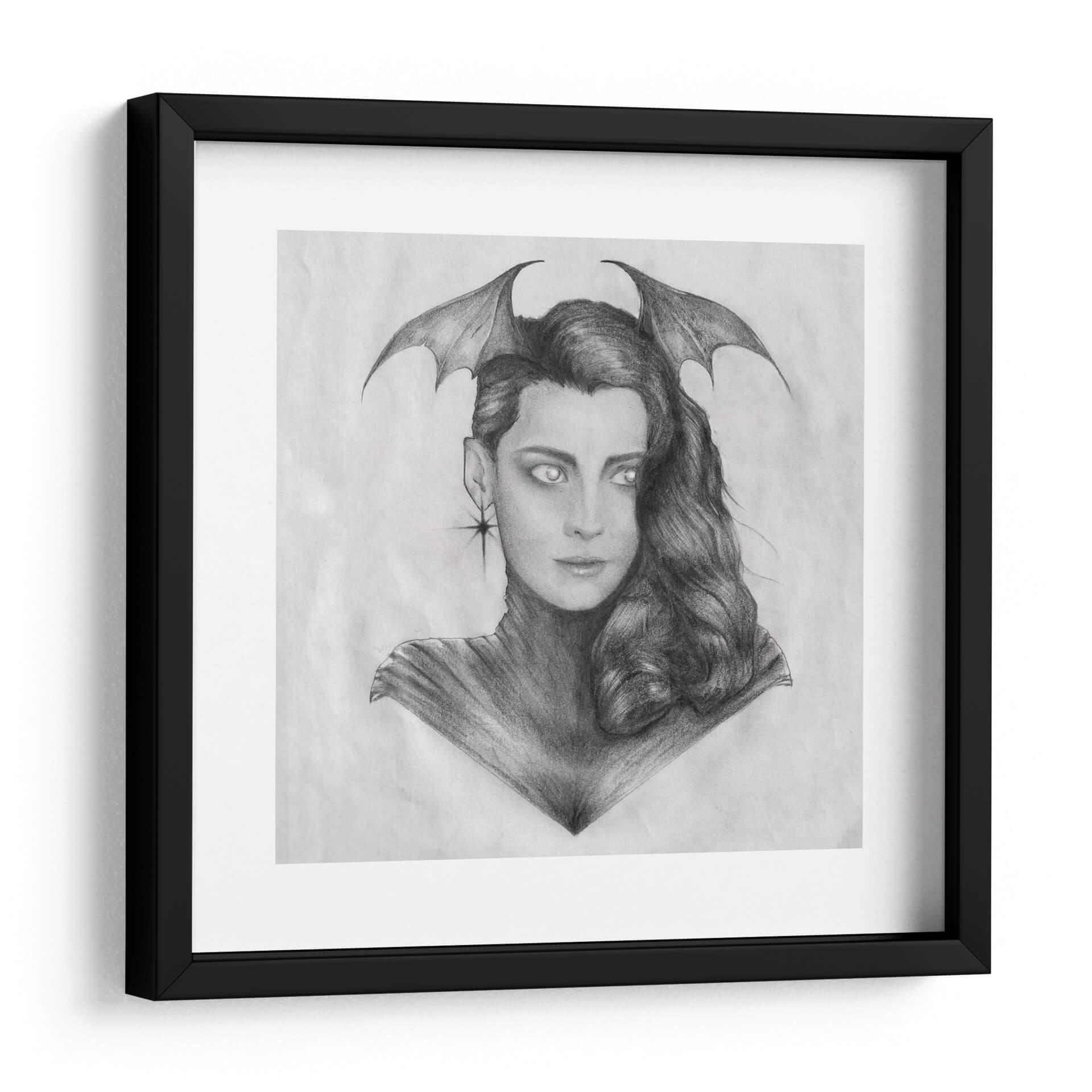 Sumérgete en el enigmático mundo de "Vampire", una obra de arte cautivadora creada por el artista Iván Terrible. Este detallado retrato a lápiz presenta a una figura femenina etérea con alas de murciélago sutiles, evocando un aura de misterio y belleza gótica. La paleta de colores monocromática, lograda con maestría a través de sombreados y texturas de grafito, resalta la delicadeza de los rasgos faciales y la profundidad de la mirada, que parece fijarse en un punto distante o en el espectador con una intensidad hipnótica. La suave ondulación del cabello y la elegancia del cuello alto contrastan con la forma angulosa de las alas, creando una composición visualmente atractiva y llena de matices. "Vampire" es más que un simple cuadro decorativo; es una invitación a explorar los límites entre la fantasía y la realidad, perfecta para añadir un toque de intriga y sofisticación a cualquier espacio. Ideal para quienes aprecian el arte oscuro y la estética alternativa, este cuadro es un punto focal que genera conversación y admiración. Añade un toque de misticismo y arte contemporáneo a tu hogar u oficina.