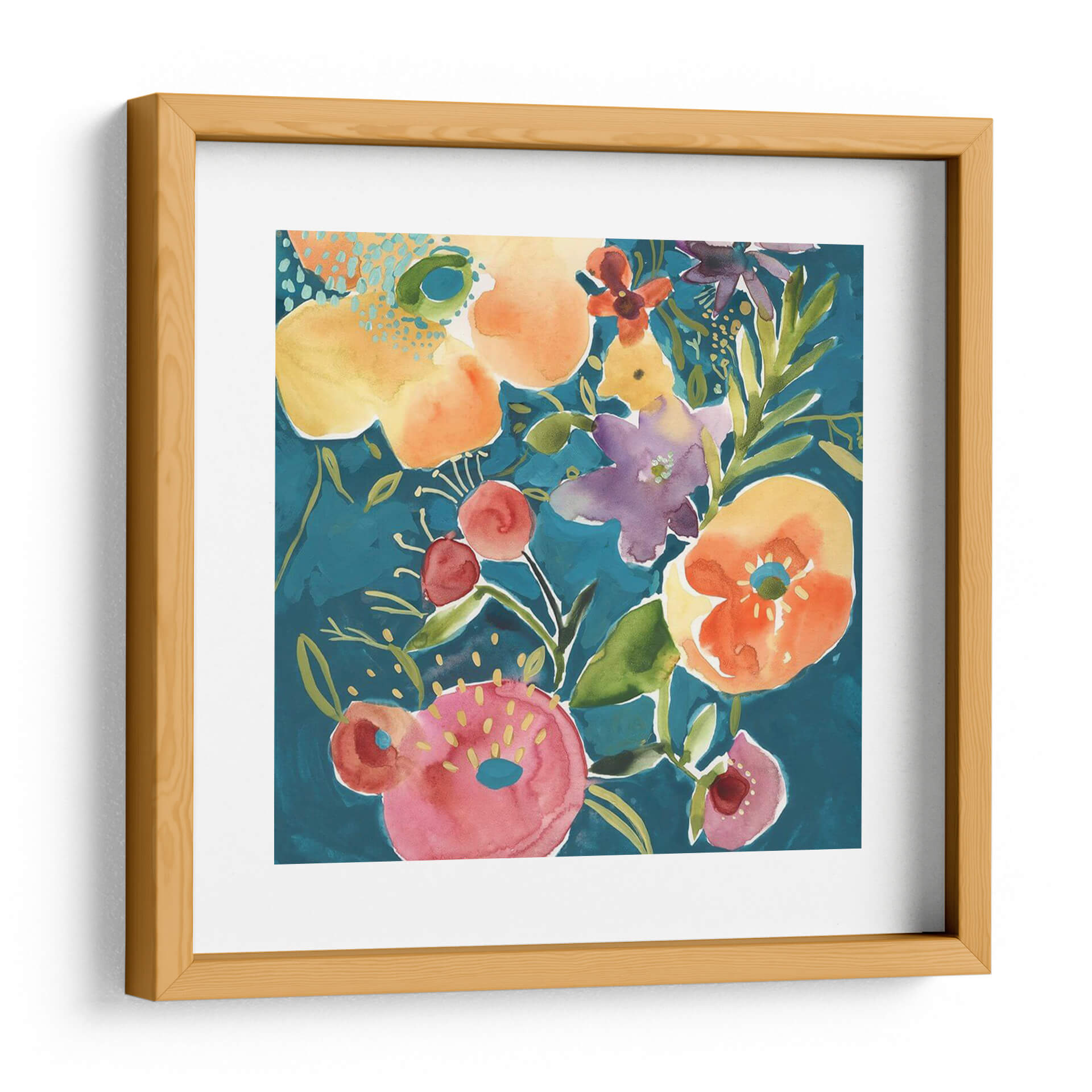 Sumérgete en la vitalidad y el color con "Abundantes Florales I", una obra de arte que celebra la belleza de la naturaleza a través de pinceladas audaces y una paleta vibrante. Este cuadro decorativo captura la esencia de un jardín exuberante, donde las flores estallan en tonos de naranja, rosa, púrpura y amarillo, contrastando maravillosamente con un fondo profundo de color azul verdoso. La técnica inspirada en la acuarela aporta una cualidad etérea y fluida, con texturas que invitan a la contemplación. Cada flor parece danzar sobre el lienzo, creando una composición dinámica y alegre que infunde energía positiva en cualquier espacio. "Abundantes Florales I" es perfecto para añadir un toque de color y vida a tu sala de estar, comedor o incluso a un espacio de oficina que necesite un acento inspirador. Esta pieza contemporánea es ideal para quienes buscan una decoración de pared que sea a la vez sofisticada y llena de carácter, evocando sentimientos de alegría y renovación. Deja que esta explosión floral transforme tu hogar en un oasis de creatividad y estilo.