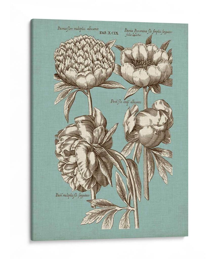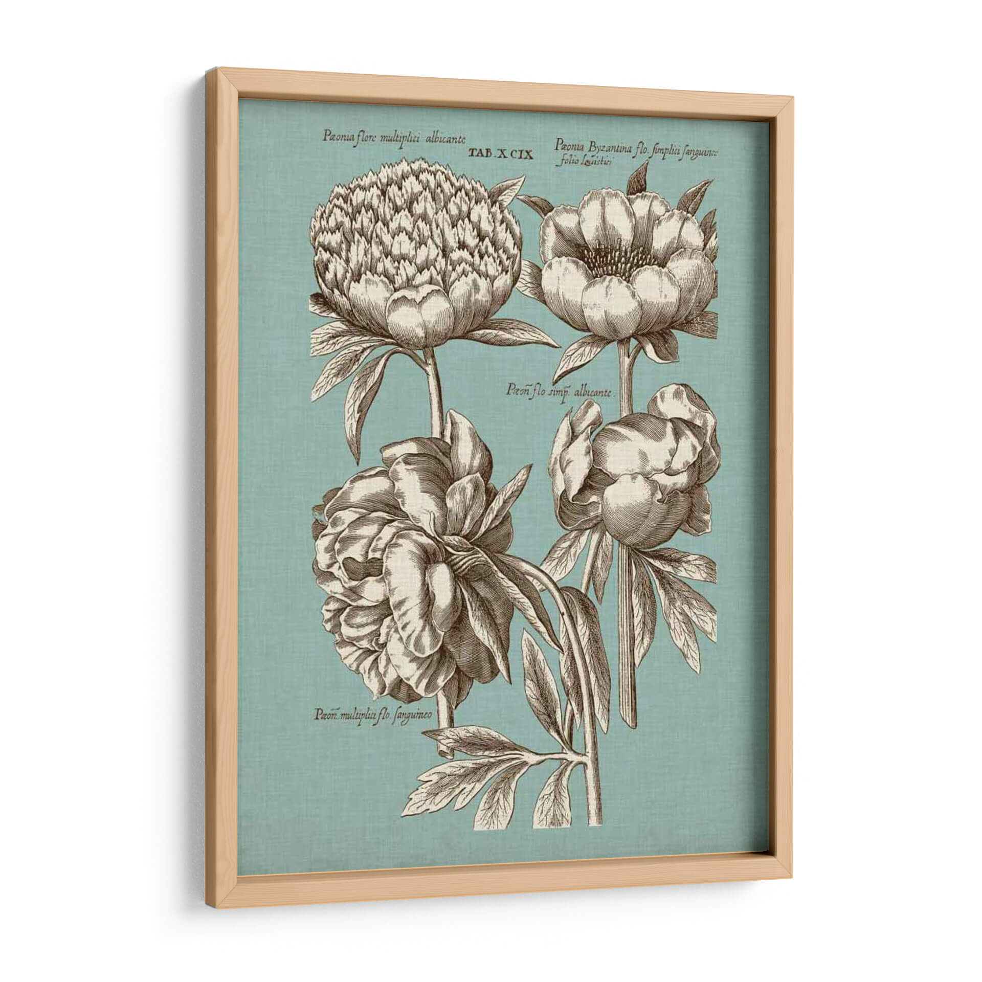 Transforma tu espacio con la delicadeza botánica del cuadro decorativo "Chambray Chintz II". Esta exquisita obra, creada por Vision Studio, presenta una detallada ilustración de peonías en tonos sepia sobre un fondo azul sereno. Cada pétalo y hoja está representado con una precisión que evoca las ilustraciones científicas clásicas, aportando un toque de elegancia atemporal y sofisticación natural a tu hogar u oficina. La composición se centra en cuatro majestuosas peonías, capturando la belleza intrínseca de estas flores en diferentes etapas de floración. Los sutiles matices sepia contrastan armoniosamente con el suave tono azul de fondo, creando una atmósfera de calma y contemplación. Este cuadro decorativo es ideal para aquellos que aprecian la belleza de la naturaleza y buscan una pieza de arte que inspire tranquilidad y refine la estética de cualquier habitación. Ya sea en una sala de estar, un dormitorio o un estudio, "Chambray Chintz II" se convierte en un punto focal que irradia serenidad y un gusto refinado, invitando a la admiración y la conexión con el mundo botánico.
