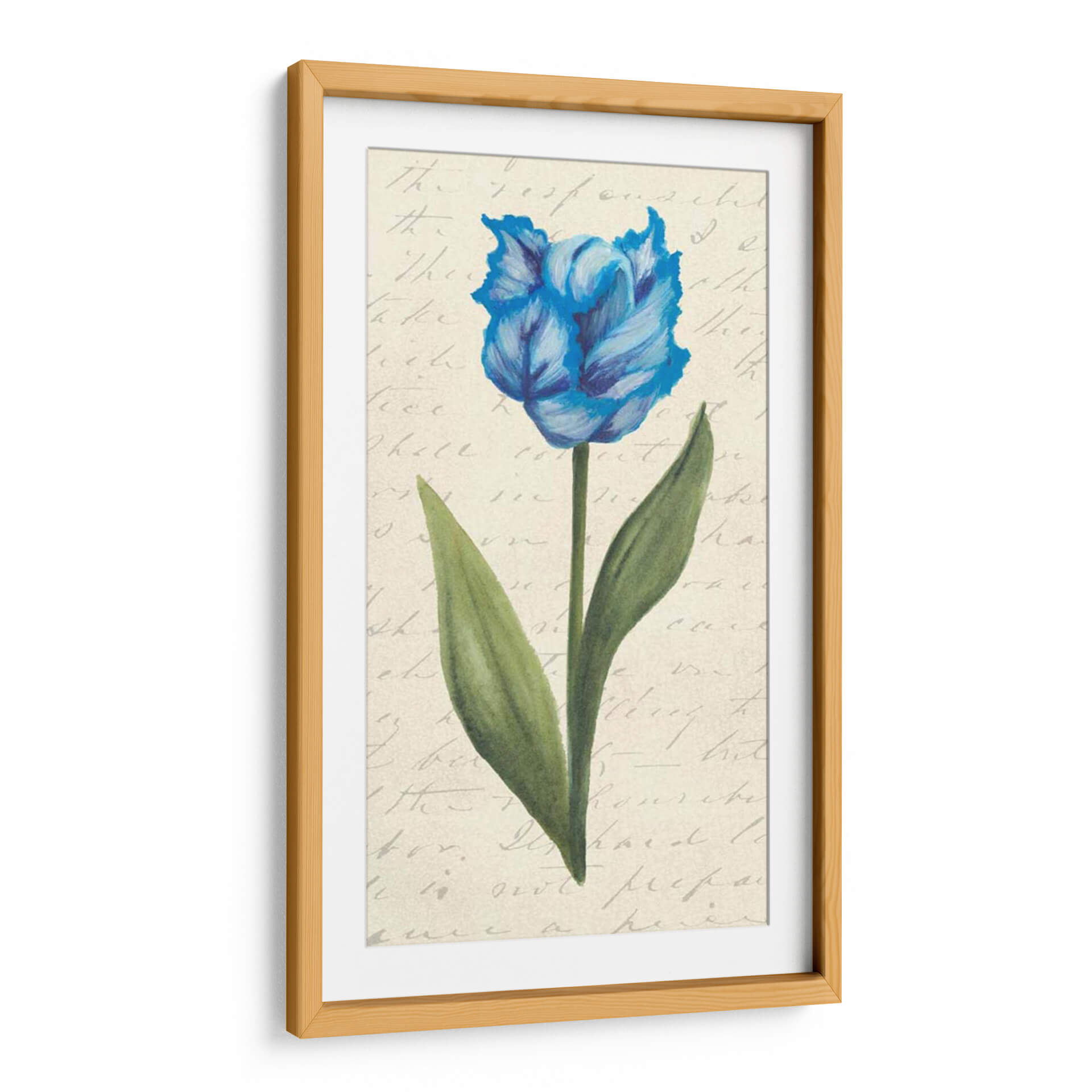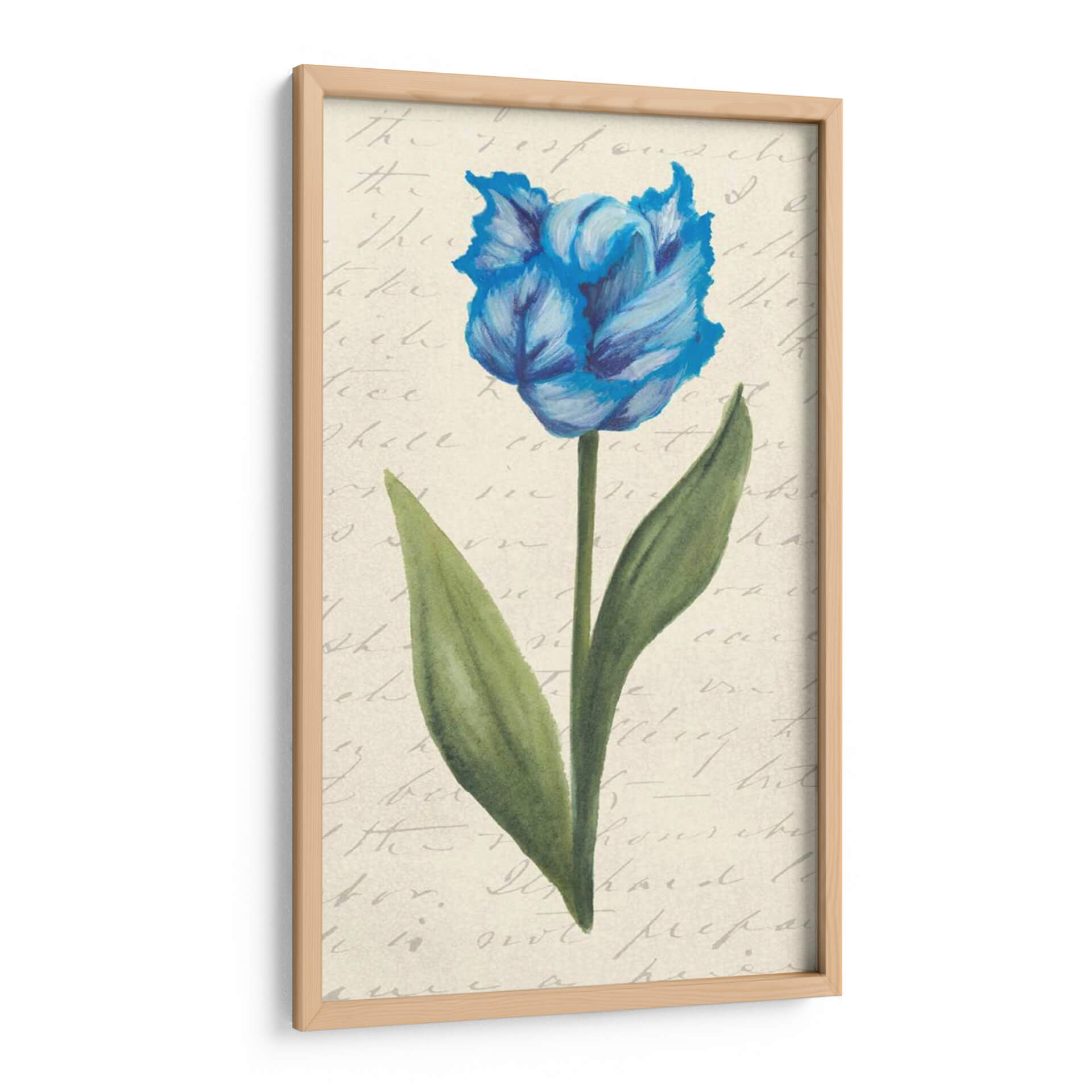 Embellece tu espacio con el encanto atemporal de "Doble Tulipanes IV", una cautivadora obra de arte de Grace Popp. Esta pieza presenta un vibrante tulipán azul con pétalos texturizados y ondulados, representado con una delicada acuarela que evoca una sensación de elegancia clásica. El fondo, inspirado en manuscritos antiguos con escritura cursiva desvanecida, añade un toque de nostalgia y sofisticación, creando una atmósfera serena y refinada. El contraste entre el azul profundo de la flor y los tonos neutros del fondo hace que esta obra sea un punto focal ideal para cualquier habitación. Perfecta para salones, dormitorios o estudios, este cuadro decorativo floral aporta un toque de color sutil pero impactante y una sensación de calma y belleza natural. La composición vertical y el estilo delicado se adaptan a una variedad de decoraciones, desde la clásica hasta la contemporánea, invitando a la contemplación y añadiendo un aire de tranquilidad a tu hogar u oficina. Añade esta pieza de arte botánico para crear un ambiente acogedor y lleno de estilo.