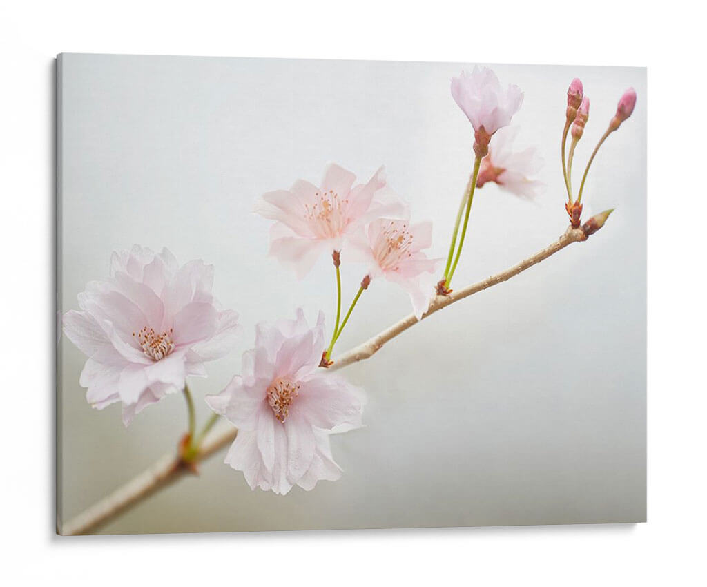 Captura la esencia efímera de la primavera con este delicado cuadro decorativo de flores de cerezo, titulado 'Estudio De Flor De Cerezo II' por James McLoughlin. La obra presenta una rama delgada adornada con pétalos de cerezo en tonos rosados pálidos, capturando la delicadeza y la belleza transitoria de la floración. La composición minimalista, con un fondo suave y difuminado en tonos neutros, permite que las flores y los capullos en ciernes sean los protagonistas absolutos, evocando una sensación de paz, serenidad y renovación. Los sutiles tonos pastel y la luz suave crean una atmósfera etérea y soñadora, perfecta para añadir un toque de calma y elegancia a cualquier espacio. Ideal para dormitorios, salas de estar o cualquier rincón que busque un respiro de serenidad, este cuadro decorativo es una oda a la belleza natural y al ciclo de la vida, invitando a la contemplación y al aprecio por los pequeños detalles. Su estilo contemporáneo se integra armoniosamente en diversas decoraciones, desde las más modernas hasta las de inspiración asiática, aportando un aire de sofisticación y tranquilidad.