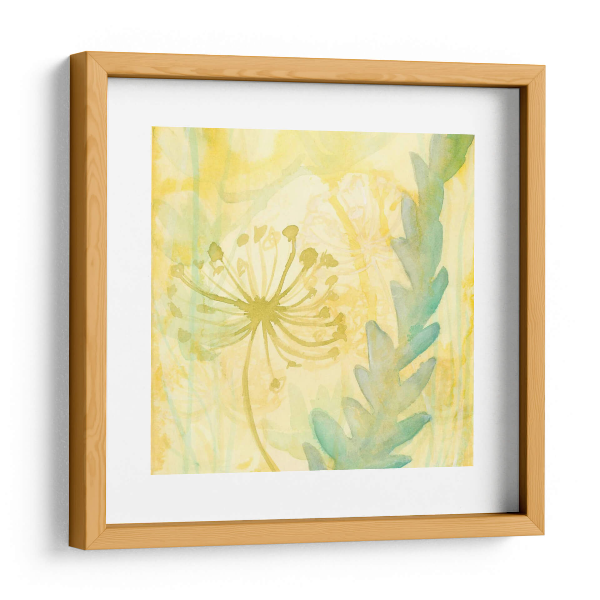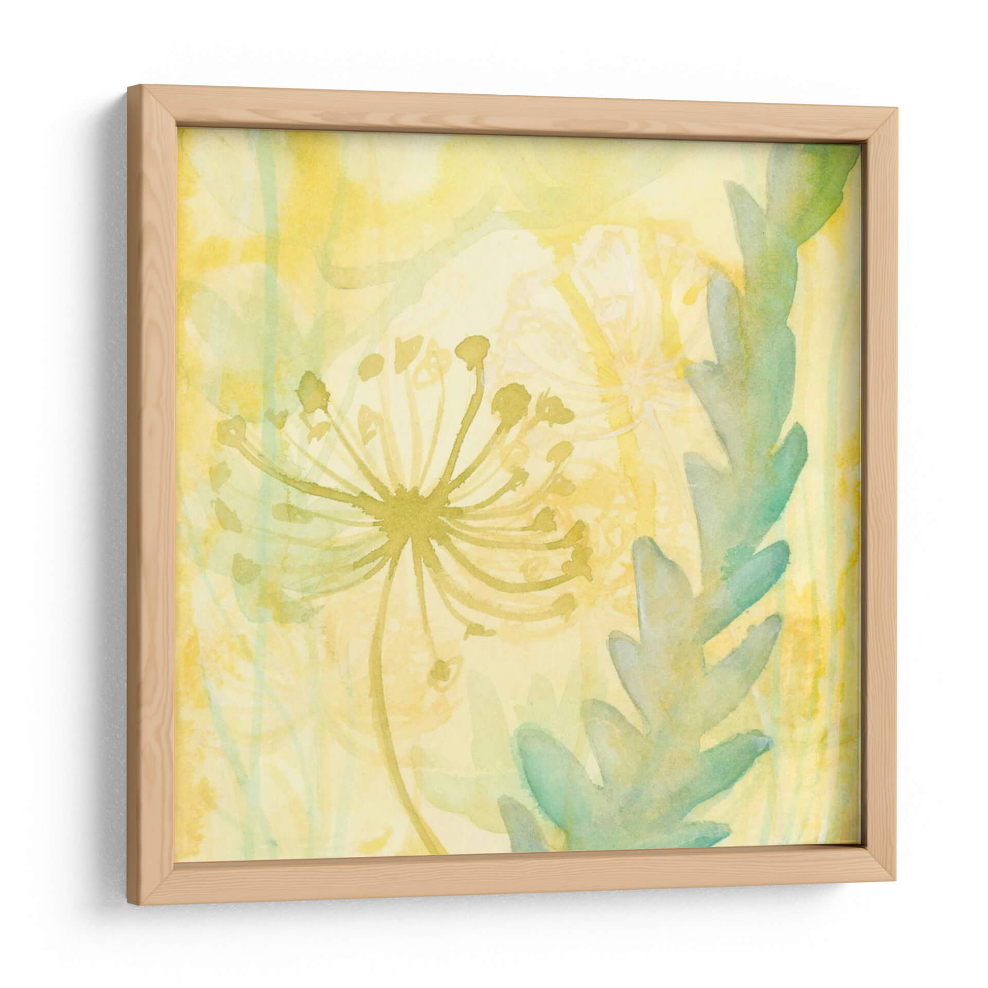 Sumérgete en la delicadeza y el vibrante encanto de "Florid Garden II", una obra de arte que captura la esencia etérea de la naturaleza con un toque contemporáneo. La artista Renee W. Stramel nos presenta una composición etérea donde formas florales y botánicas se entrelazan en una explosión de colores suaves. Predominan los tonos amarillos y dorados, evocando la calidez del sol de verano y la luz que se filtra a través de las hojas, mientras que los toques de verde menta y verde azulado aportan frescura y serenidad. La técnica utilizada, que recuerda a las acuarelas, crea una atmósfera soñadora y ligera, con capas translúcidas que dan profundidad y movimiento a la pieza. Ideal para quienes buscan añadir un toque de optimismo y vitalidad a su hogar u oficina, este cuadro decorativo es una invitación a la contemplación. Su estilo abstracto pero reconociblemente inspirado en la flora lo convierte en una pieza versátil, perfecta para salones modernos, dormitorios tranquilos o incluso espacios de trabajo que necesiten un respiro visual. Deja que "Florid Garden II" transforme tu ambiente, aportando una sensación de calma y alegría natural a tu día a día, un verdadero jardín de sensaciones para colgar en tu pared.