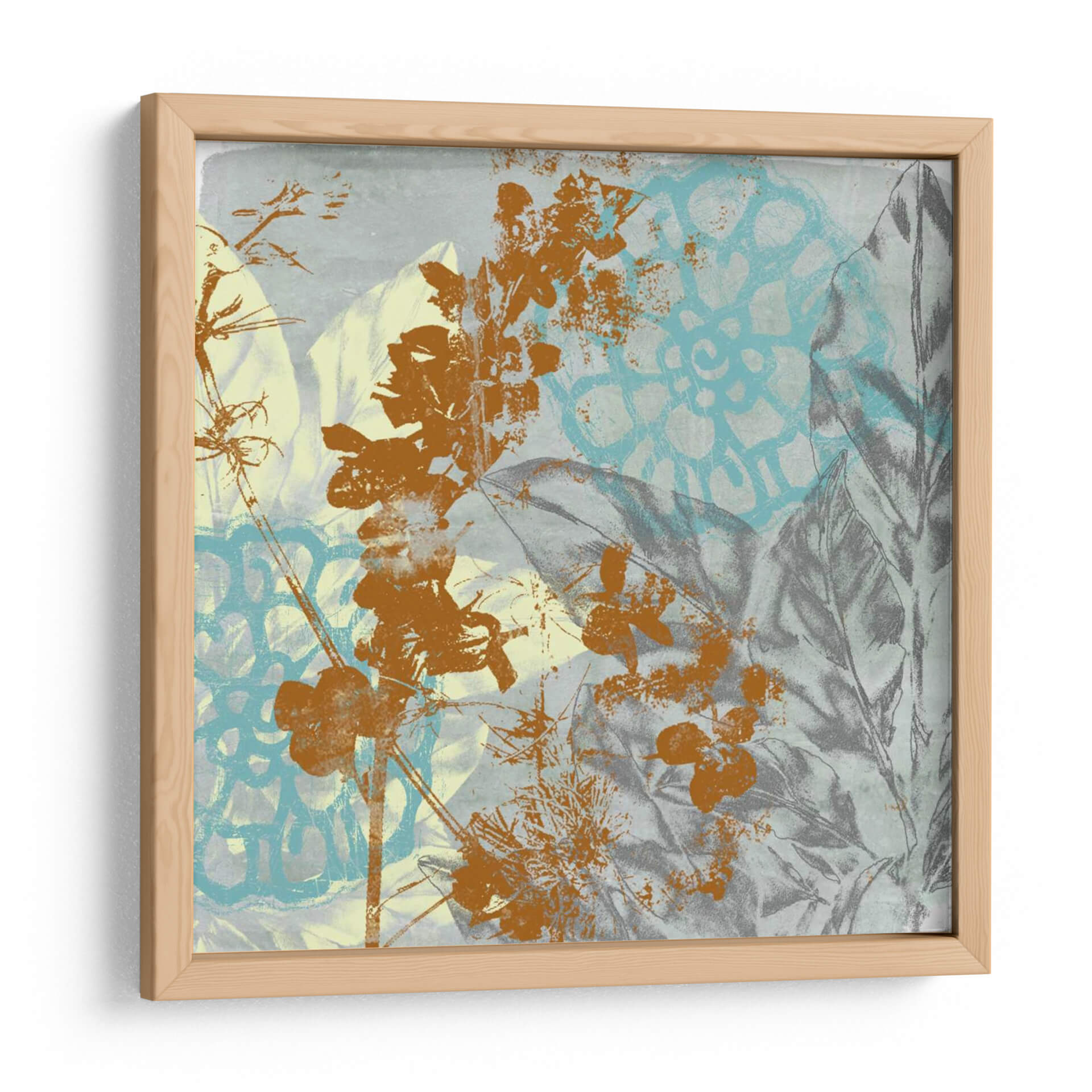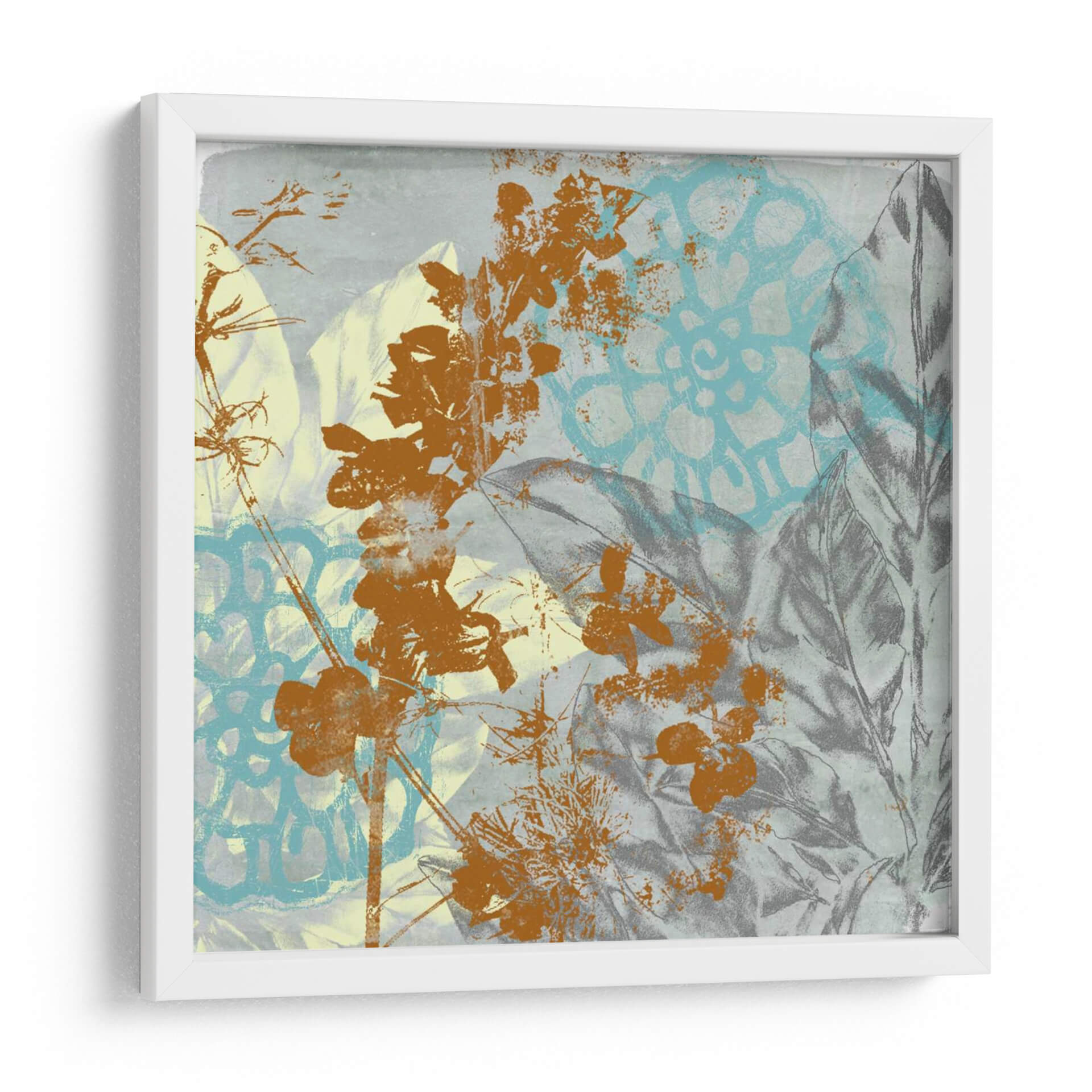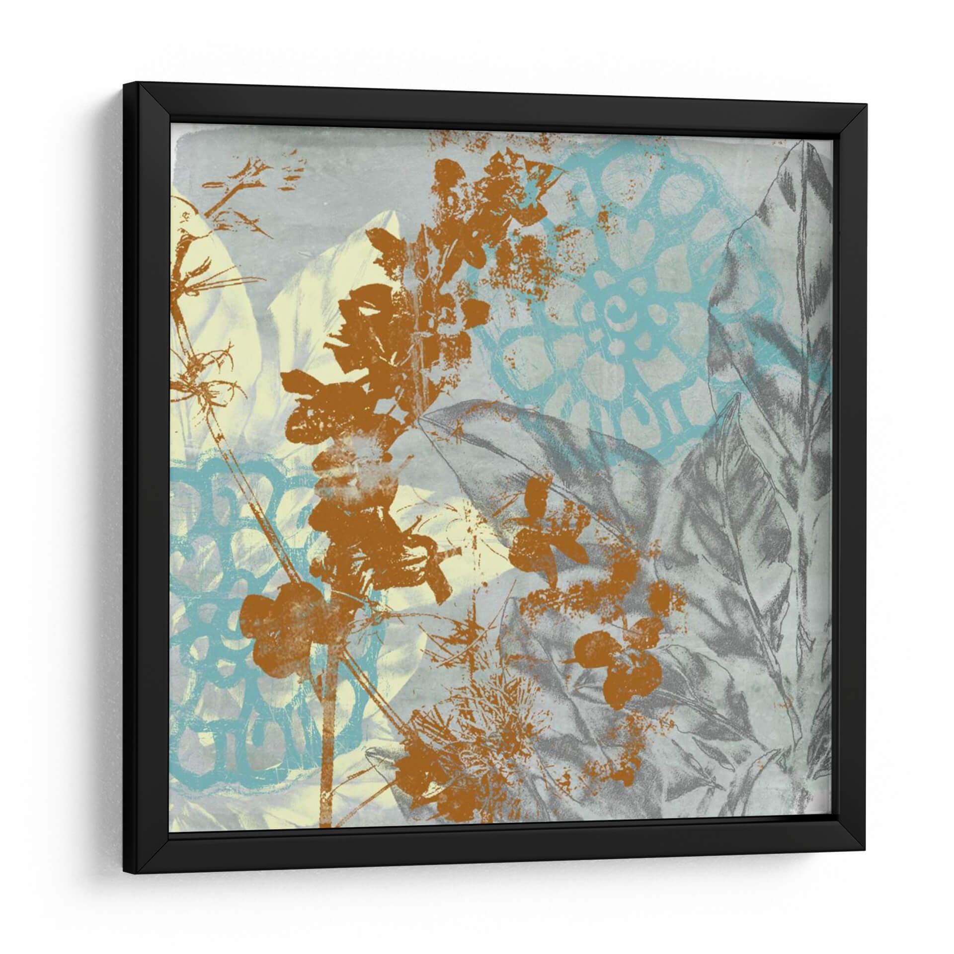 Sumérgete en la exuberante y vibrante 'Interacción Tropical I', una obra de arte contemporáneo del artista Jennifer Goldberger. Esta pieza cautiva con su intrincada superposición de elementos botánicos y patrones texturizados. Las delicadas ramas y flores en tonos terracota contrastan de manera fascinante con los fondos en azul pálido y grisáceo, creando una profundidad visual cautivadora. Los motivos florales, representados con un estilo que evoca la naturaleza y la abstracción, se entrelazan con hojas detalladas y un patrón geométrico sutil en turquesa, aportando un aire moderno y orgánico. La atmósfera general es una mezcla de serenidad y energía sutil, ideal para infundir vida y color en cualquier espacio. Este cuadro decorativo es perfecto para añadir un toque de sofisticación tropical a tu sala de estar, un toque de naturaleza al estudio o una dosis de inspiración botánica a tu oficina. Su paleta de colores versátil, que combina tonos terrosos, azules y grises, la convierte en una adición armoniosa a una variedad de estilos de decoración, desde el contemporáneo hasta el bohemio. Deja que 'Interacción Tropical I' transporte tu imaginación a un paraíso botánico.