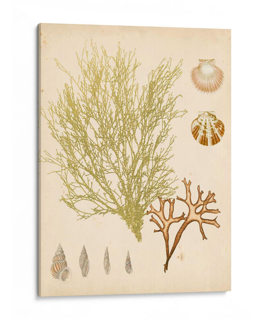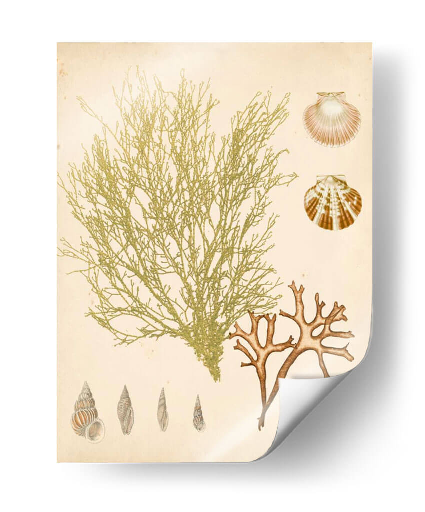 Sumérgete en la serenidad del océano con 'Reliquia Costera II', una obra de arte que captura la delicadeza de la vida marina. Este cuadro decorativo presenta un estudio detallado de algas y conchas marinas sobre un fondo de tono pergamino, evocando la sensación de un descubrimiento botánico o zoológico. La pieza central es un exuberante alga de color verde amarillento, cuyas intrincadas ramificaciones crean un patrón orgánico fascinante. A su lado, se exhiben conchas de vieiras en tonos rosados y naranjas, junto a una variedad de caracolas marinas y corales de un marrón terroso. La paleta de colores es suave y natural, dominada por tonos tierra, ocres y verdes apagados, lo que confiere a la obra una atmósfera de calma y nostalgia. El estilo, que recuerda a las ilustraciones científicas clásicas, aporta un toque de elegancia atemporal y sofisticación. 'Reliquia Costera II' es ideal para espacios que buscan una conexión con la naturaleza, aportando una dosis de tranquilidad y belleza orgánica a salones, dormitorios o estudios. Este cuadro decorativo es perfecto para quienes aprecian la belleza sutil del mundo natural y desean infundir sus hogares con una sensación de paz y refinamiento costero. Añade un toque de elegancia natural a tu decoración.