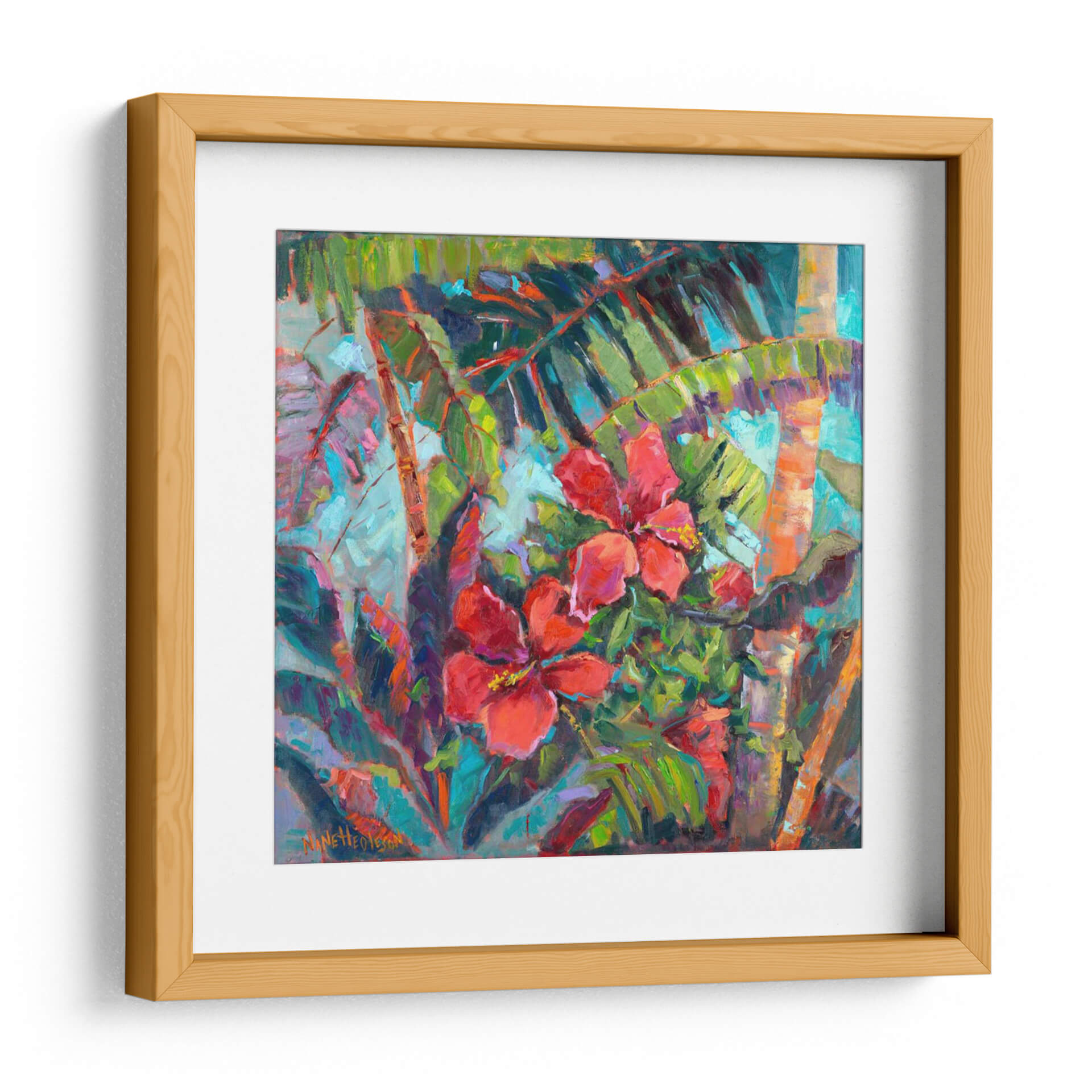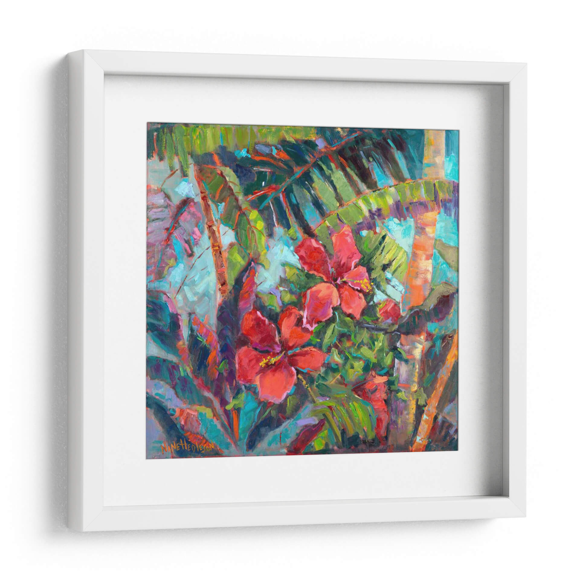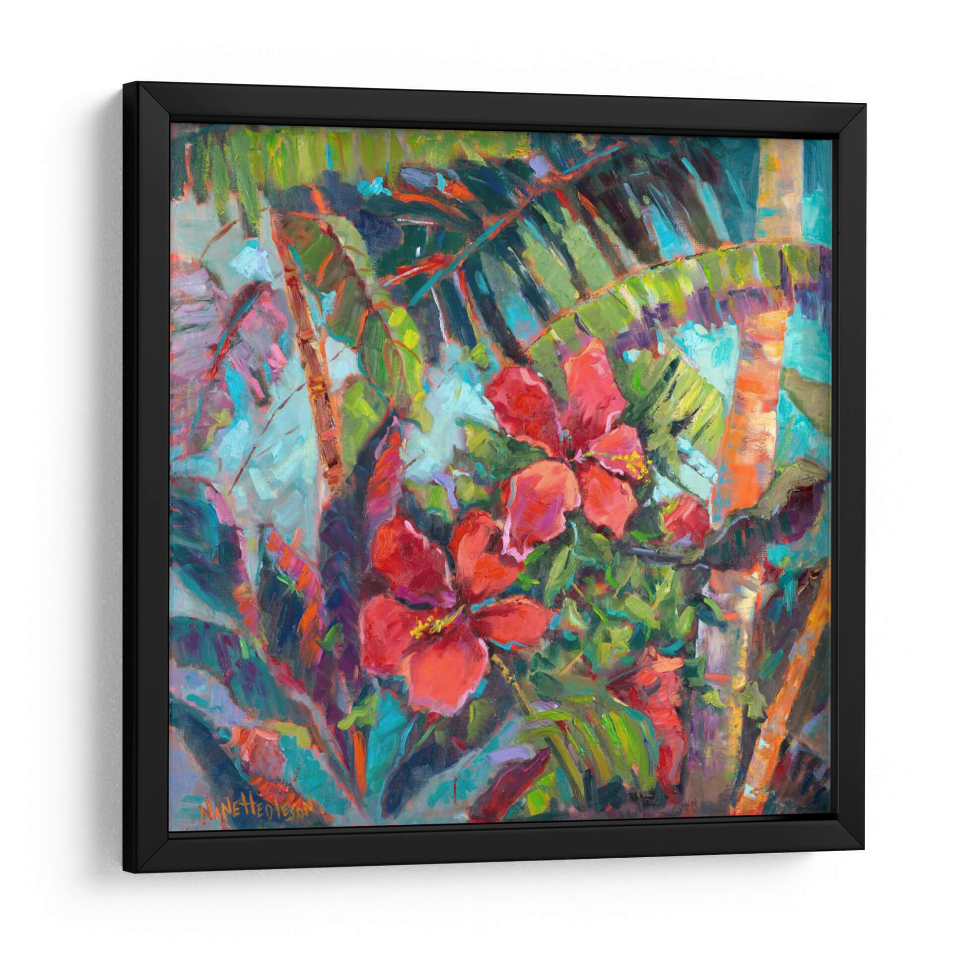 Sumérgete en la vibrante energía tropical con "Salpicaduras Del Trópico II", una obra maestra de Nanette Oleson que captura la esencia exuberante de un paraíso botánico. Este cuadro decorativo es una explosión de color y vida, con vibrantes flores rojas, posiblemente hibiscos, que se abren paso entre un follaje frondoso y palmeras. La técnica impresionista de Oleson da vida a la escena, con pinceladas audaces y una paleta de colores rica y saturada que incluye intensos verdes, azules y toques de naranja y ocre. La luz parece filtrarse a través de las hojas, creando un juego de luces y sombras que añade profundidad y dinamismo a la composición. La atmósfera es de pura vitalidad y calidez, transportando al espectador a un día soleado en un rincón exótico del mundo. Este cuadro es perfecto para añadir un toque de frescura y alegría a cualquier espacio, ya sea una sala de estar moderna, un comedor luminoso o un dormitorio que busque un refugio de serenidad y color. "Salpicaduras Del Trópico II" no es solo una decoración, es una invitación a soñar y a sentir la naturaleza en su máxima expresión, convirtiendo tu hogar en un oasis personal de arte y color.